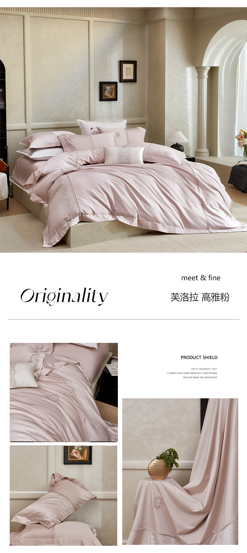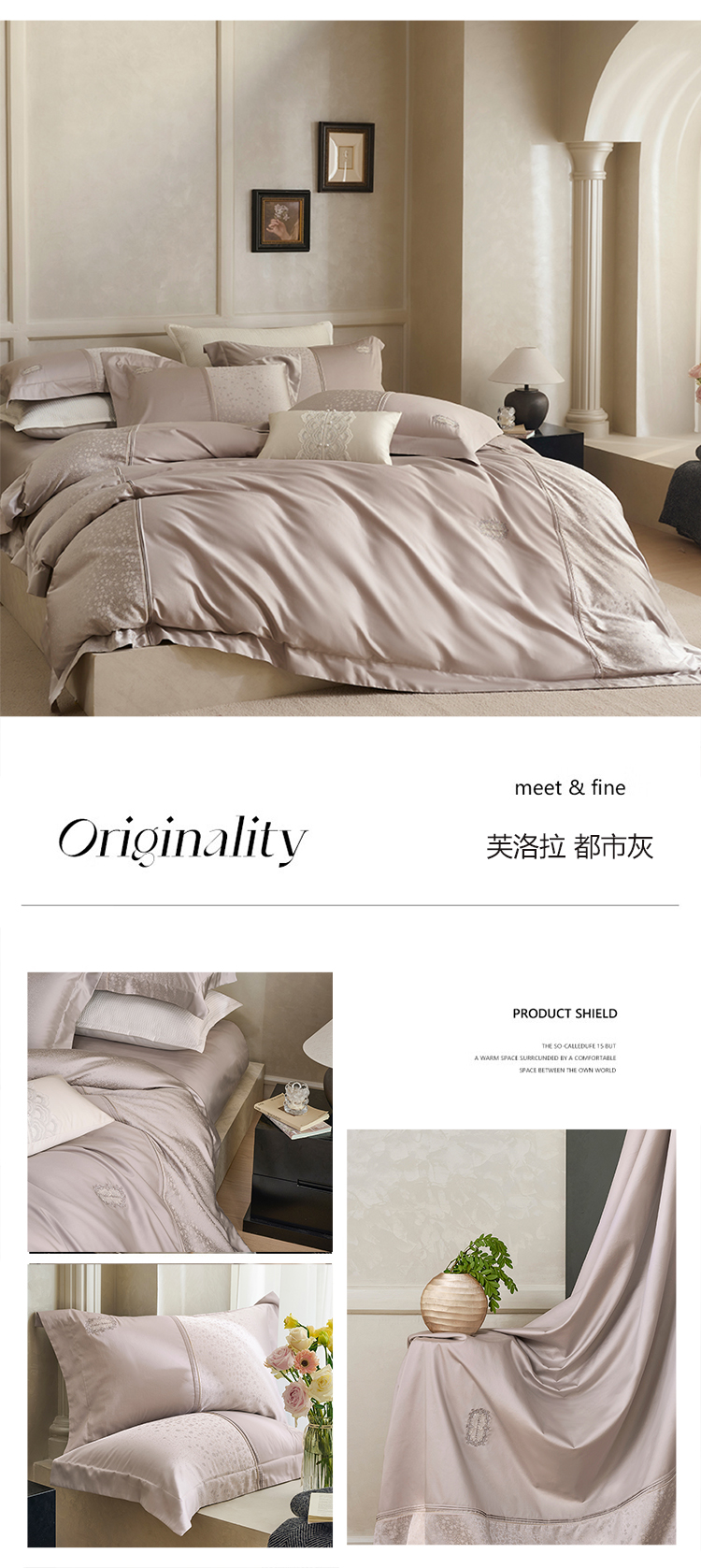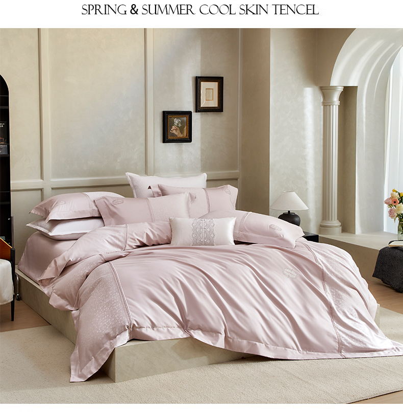 (总)诗黛尔 2026春夏新款长绒棉刺绣四件套黎境系列,黎境-香槟金,黎境-极光蓝,黎境-卡其色,黎境-落樱粉,黎境-绅士灰