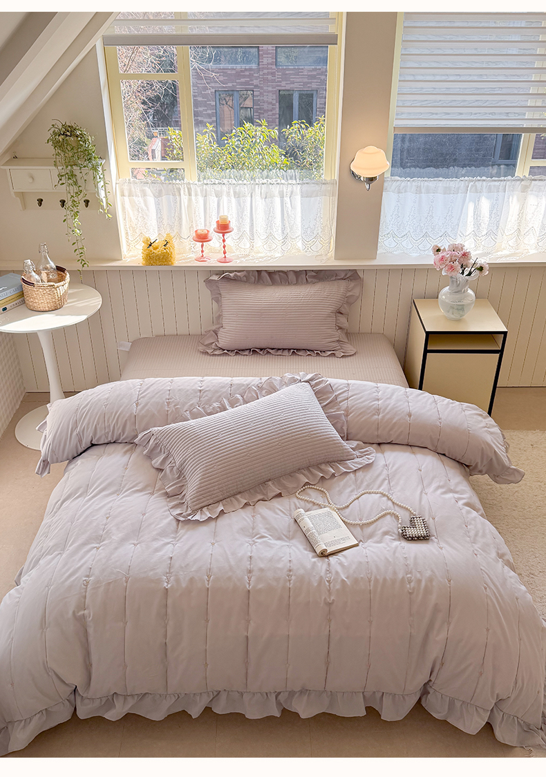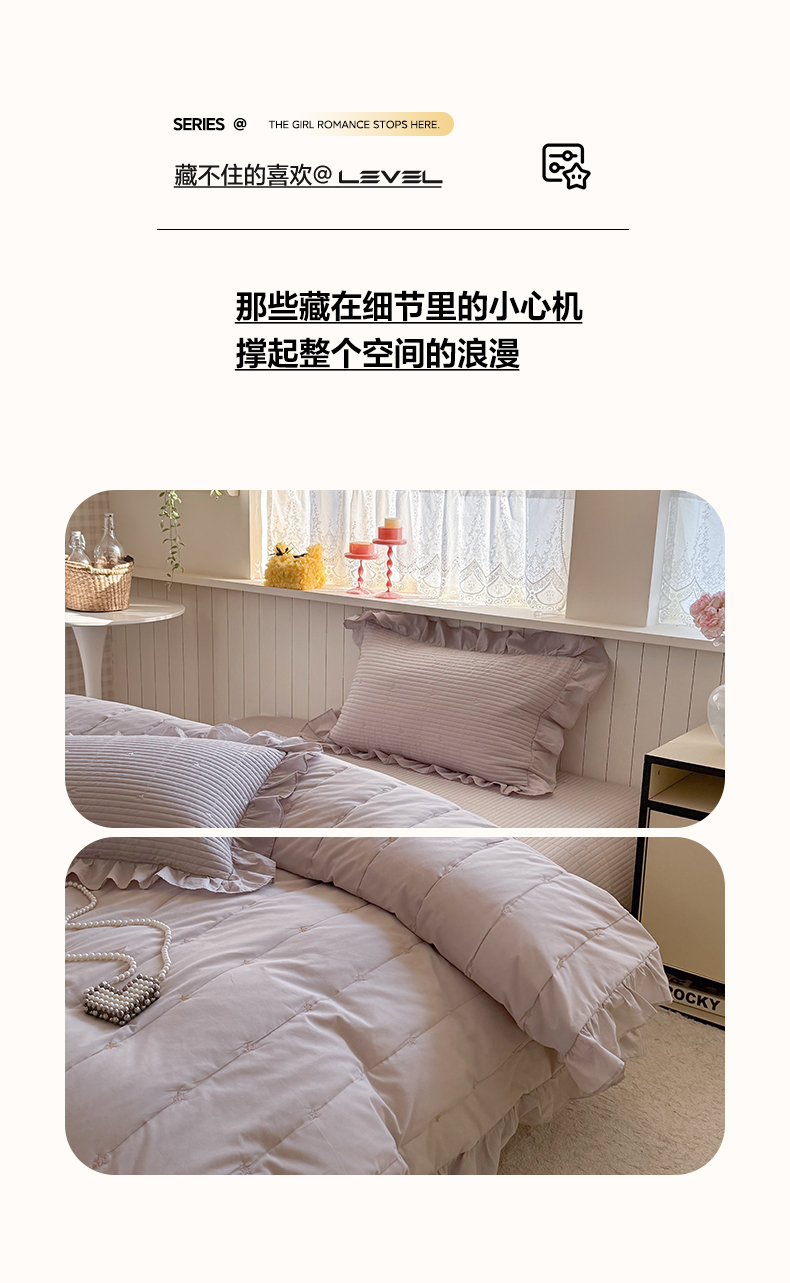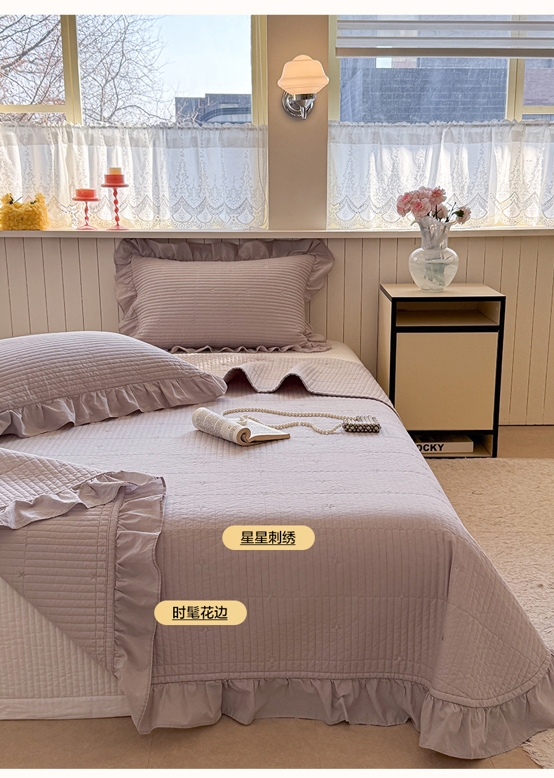 诗黛尔 2026春夏新款星空间双面60支水洗全棉床盖三件套/四件套 星空间-浅紫