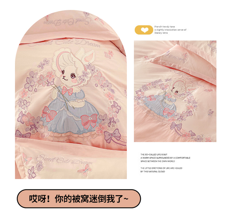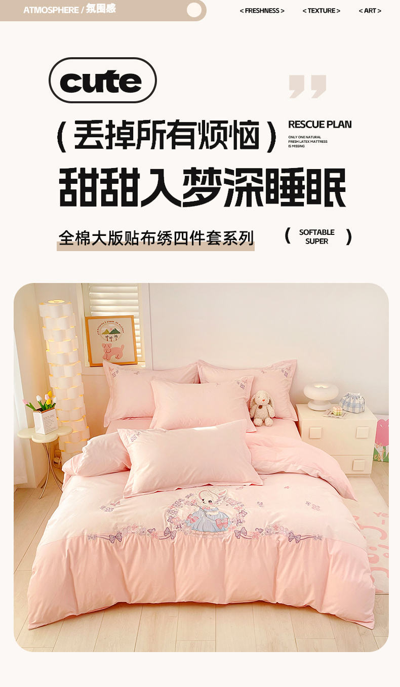 金绣美居 2026新款全棉纯棉大版贴布绣四件套-兔游花园 兔游花园-粉