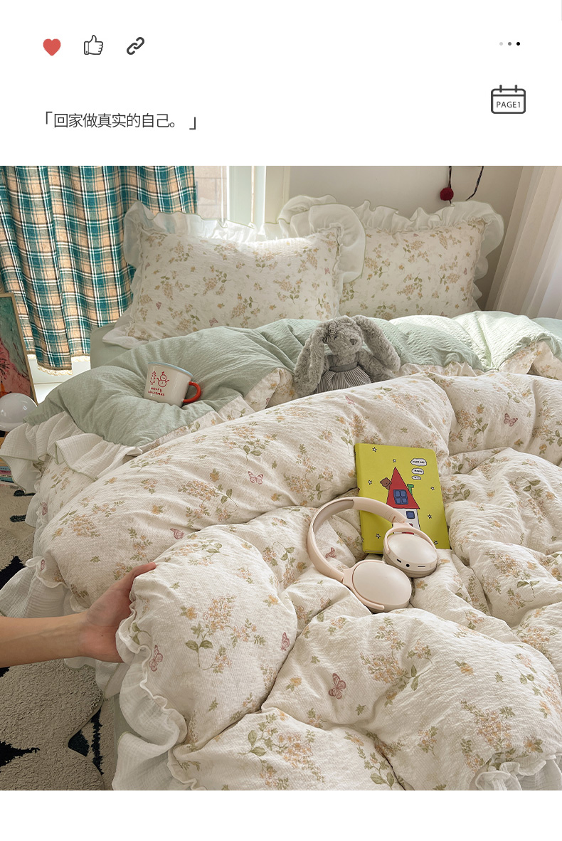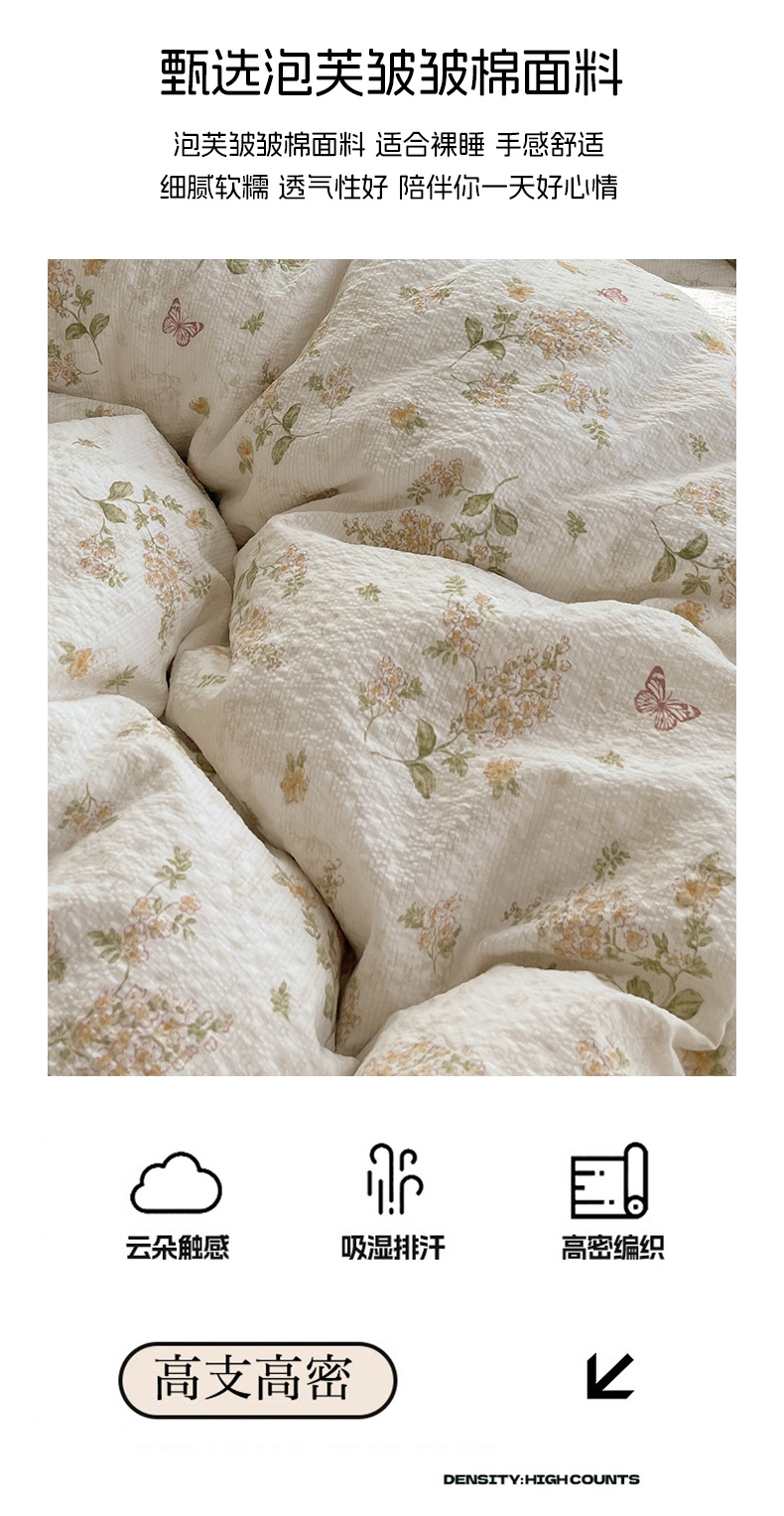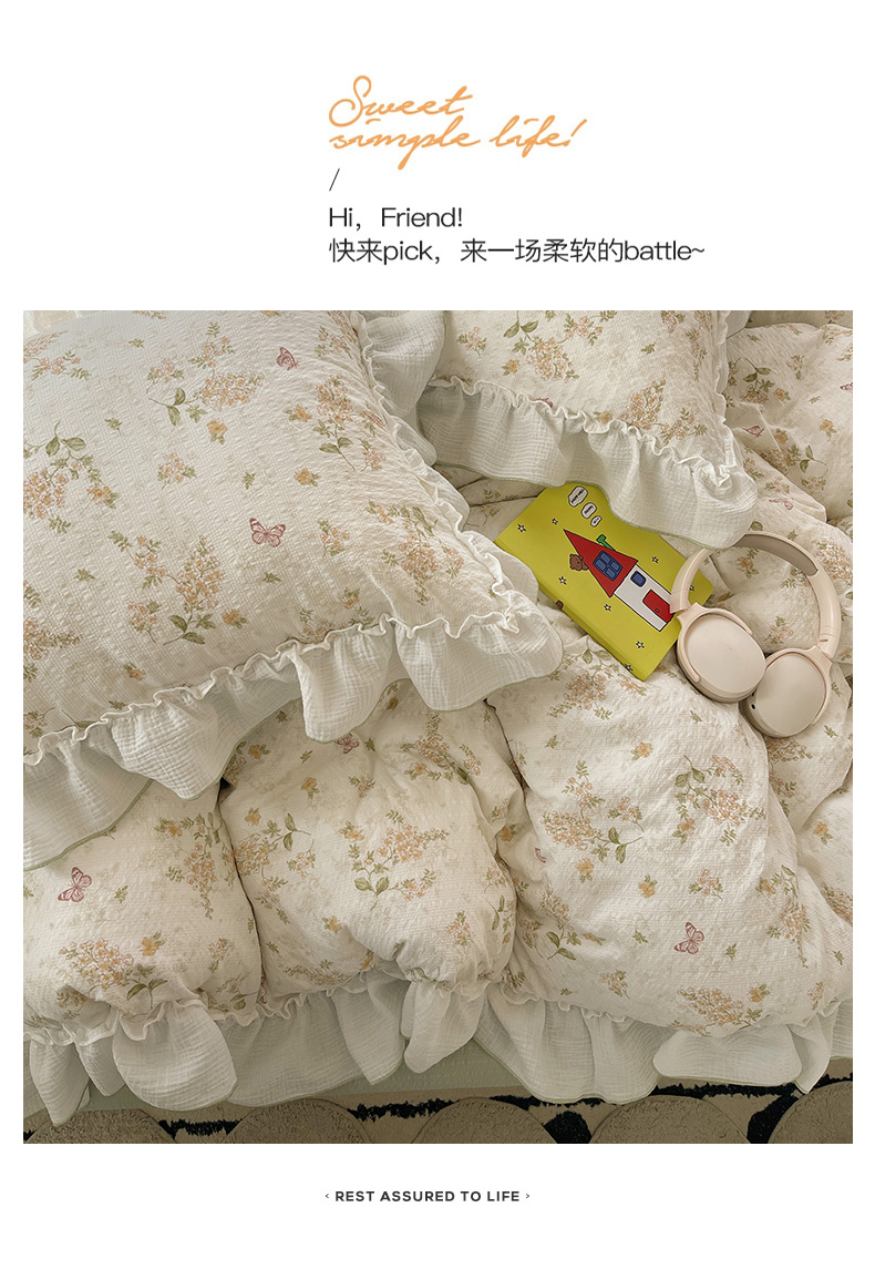 当前位置: 91家纺网 > 商品网购 > 床品套件 > 四件套 > 其它四件套 > 繁花家居 2026新款韩系花边小碎花泡芙棉云感邹邹纱费尔岛风四件套 春樱漫时