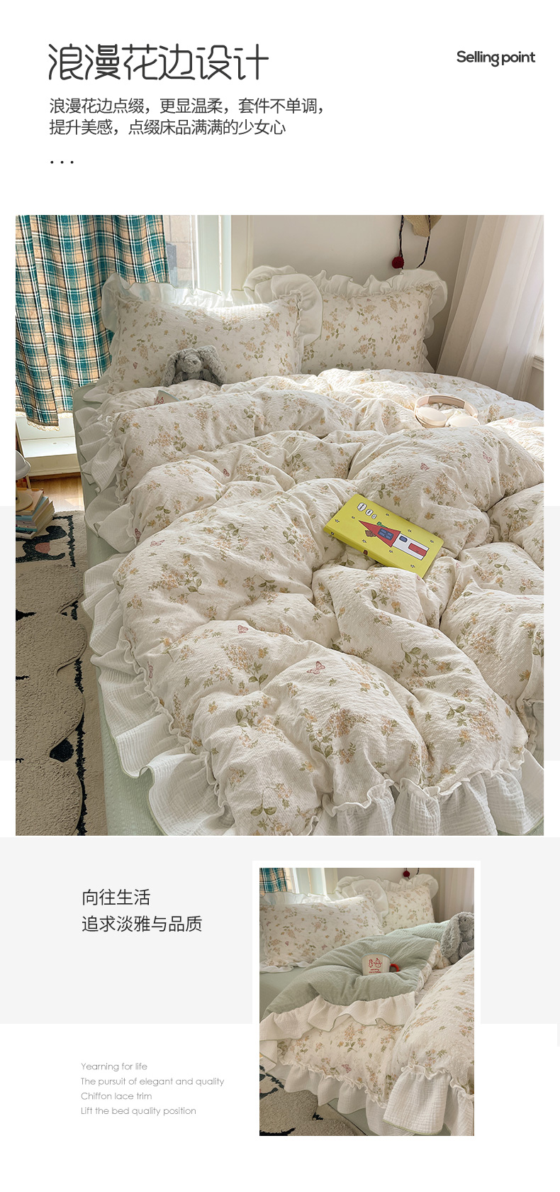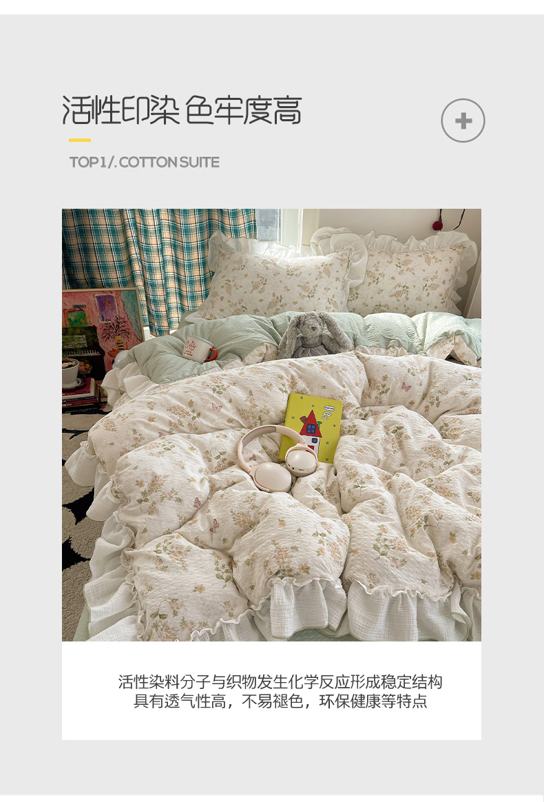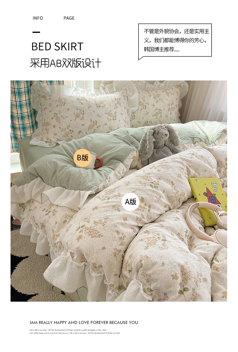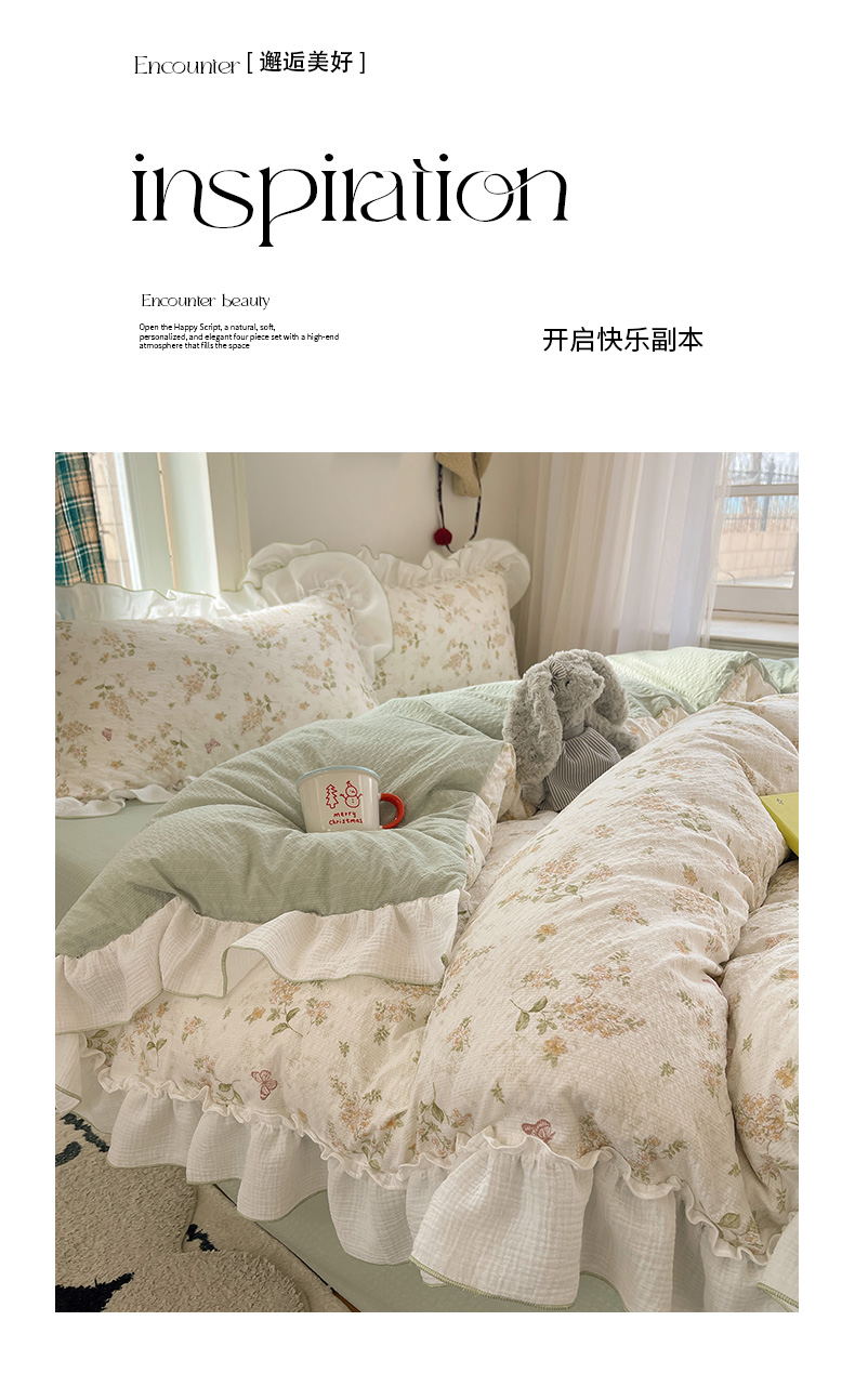 当前位置: 91家纺网 > 商品网购 > 床品套件 > 四件套 > 其它四件套 > 繁花家居 2026新款韩系花边小碎花泡芙棉云感邹邹纱费尔岛风四件套 春樱漫时