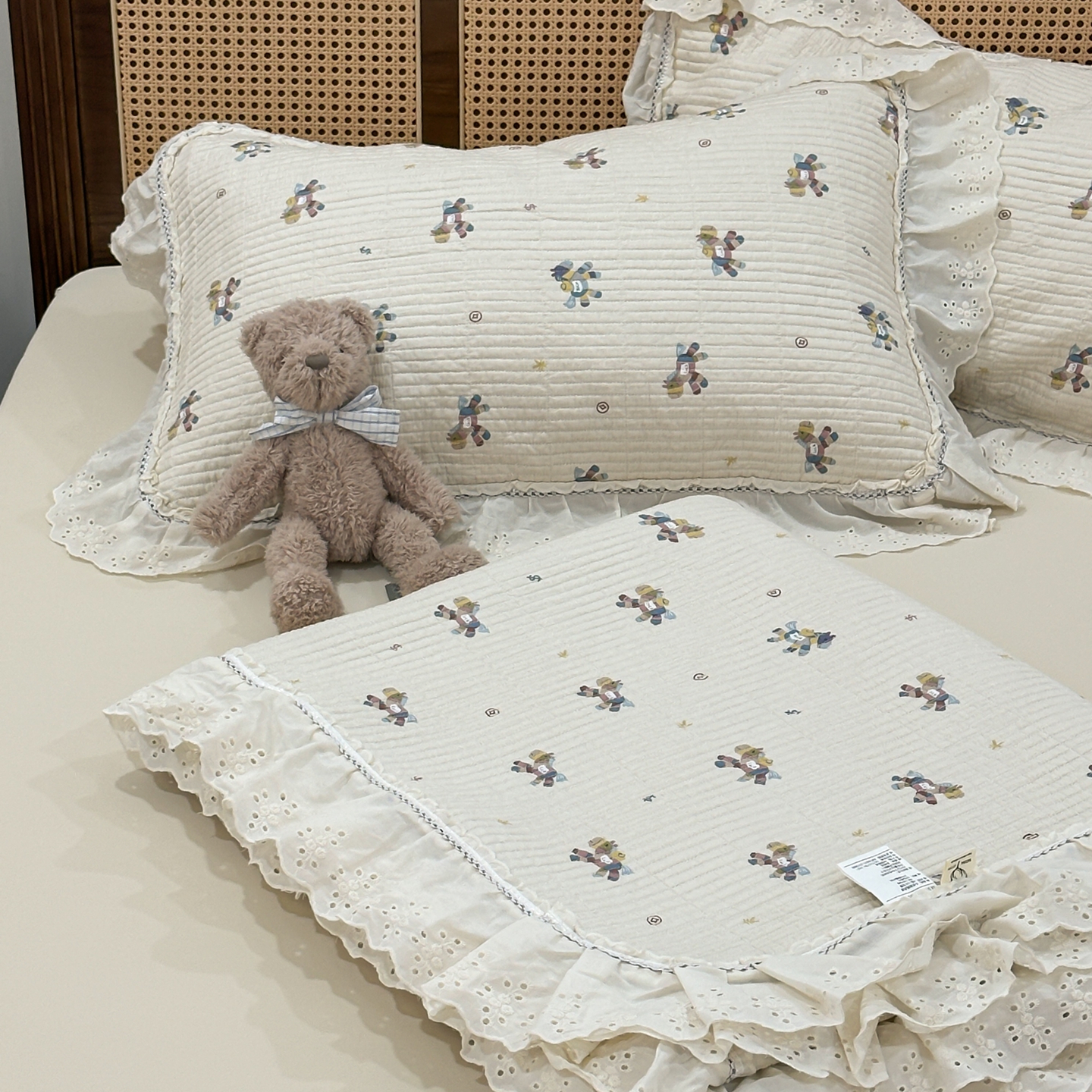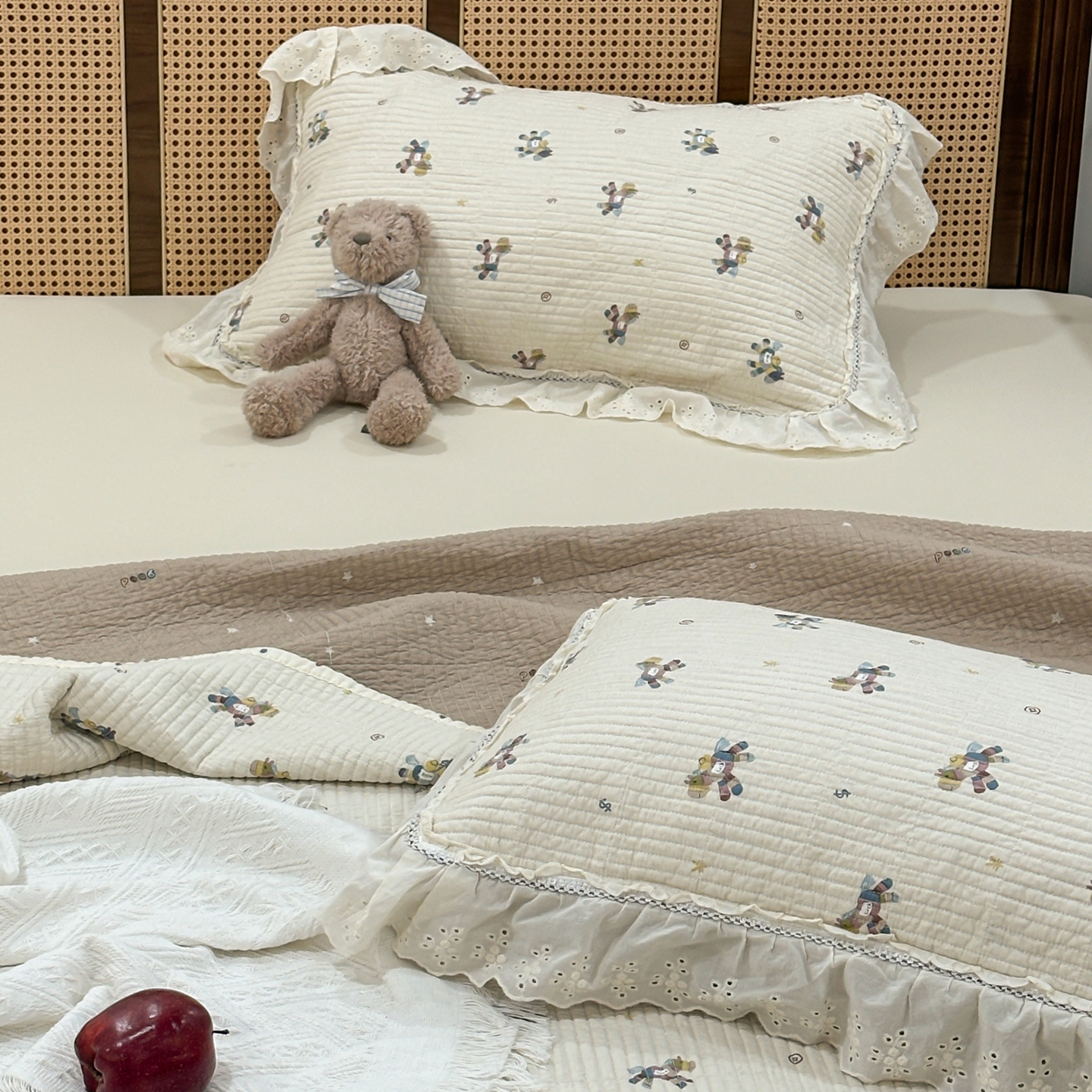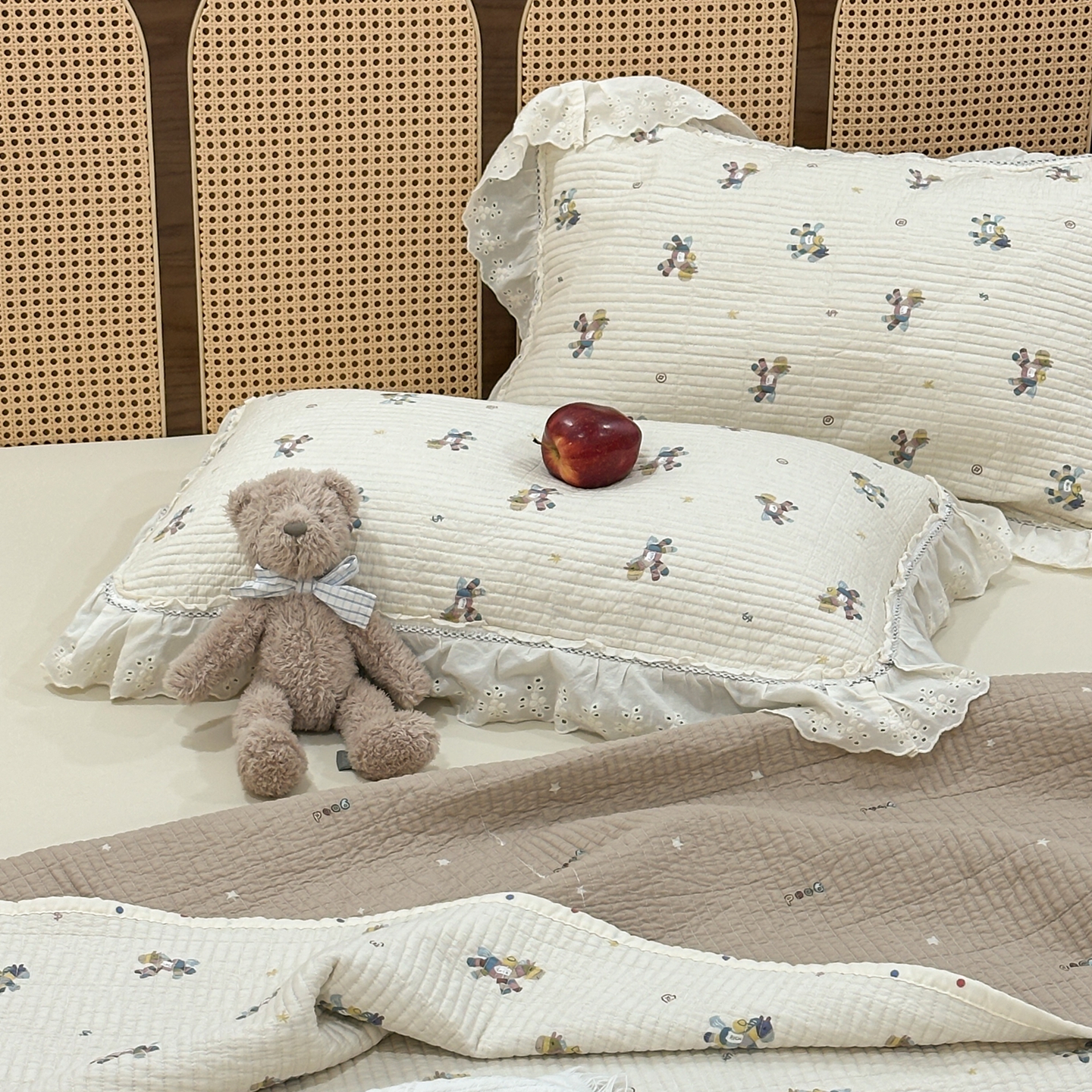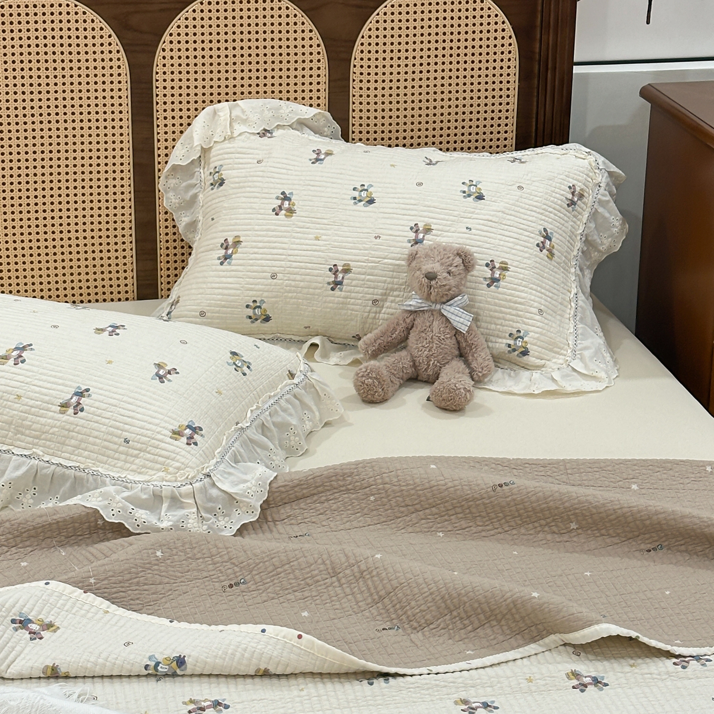 (总)床盖工厂店 2026新款全棉卡通纱布床盖三件套,斑点象 粉,斑点象 兰,嘟比熊,萌星 黄,趣梦鹅 黄,趣梦鹅 绿