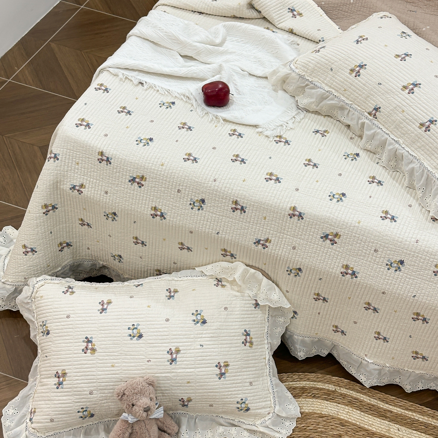 床盖工厂店 2025新款法式双面全面填充棉花床盖三件套 小马浅浅