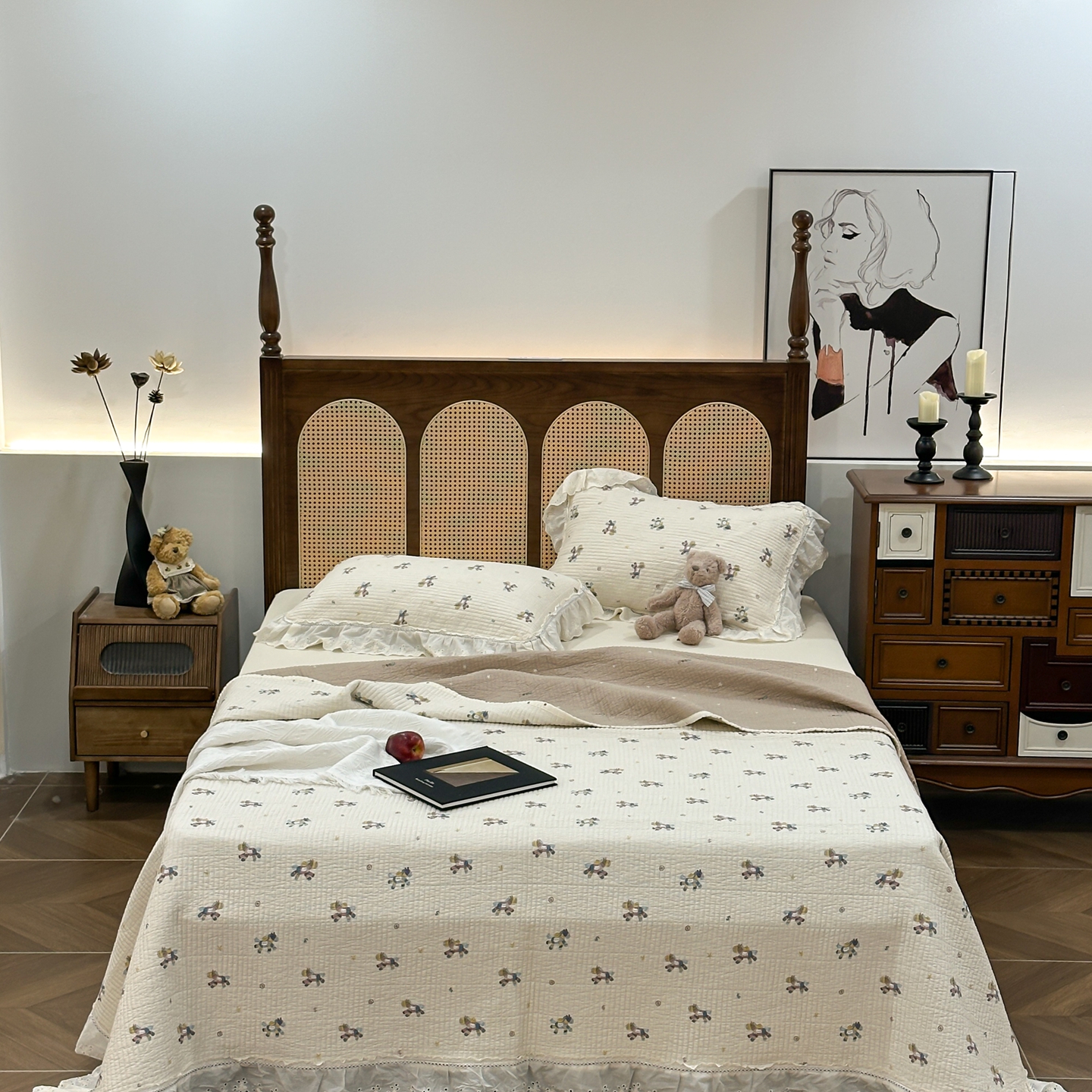 商品名称:床盖工厂店 2025新款法式双面全面填充棉花床盖三件套 小马浅浅