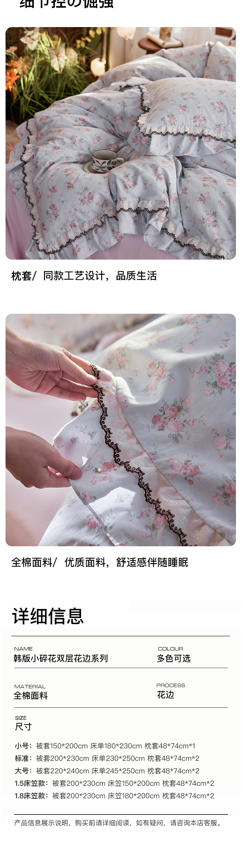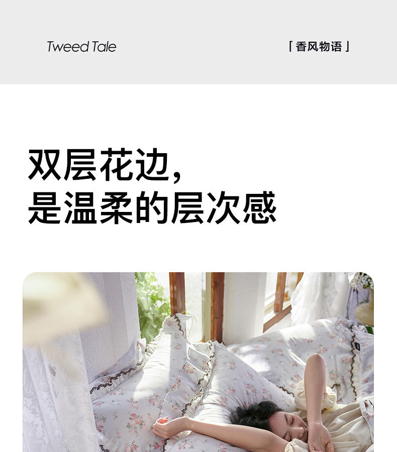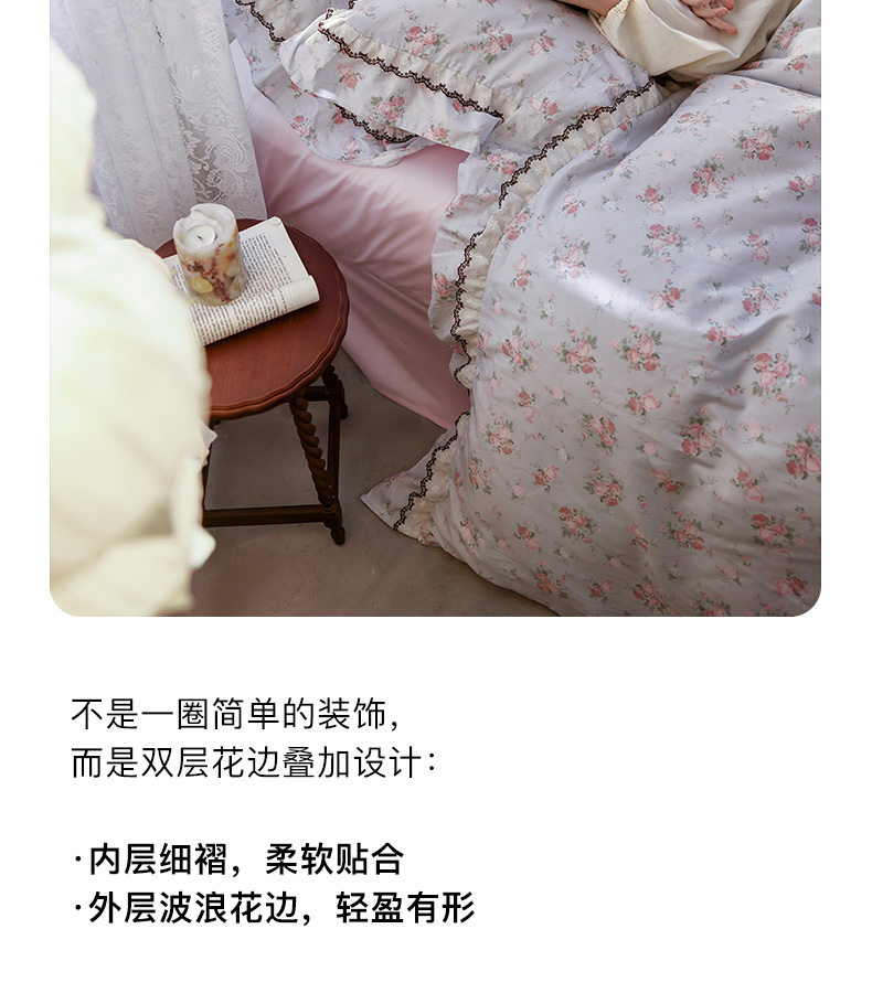 商品名称:卡姿家纺 2026春夏韩版小碎花双层花边系列 泠羽花园