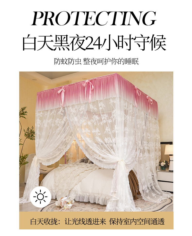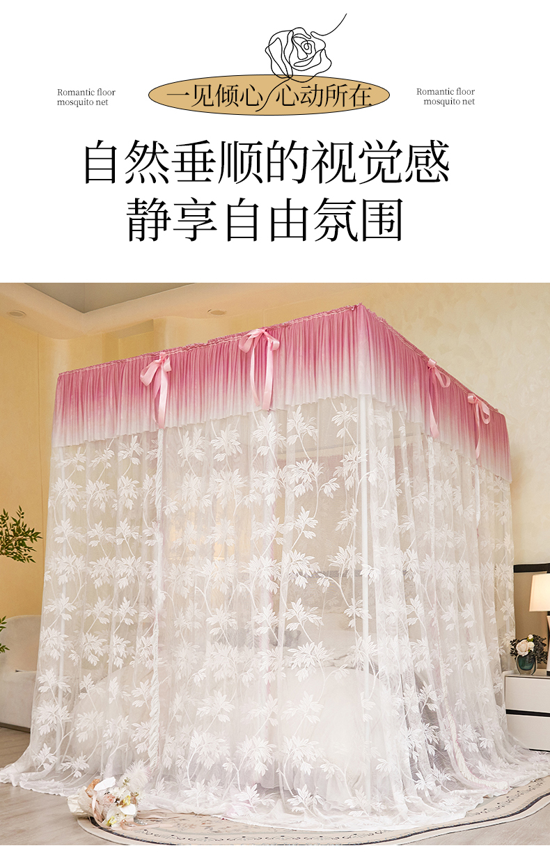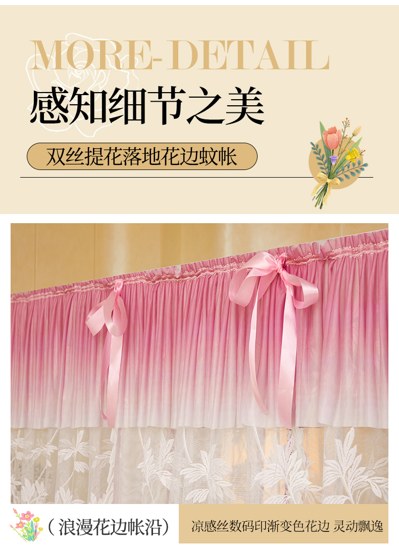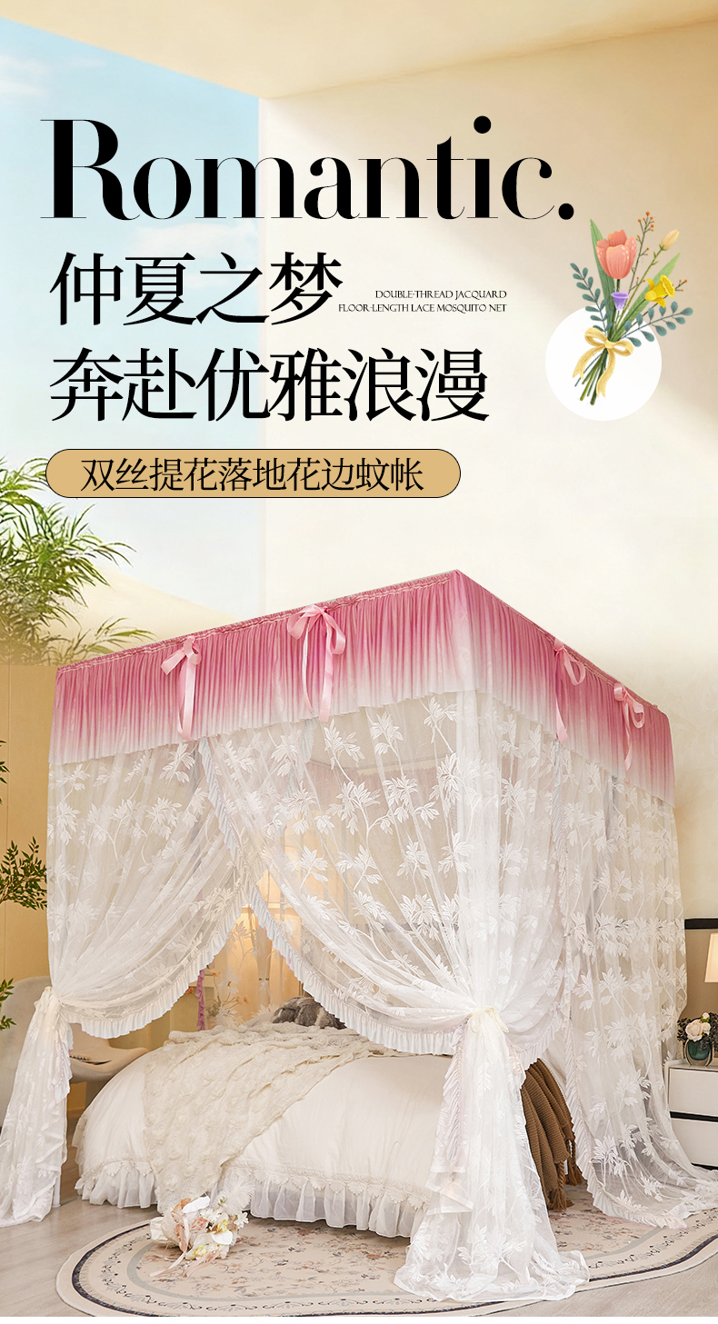 (总)世婕 2026新款双丝提花落地花边蚊帐-浪漫满屋,浪漫满屋-香妃玉,浪漫满屋-海岛蓝,浪漫满屋-灰色,浪漫满屋-柔粉白,浪漫满屋-樱花粉