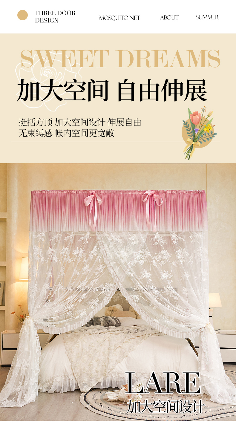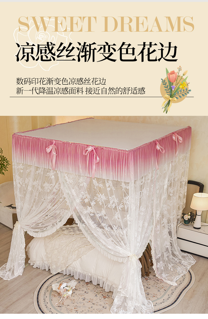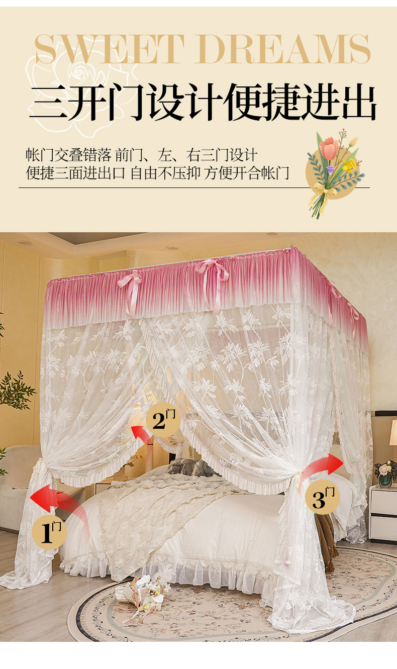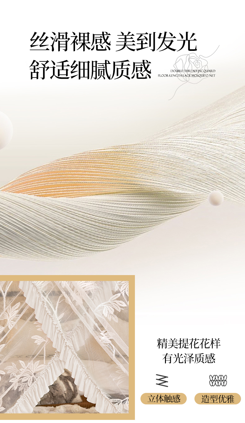(总)世婕 2026新款双丝提花落地花边蚊帐-浪漫满屋,浪漫满屋-香妃玉,浪漫满屋-海岛蓝,浪漫满屋-灰色,浪漫满屋-柔粉白,浪漫满屋-樱花粉