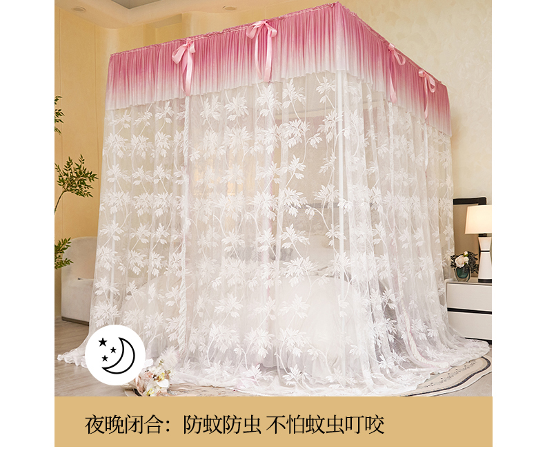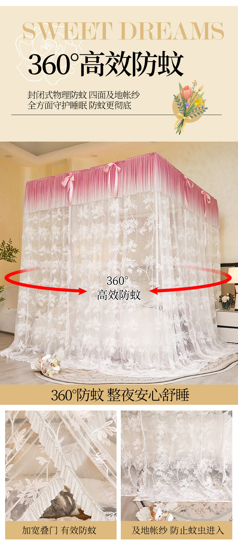 世婕 2026新款双丝提花落地花边蚊帐-浪漫满屋 浪漫满屋-柔粉白