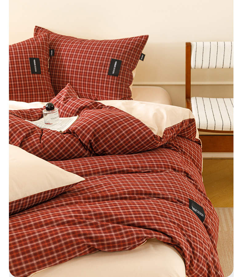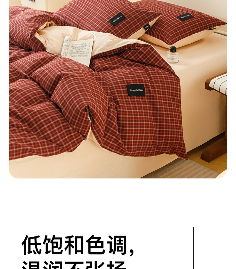 商品名称:卡姿家纺 2026春夏色织水洗棉无印复古风格 旷野红