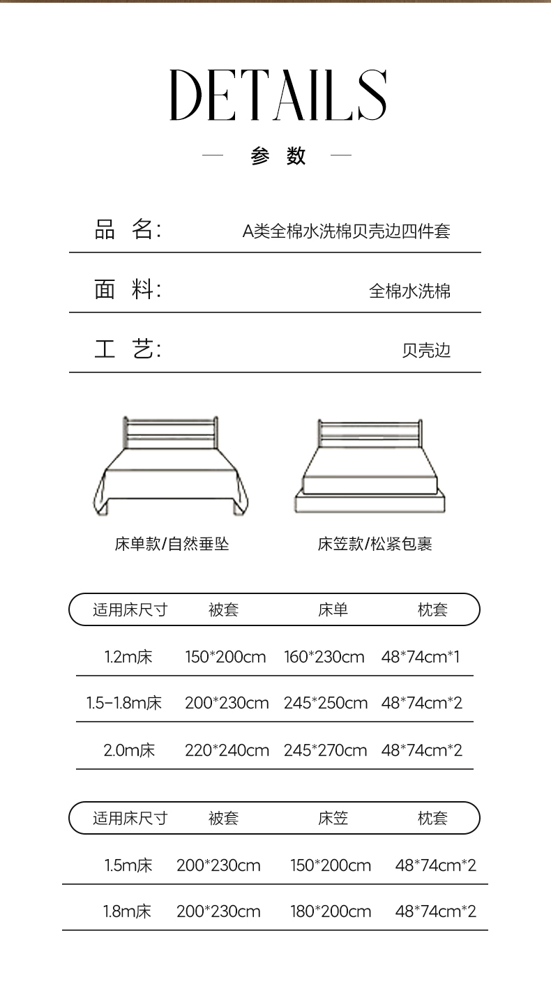 商品名称:禧澜庭 2026新款全棉纯棉水洗棉贝壳边三角针四件套 初见-蓝