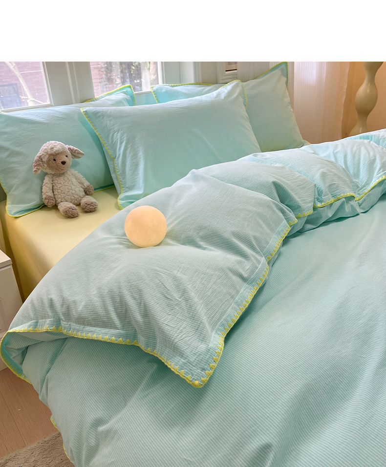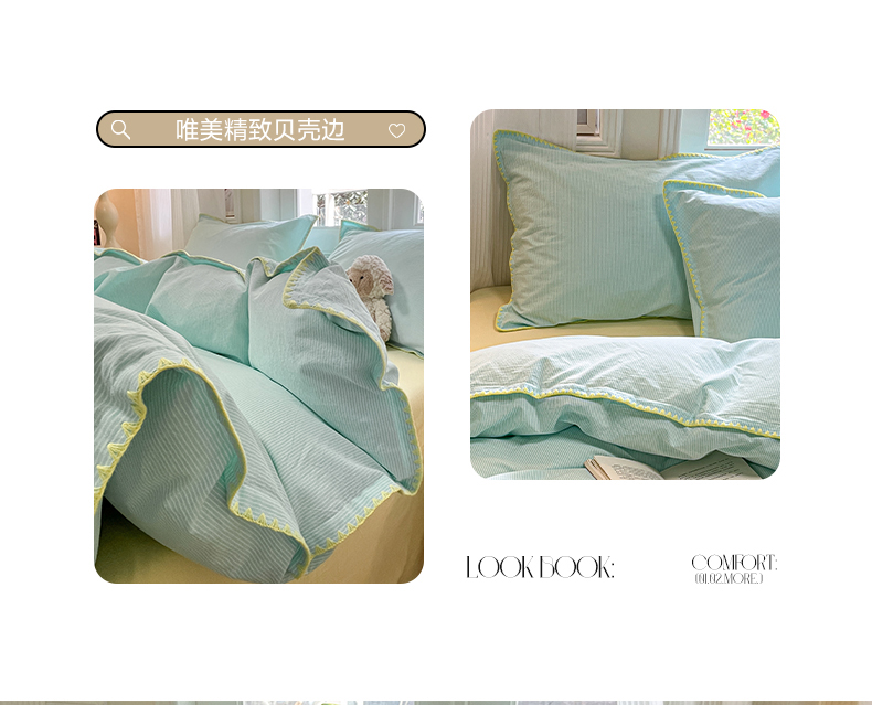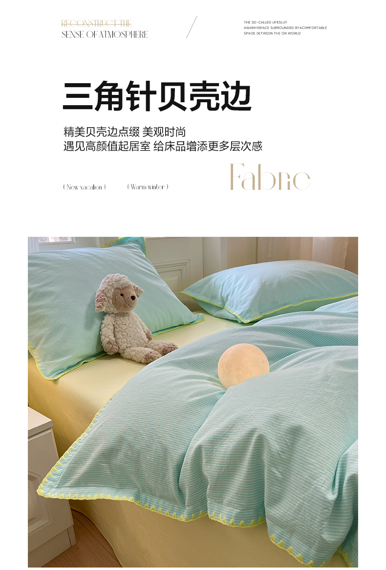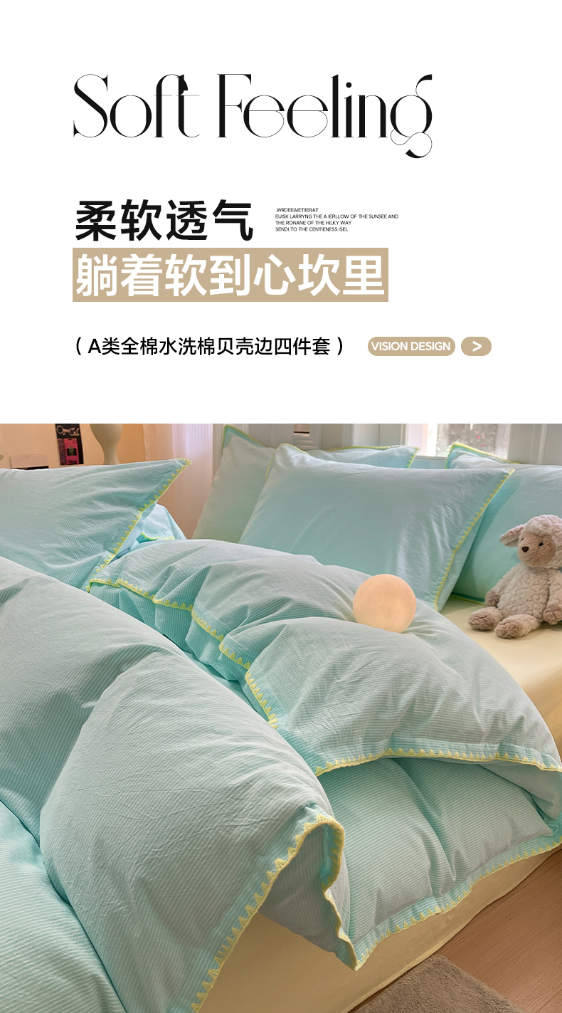 (总)禧澜庭 2026新款全棉纯棉水洗棉贝壳边三角针四件套,初见-粉,初见-黄,初见-灰,初见-蓝,简格-灰,简格-蓝,简格-紫,云芙-粉,云芙-黄