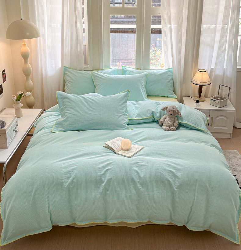 (总)禧澜庭 2024新款纯棉全棉水洗棉斜纹无印风纯棉四件套三件套,梵星蓝+奶黄,湖蓝+梧桐灰,抹茶绿+奶茶,奶昔白+卡其,奶昔白+抹茶绿,奶油粉+梧桐灰,驼色+奶茶色,银灰+梧桐灰,优雅紫+香叶粉