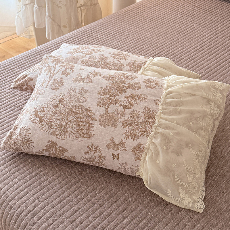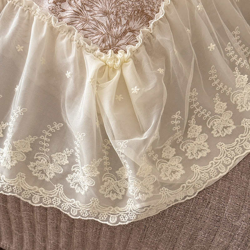商品名称:苏米娜2026春夏新款法式复古双层花边大蕾丝水洗棉亚麻床盖款四件套全棉纯棉印花小碎花四件套 芙琳