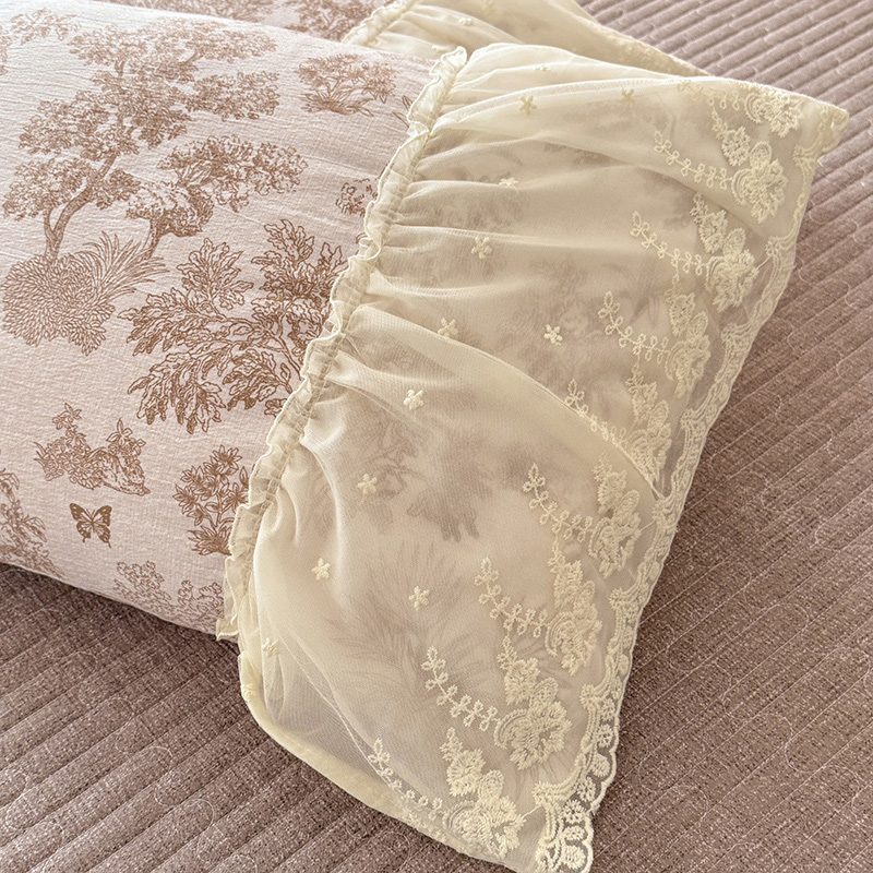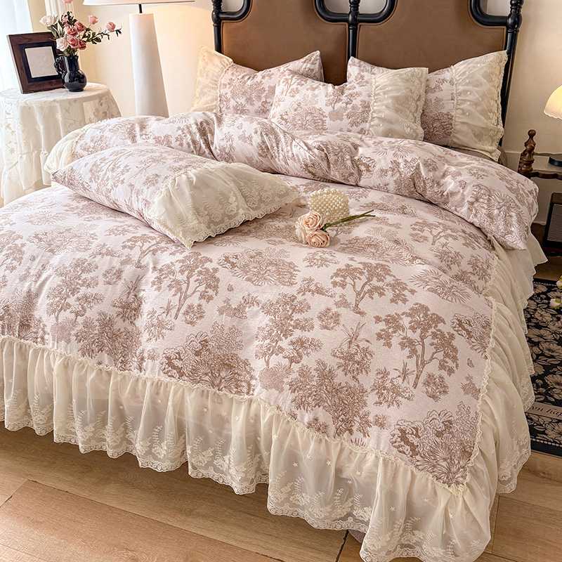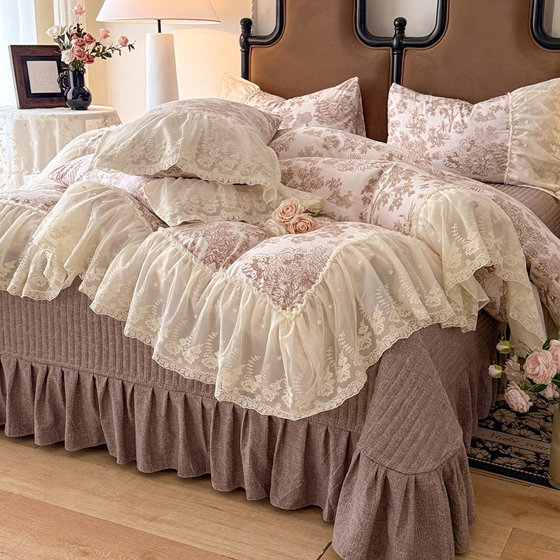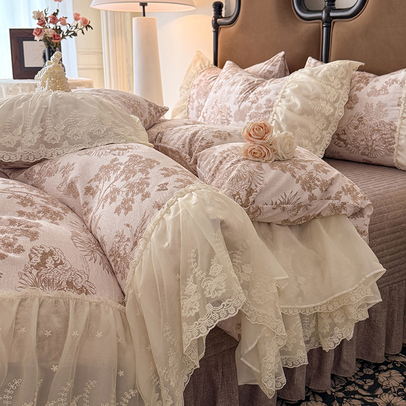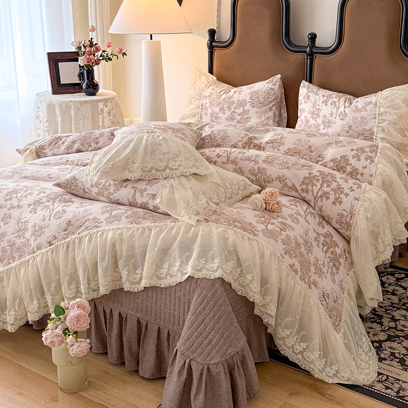 苏米娜2026春夏新款法式复古双层花边大蕾丝水洗棉亚麻床盖款四件套全棉纯棉印花小碎花四件套 芙琳