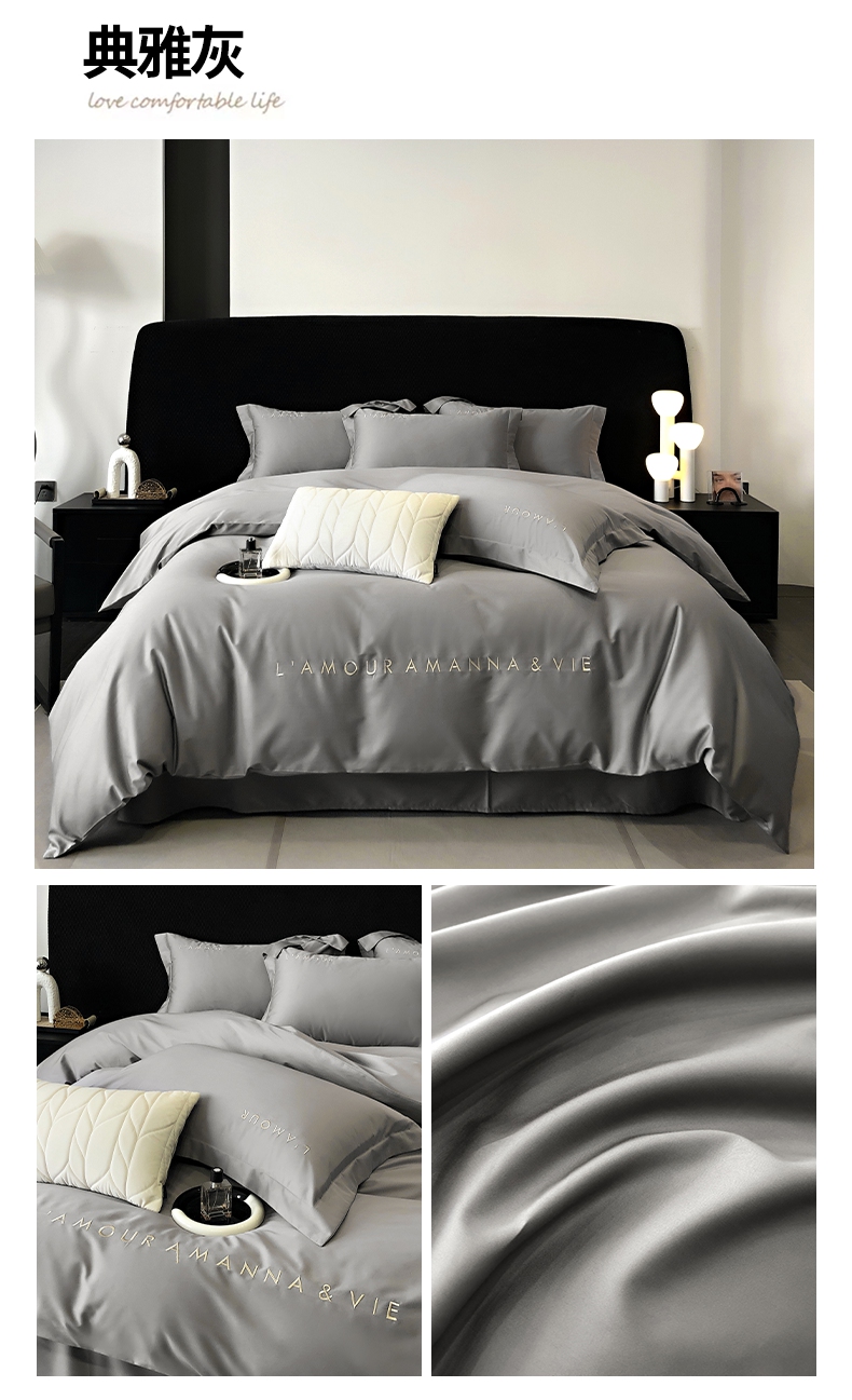 (总)禧澜庭 2026新款高支纯棉全棉斜纹四件套刺绣绣花款轻奢三件套--简爱系列,典雅灰,芙蓉粉,芙蓉粉+浅紫,贵族白+绿色,贵族白+浅紫,贵族白+香槟,莫奈蓝,莫奈蓝+浅灰,拾光绿+香槟,星辰紫