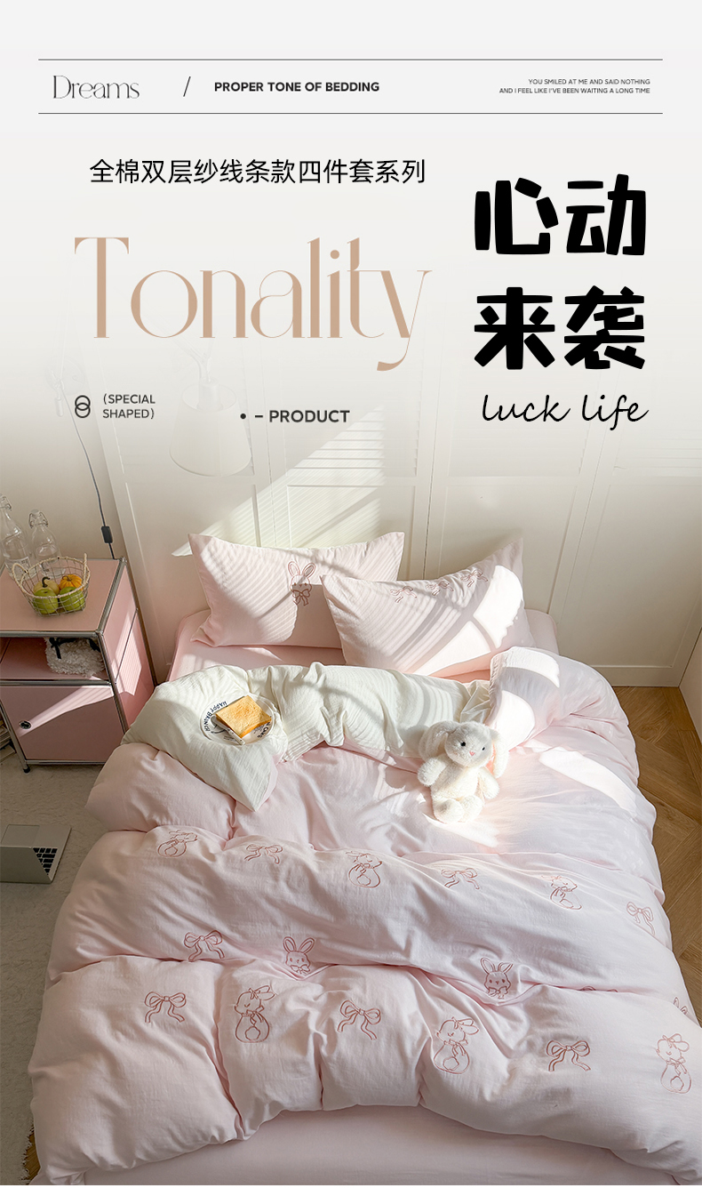 当前位置: 91家纺网 > 商品网购 > 床品套件 > 四件套 > 全棉普通四件套 > FORTWO家纺原创设计(FOR TWO家纺) 2026新款全棉双层纱四件套--线条款(会员-15 控价:(券前)基础价不低于小号248元,中号328元,大号348元 床笠加10元) 线条兔兔