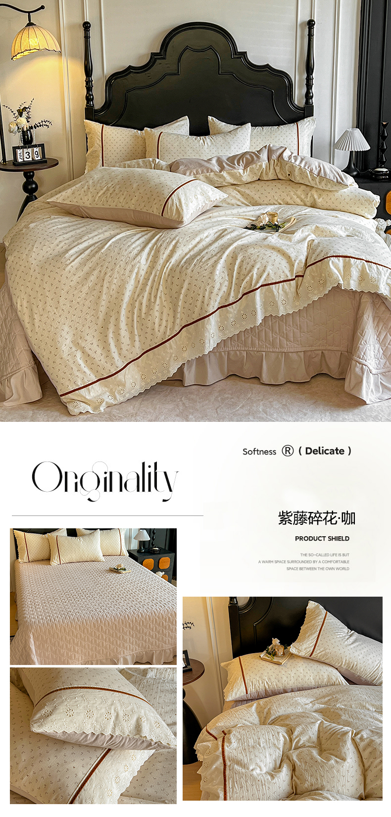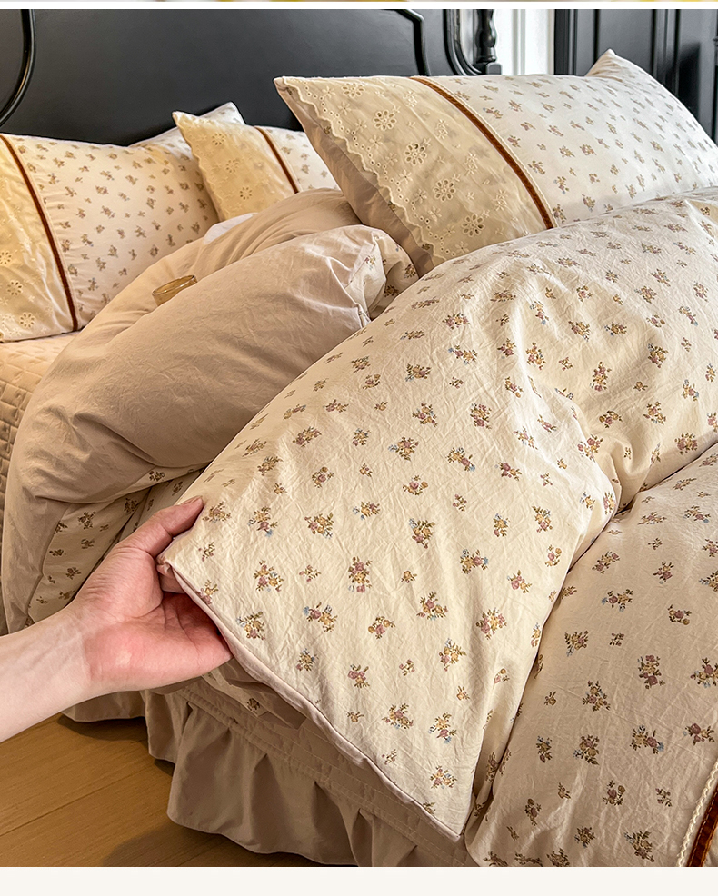 (总)美梦家纺 2026新款高克重全棉花边云感棉床盖四件套,希雅莉·米,雅格·粉,樱桃蜜·咖,尤丽叶·咖,紫藤碎花·咖,莓莓素语·粉,暖小象·兰,浅叶·米,希雅莉·灰