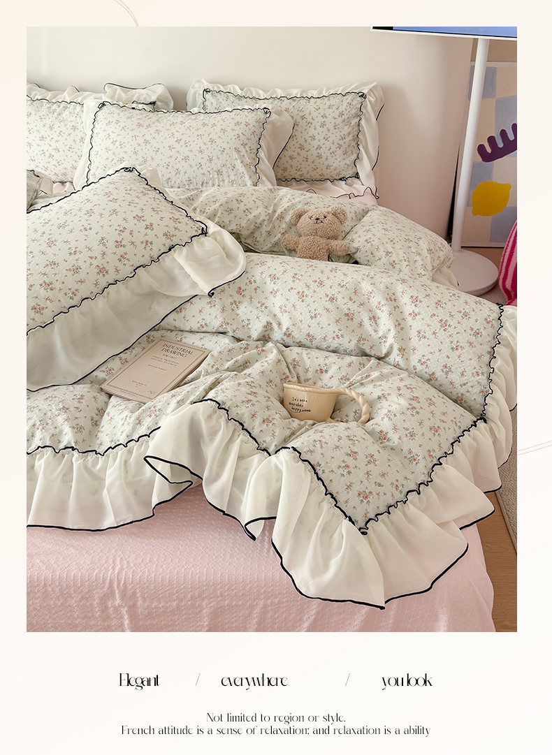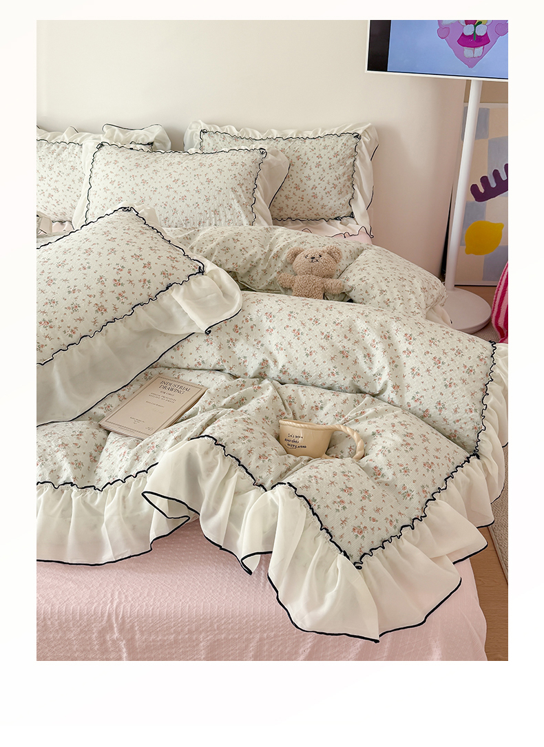 商品名称:(总)吾欢心 2026春夏新款韩版雪纺花边泡芙双层纱四件套
