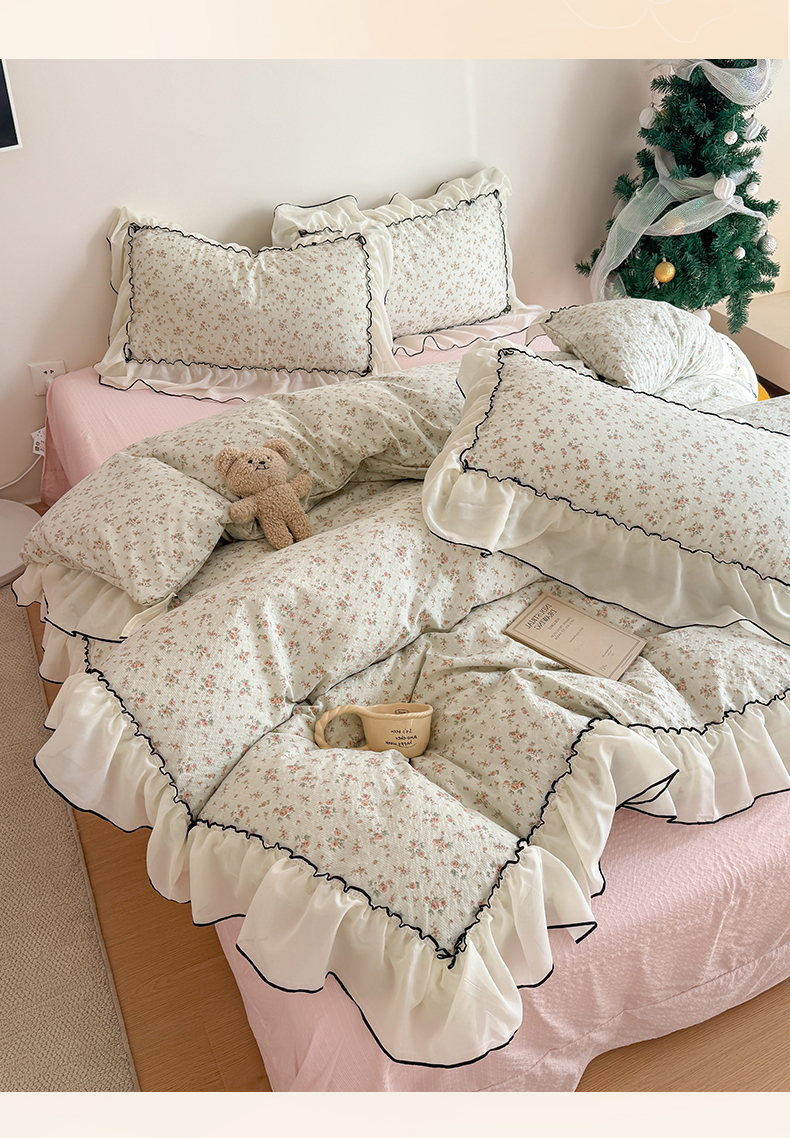 (总)吾欢心 2026春夏新款韩版雪纺花边泡芙双层纱四件套