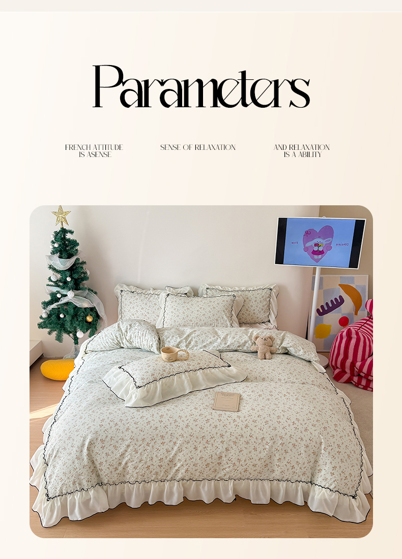 商品名称:吾欢心 2026春夏新款韩版雪纺花边泡芙双层纱四件套 蜜爱甜心