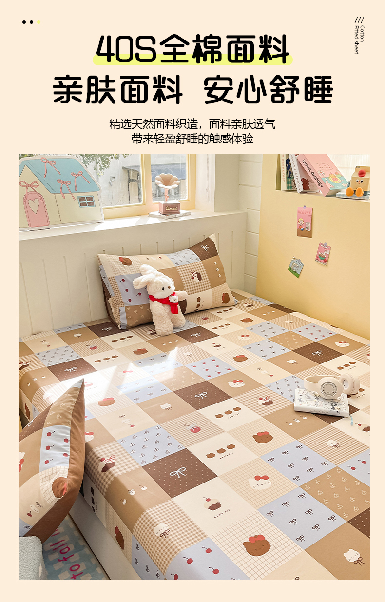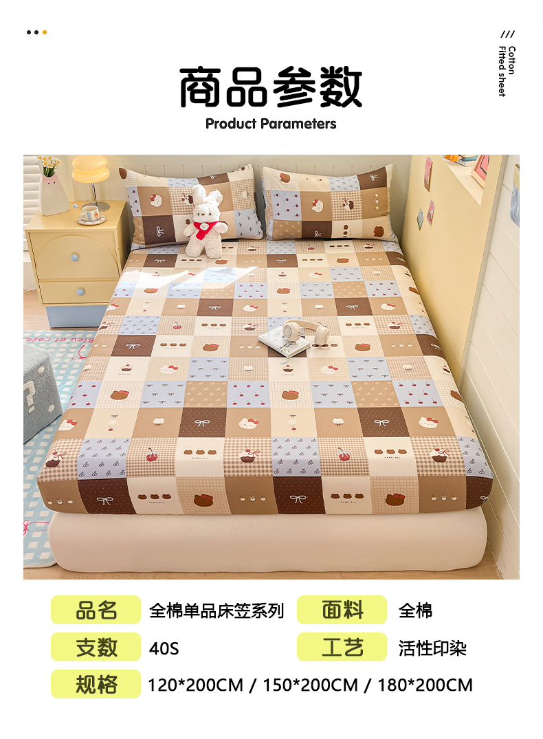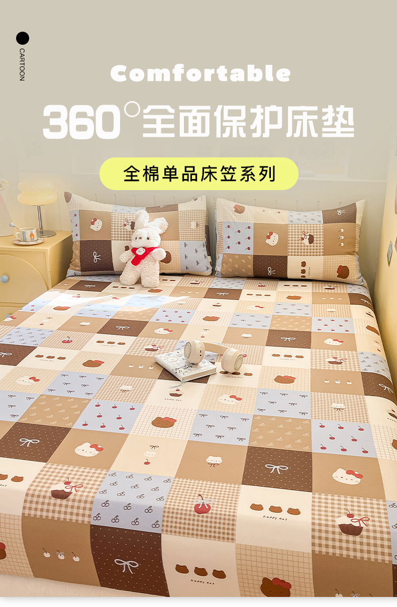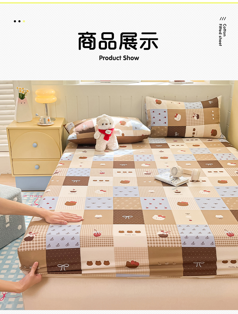 • 91家纺网 家纺一手货源 找家纺 瑞莱 2026新款纯棉全棉单品印花卡通床笠枕套系列 樱桃猫咪
