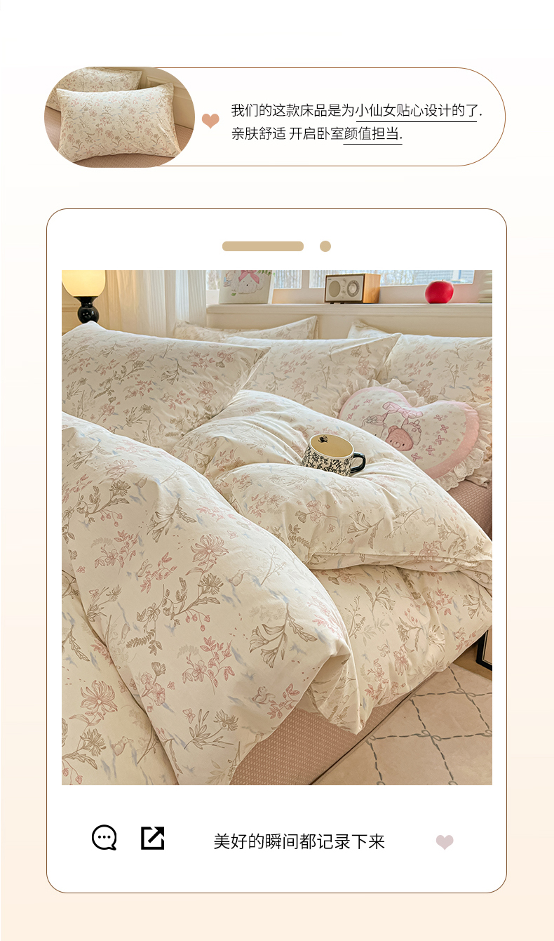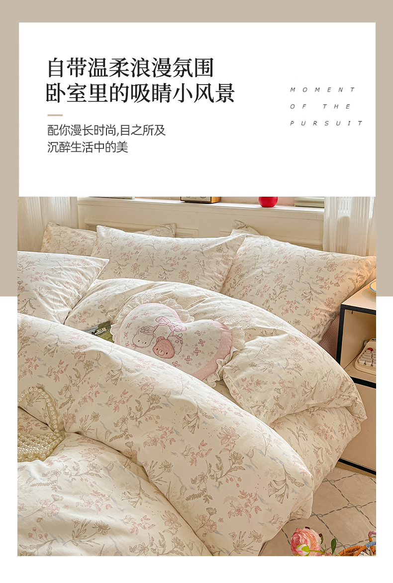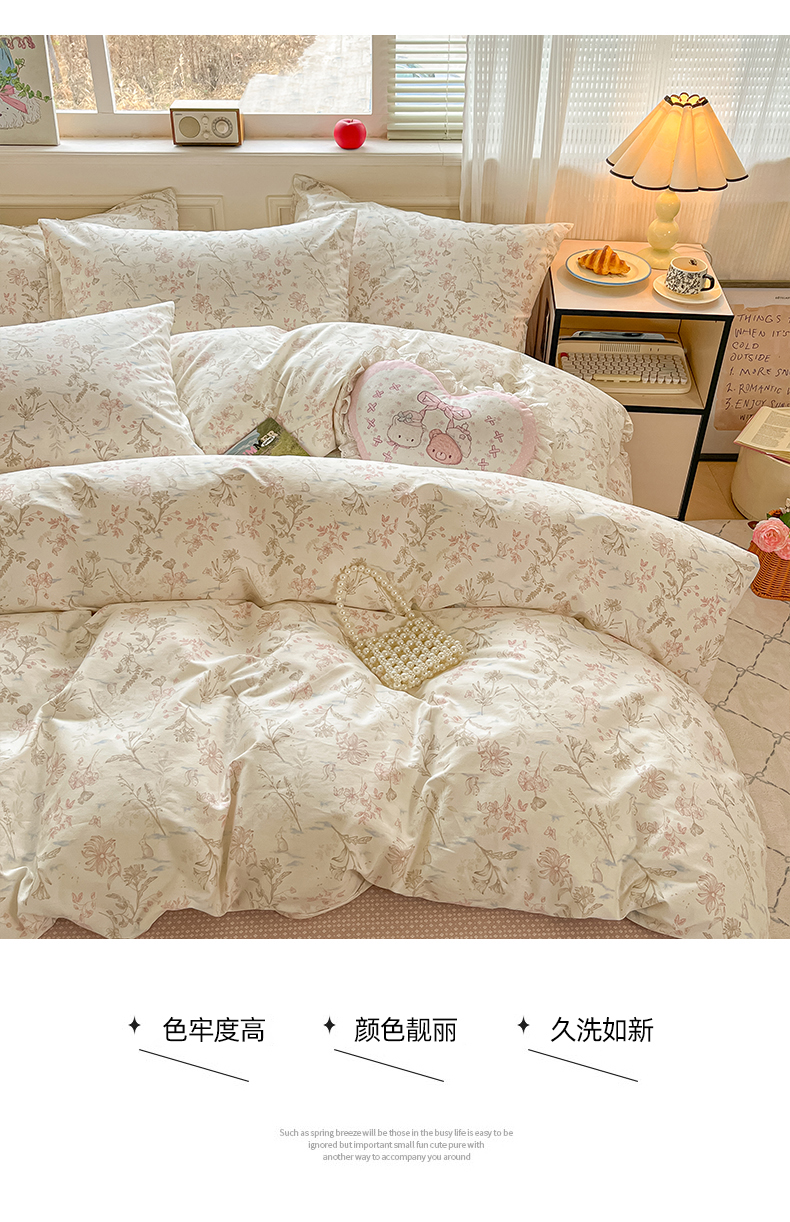 商品名称:柠馨 2026新款13372全棉印花单被套被套单件-薇丽 纯真-粉