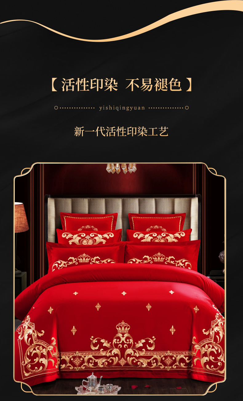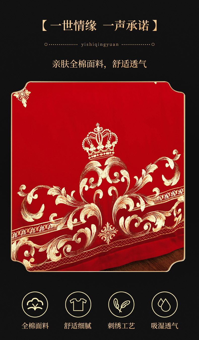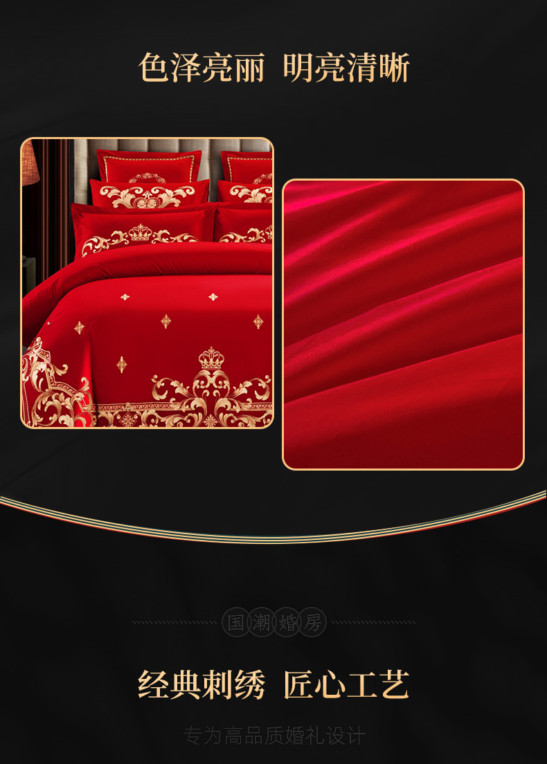 当前位置: 91家纺网 > 商品网购 > 床品套件 > 四件套 > 婚庆四件套 > 慕她家纺 慕她畅销款全棉纯棉婚庆四件套大红色刺绣结婚床上用品 皇家婚礼