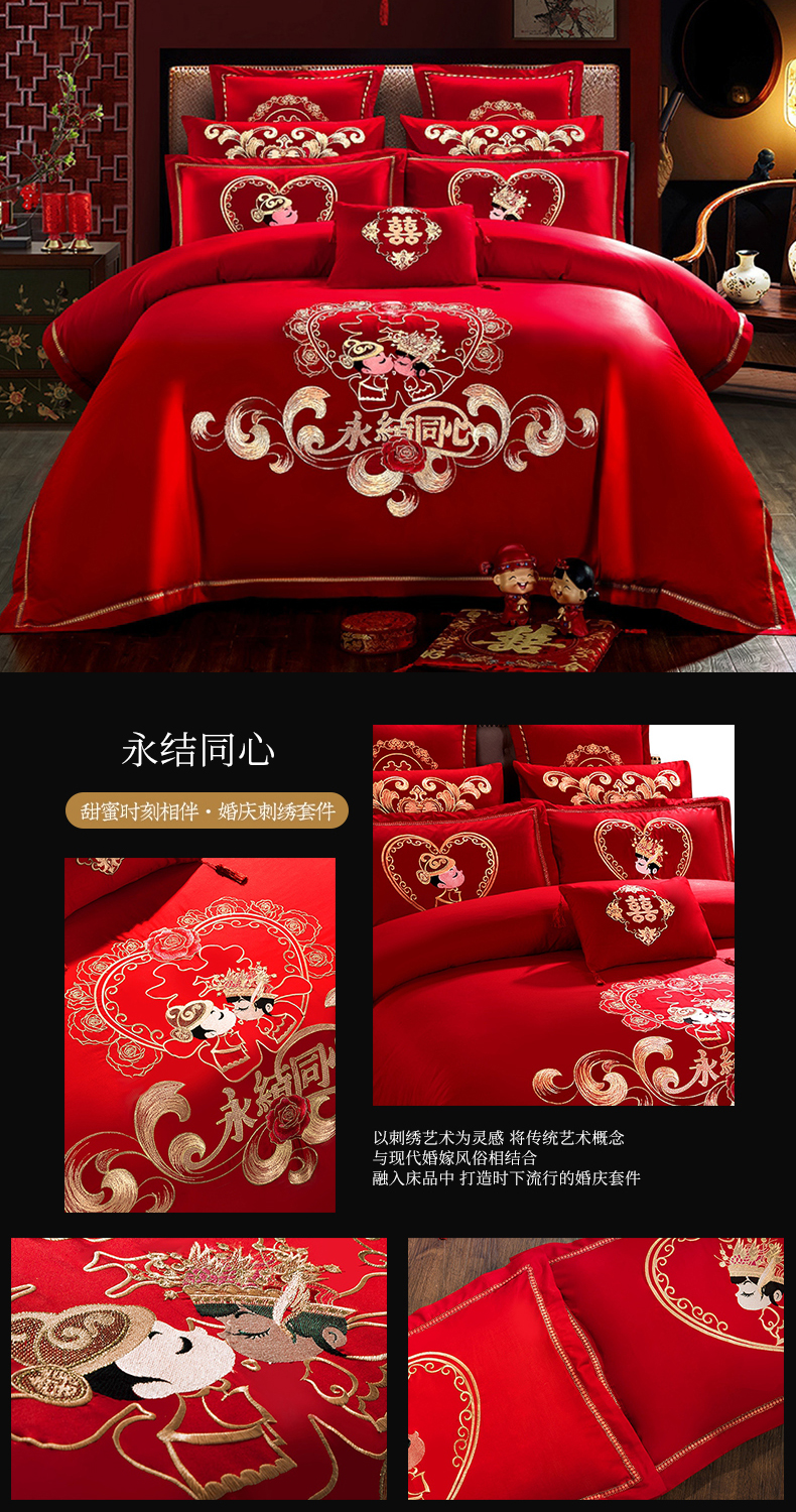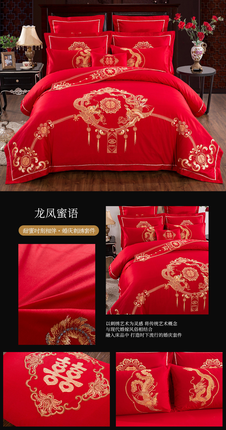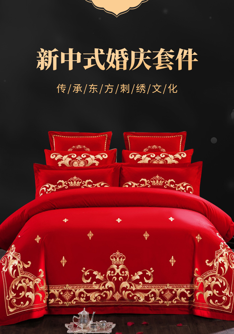 当前位置: 91家纺网 > 商品网购 > 床品套件 > 四件套 > 婚庆四件套 > 慕她家纺 慕她畅销款全棉纯棉婚庆四件套大红色刺绣结婚床上用品 皇家婚礼