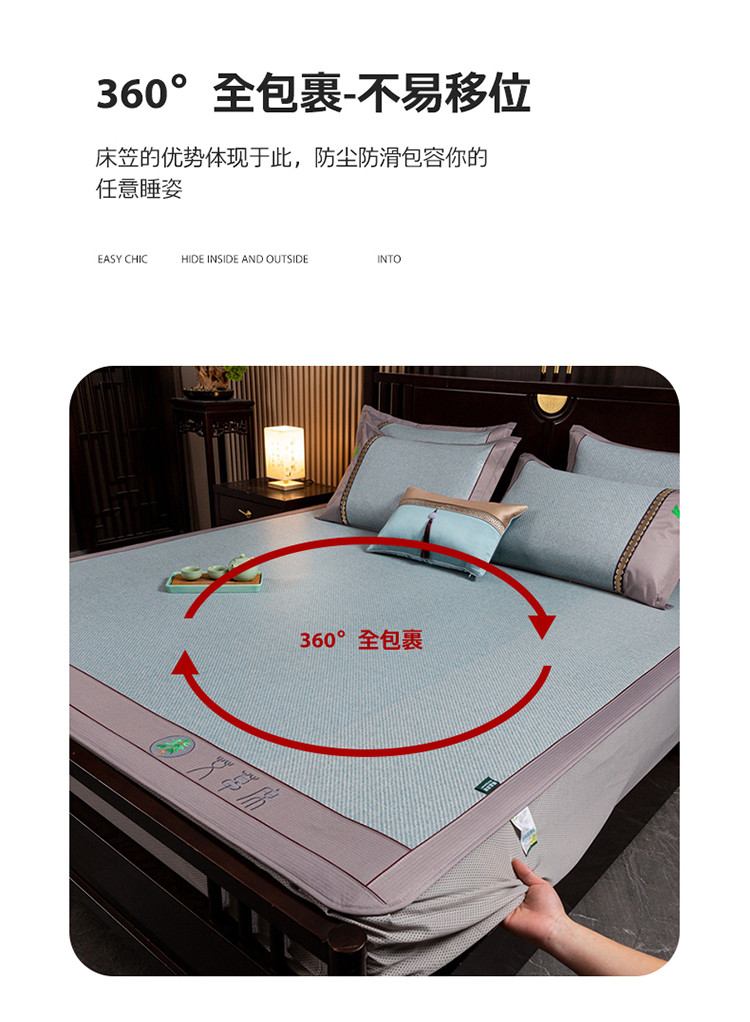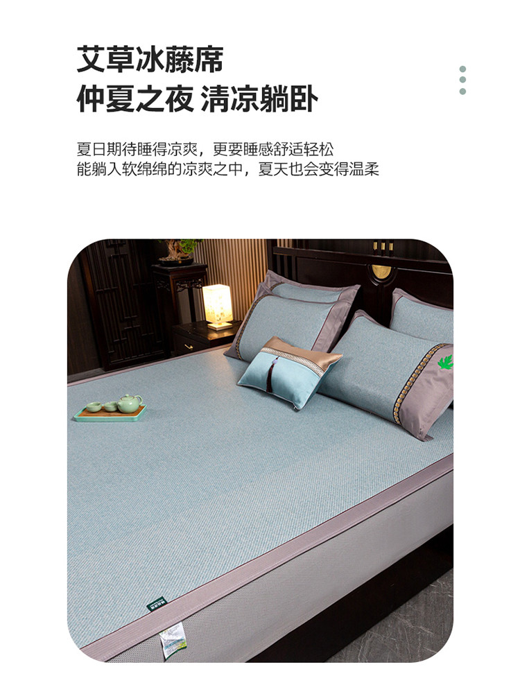 • 91家纺网 家纺一手货源 找家纺 简一 2026新款艾草古藤席床笠款凉席 (床笠)艾草席-冰蓝