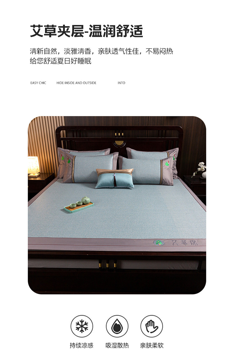 简一 2026新款艾草古藤席床笠款凉席 (床笠)艾草席-冰蓝