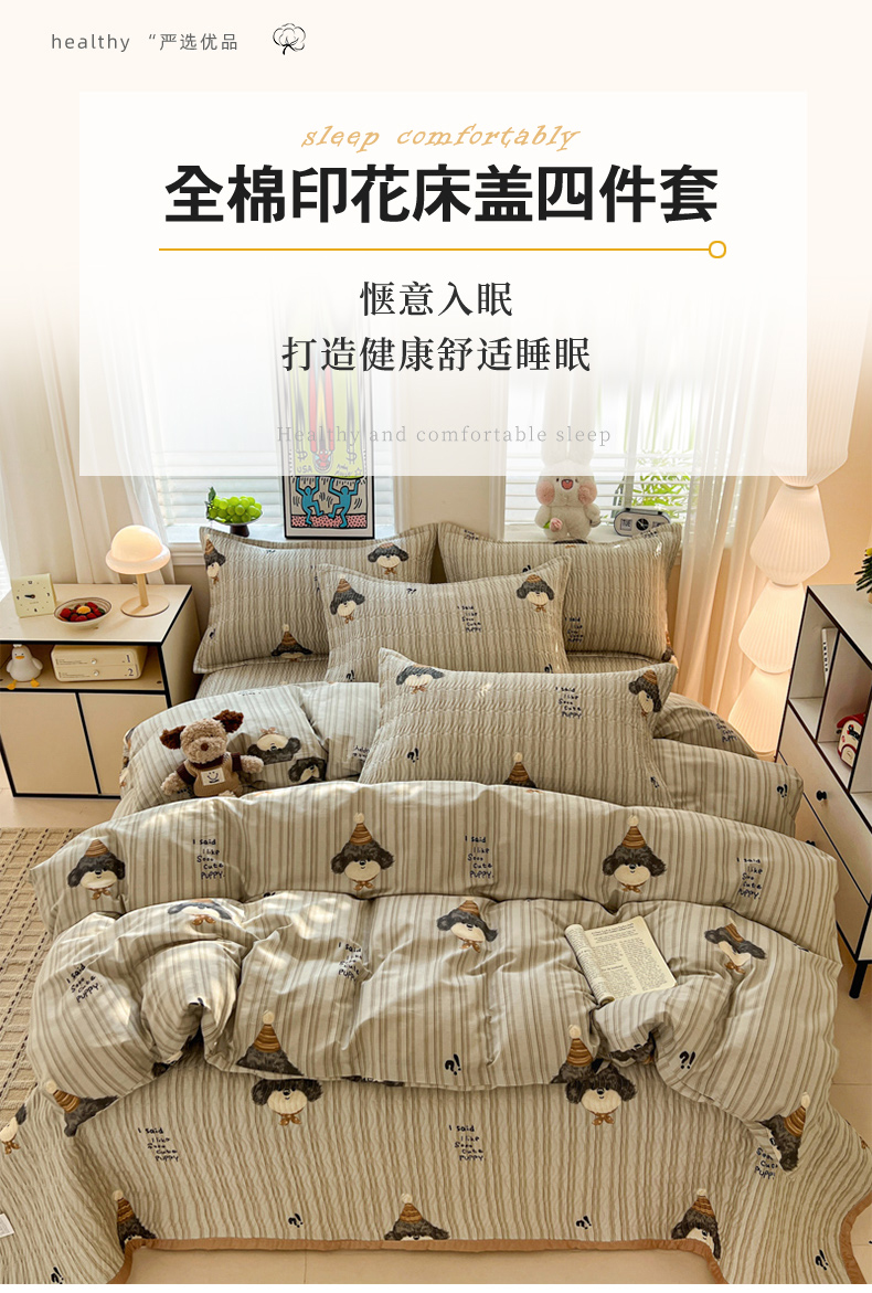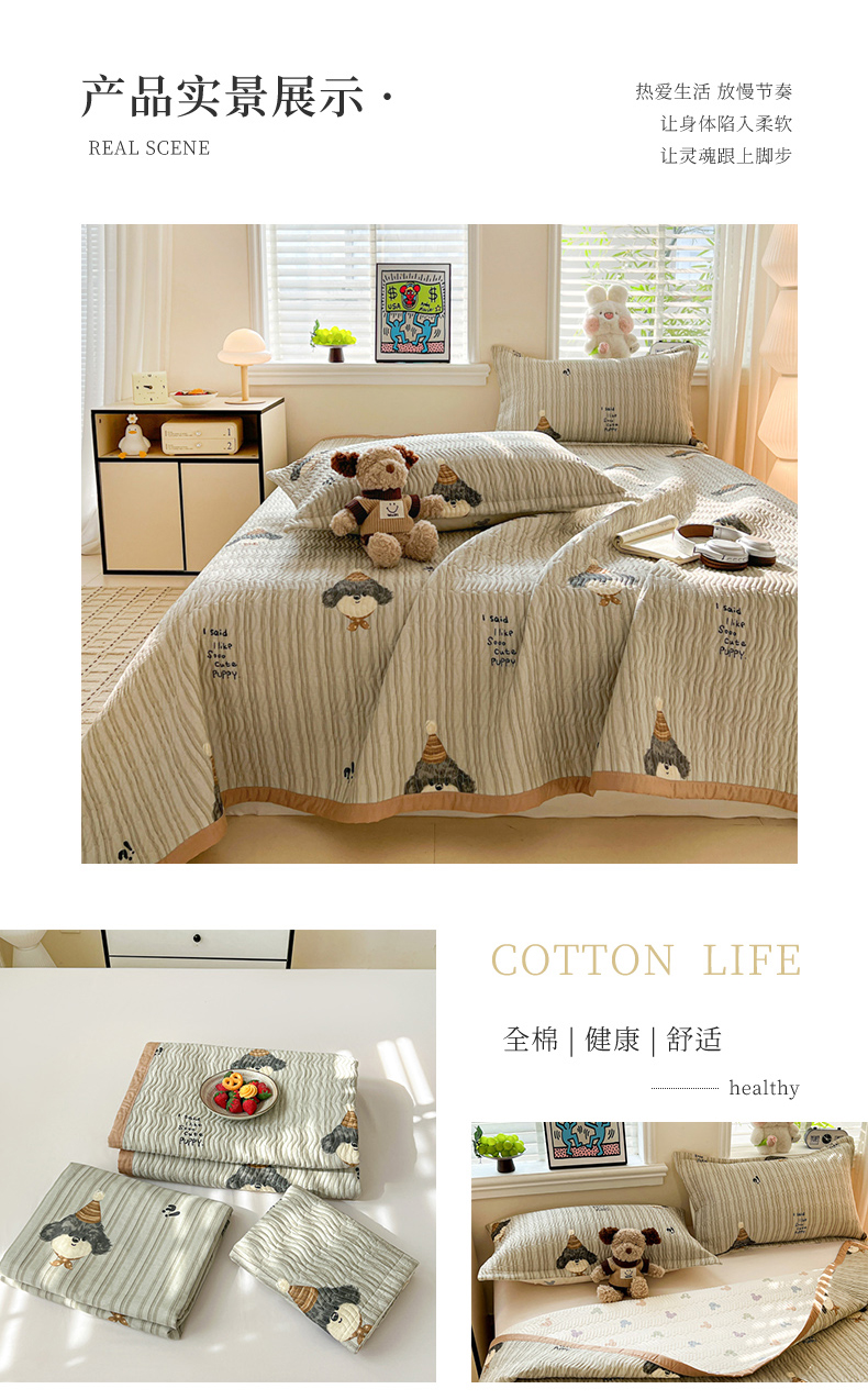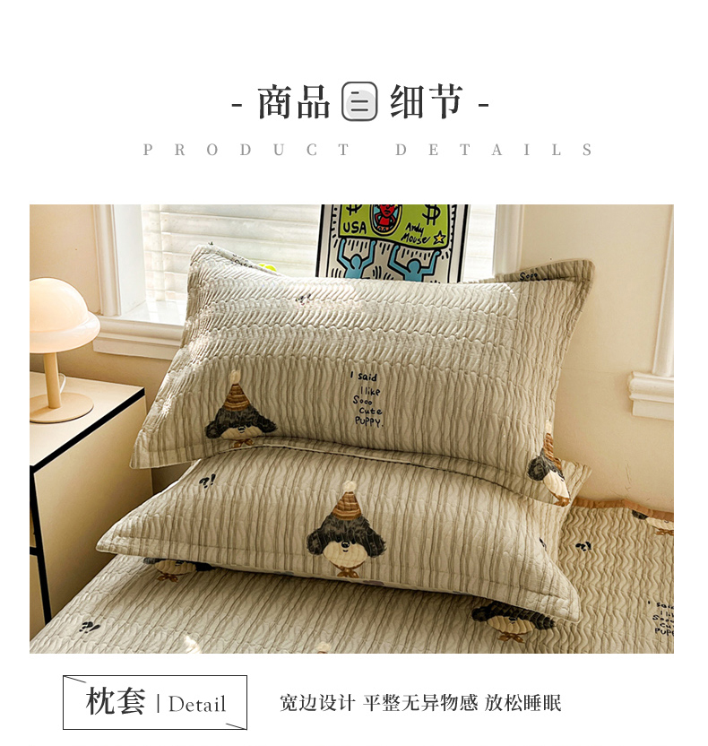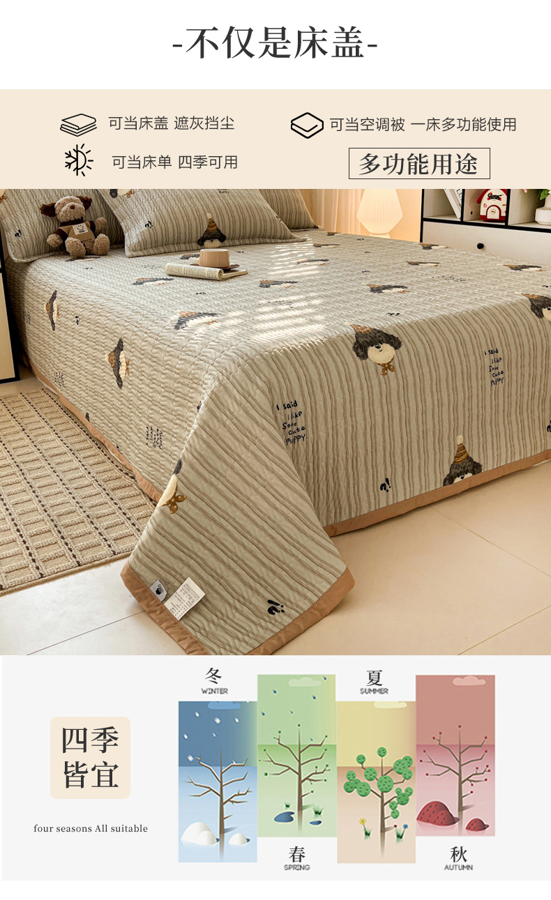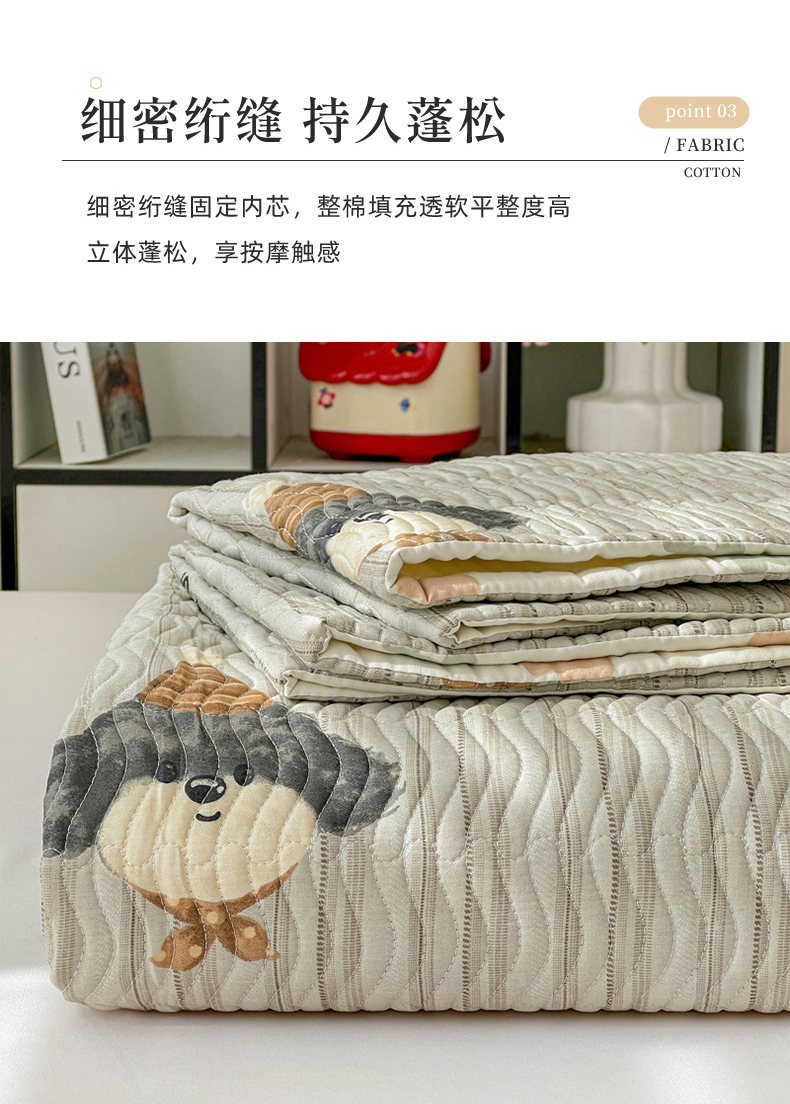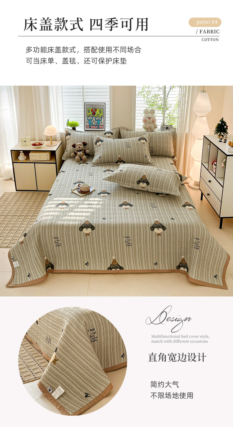 • 91家纺网 家纺一手货源 找家纺 梦精灵家纺 2026新款纯棉床盖单件全棉绗缝夹棉床单 四季通用榻榻米防滑学生宿舍单人被套枕套 帽子柯基