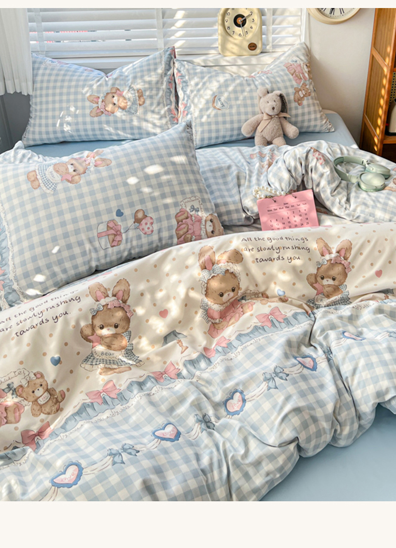 (总)朵朵家纺 2026新款高级感轻奢复古美拉德色系双层纱泡芙棉床品四件套加厚水洗双层纱软,紫苏,春风拂梦,粉红波点,花姿,蓝色泡芙狗,绿樱,马上有福,爱丽丝兔,马上有福2,漫野,木马拾光,暮光,奶芙兔,奶蓝甜结,青花瓷,清欢,素碟吟,晚棠,盐系格绊,知音咖,紫萝漫想,紫韵,醉玲珑