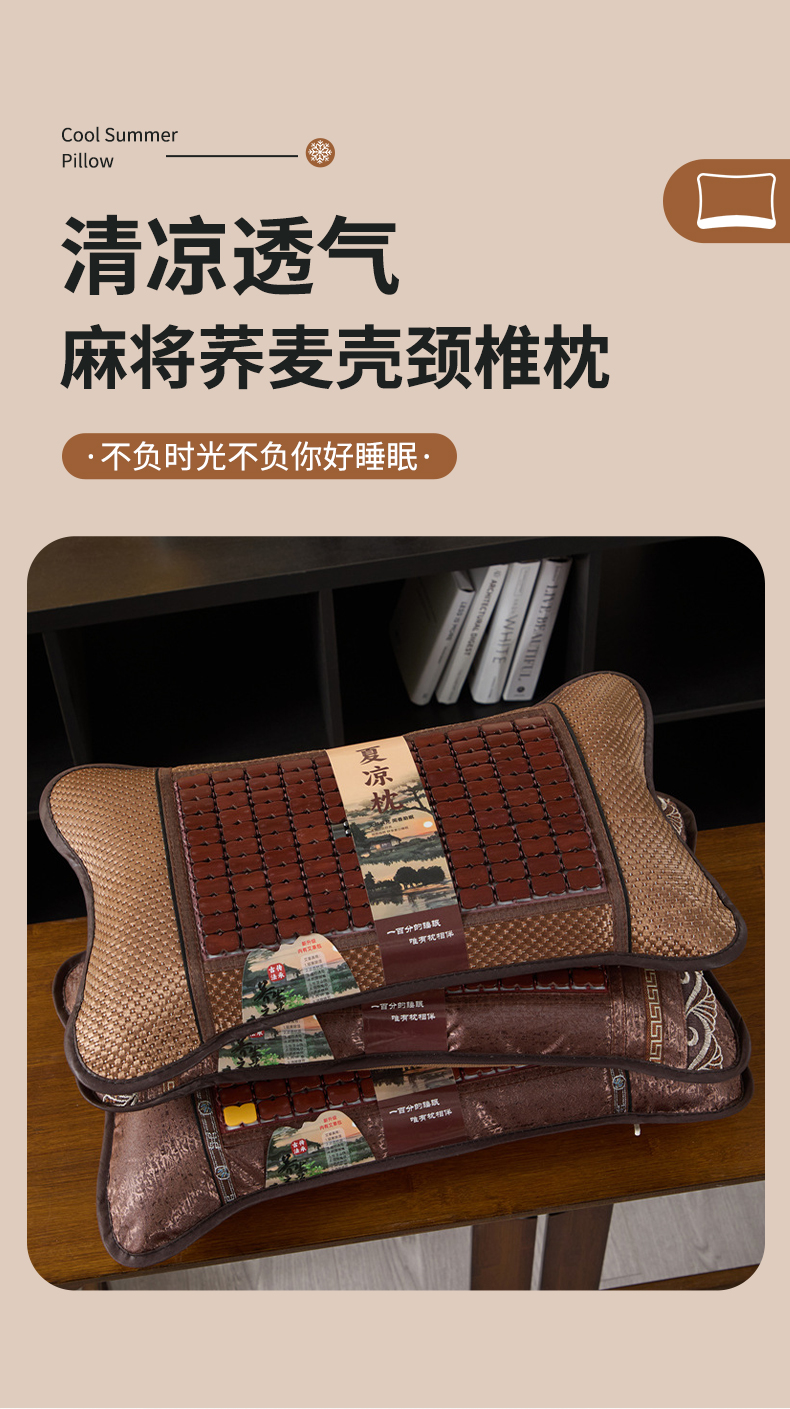 (总)仁宇枕业 2026新款天然竹席麻将凉枕夏季款竹席荞麦枕枕头枕芯,组合图(仅供展示不可下单),天然夏凉麻将凉席枕花边款,天然夏凉麻将凉席枕直角款
