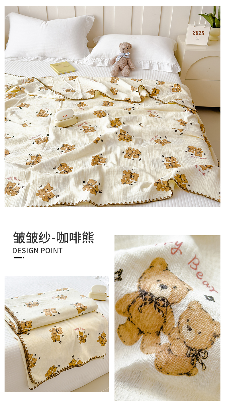 布凡家居 2026新款全棉纯棉双层纱布毯夏被毯盖毯双层纱浴巾毯 皱皱纱-蝴蝶结