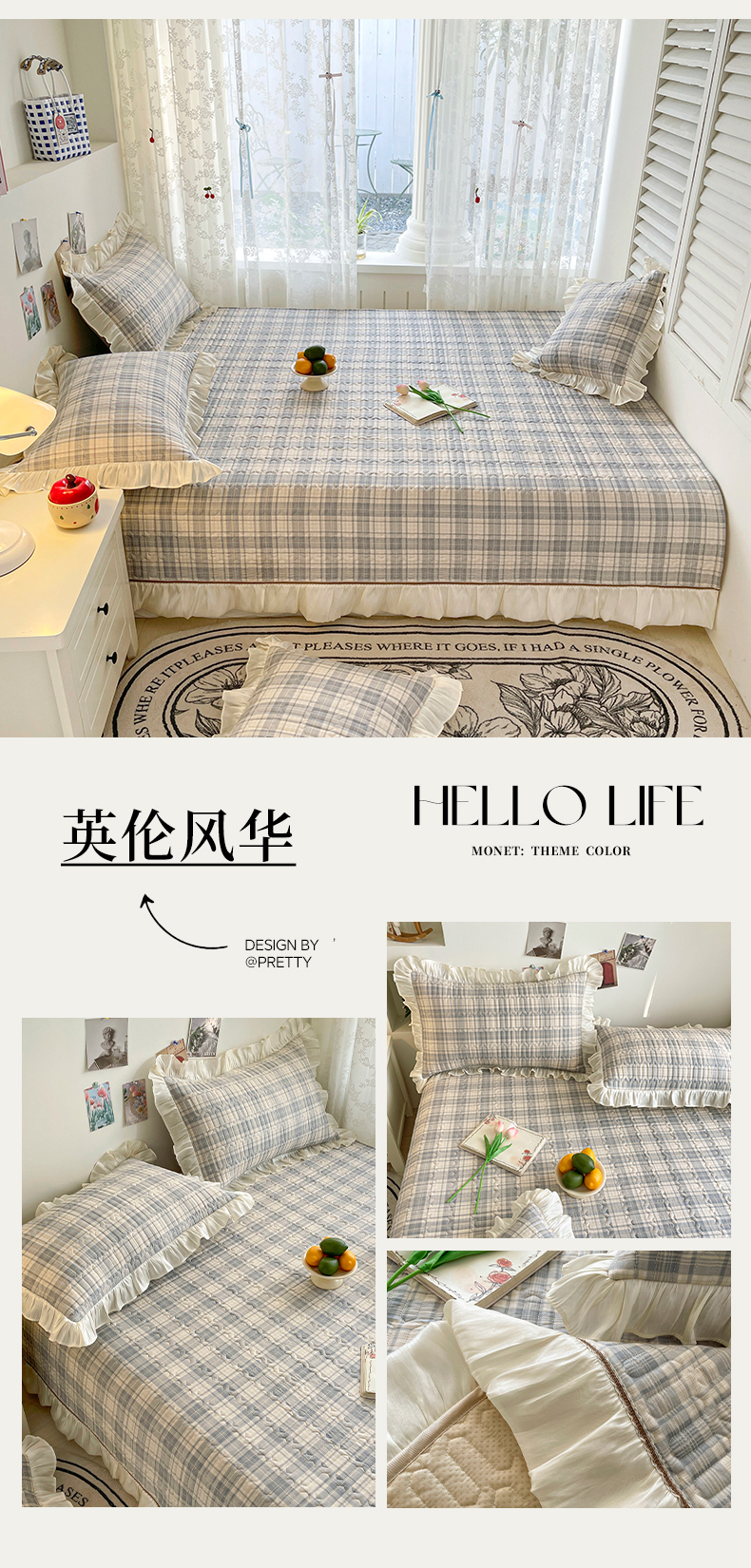 (总)美优兰 2026新款全棉13372法式花边床盖(含买家秀),艾莎,爱心格,蝶舞,风铃,花影,奶酪兔,青棠,清幽,叶脉,组合图