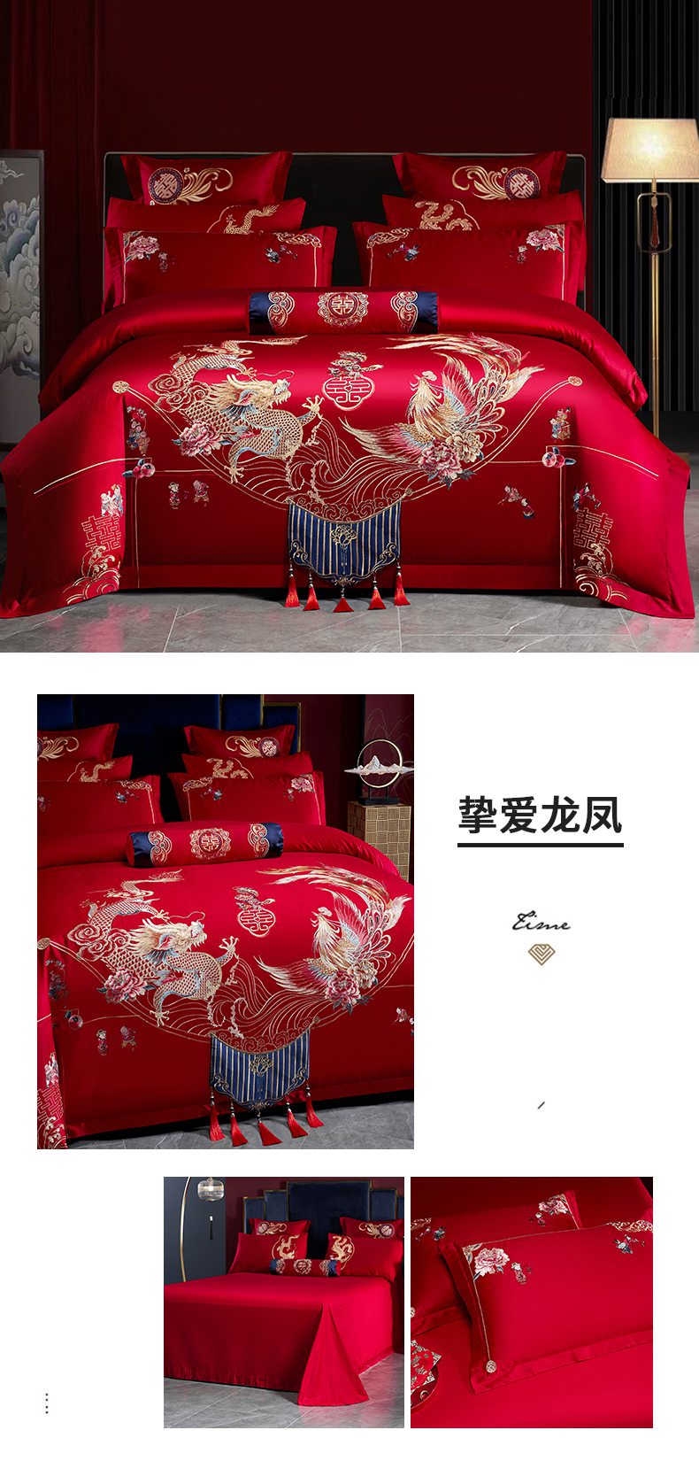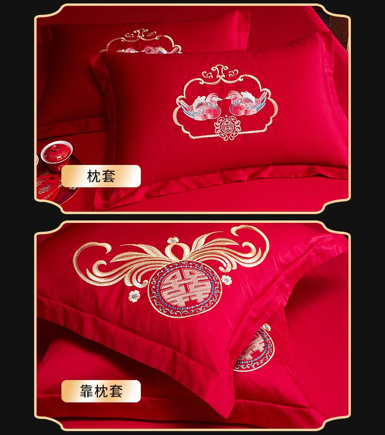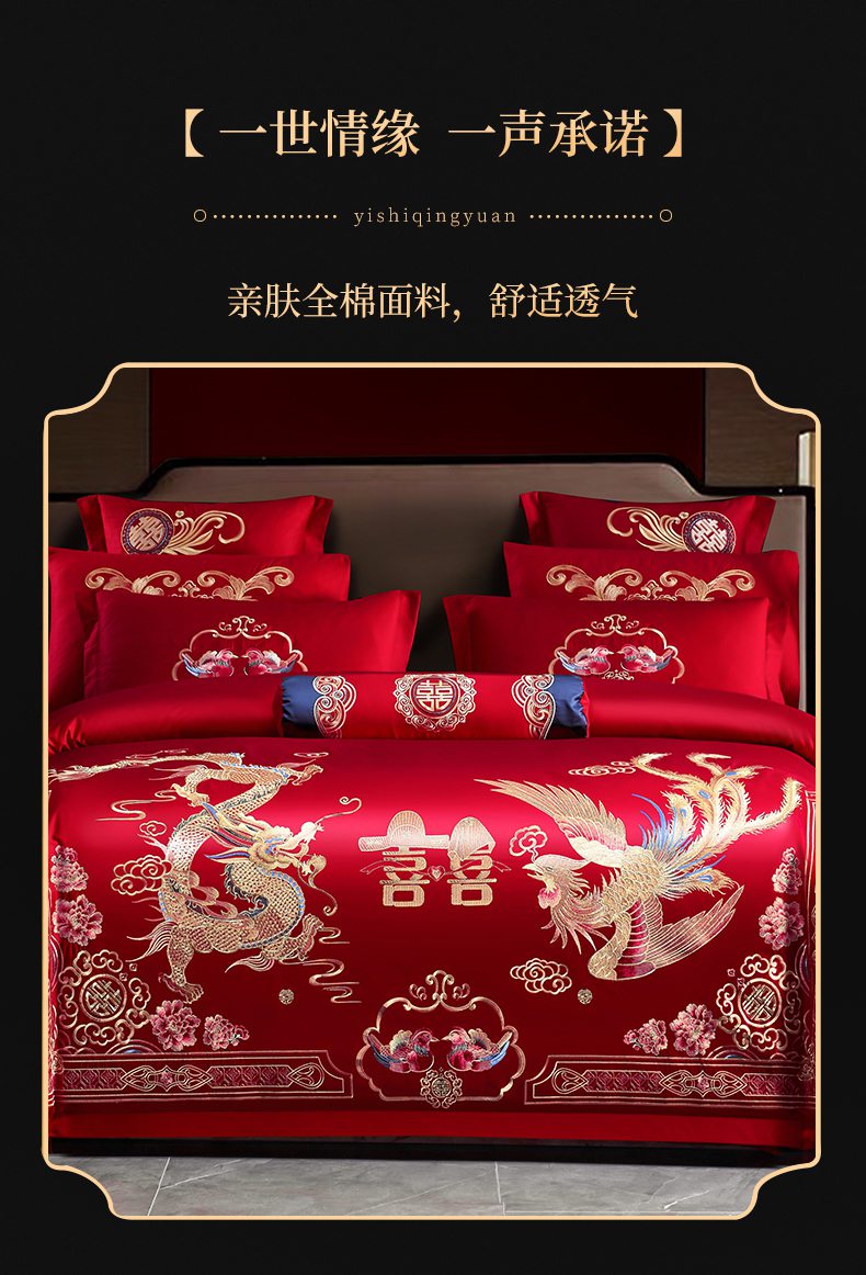 当前位置: 91家纺网 > 商品网购 > 床品套件 > 四件套 > 婚庆四件套 > 慕她家纺 2026慕她大花工艺款全棉纯棉婚庆四件套大红色刺绣结婚床上用品 鸳鸯贺喜