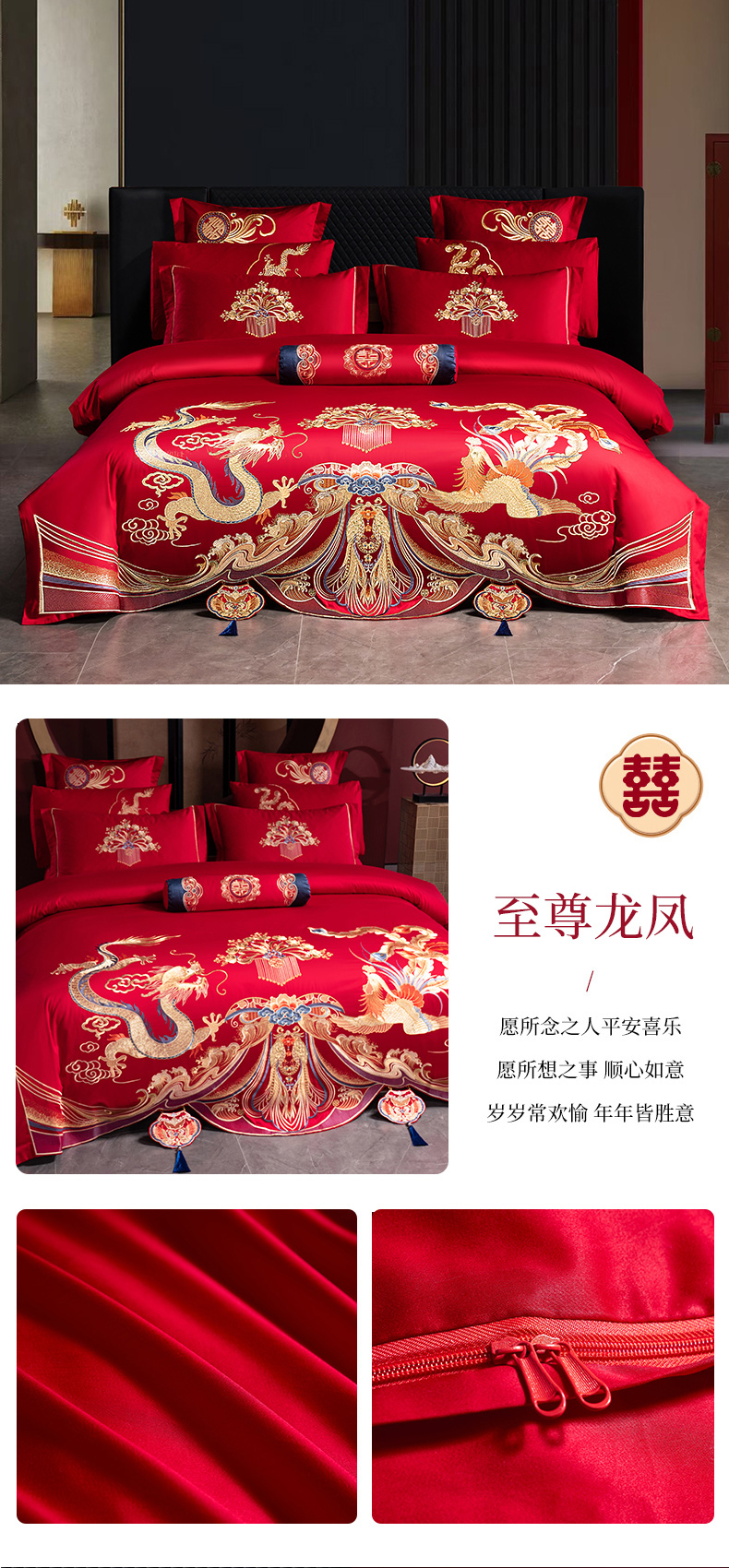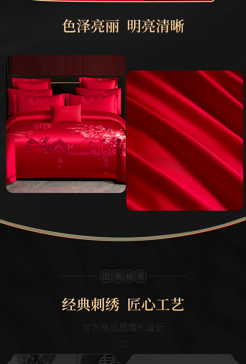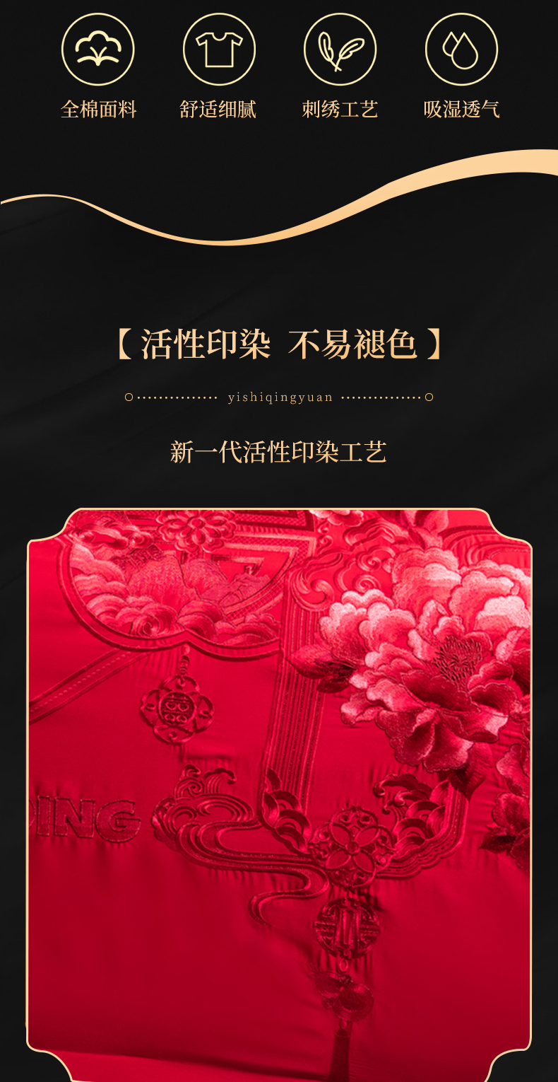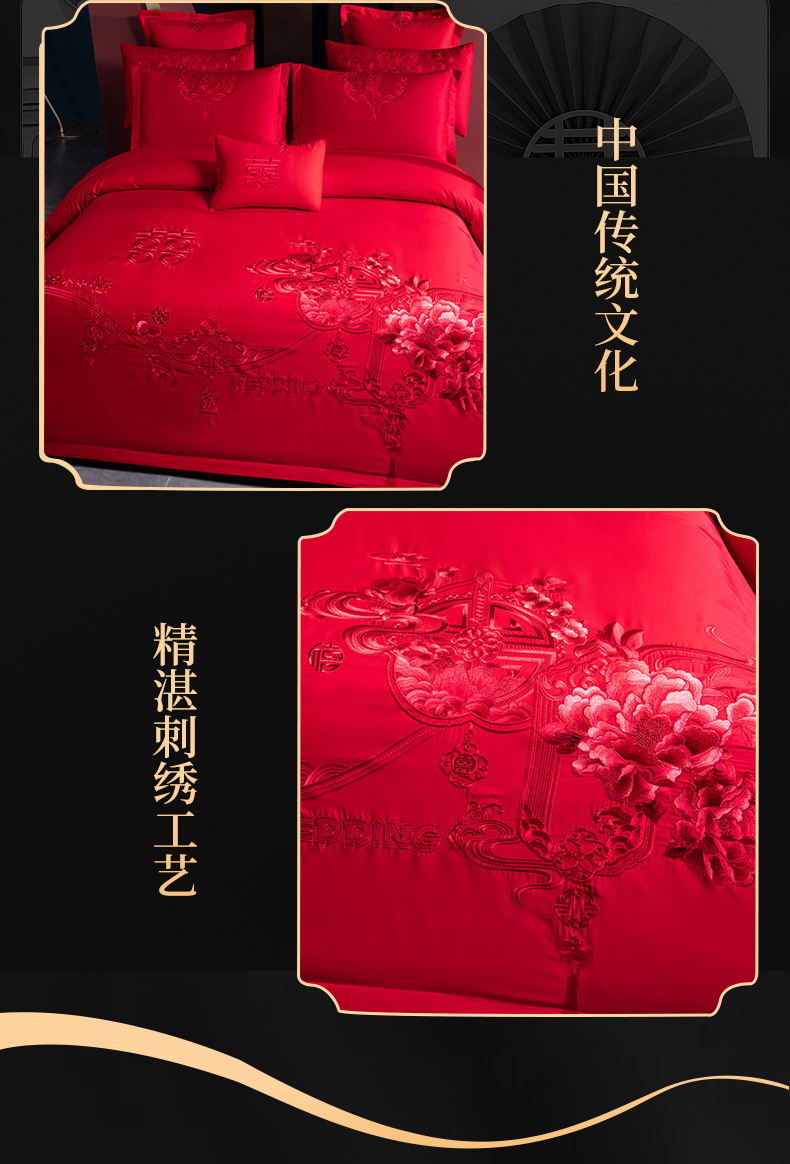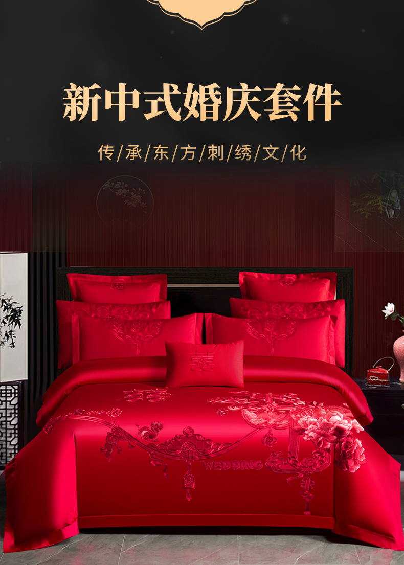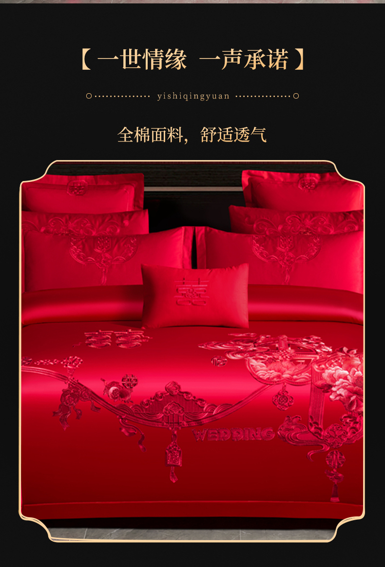 当前位置: 91家纺网 > 商品网购 > 床品套件 > 四件套 > 婚庆四件套 > 慕她家纺 2026慕她大花工艺款全棉纯棉婚庆四件套大红色刺绣结婚床上用品 诗韵牡丹