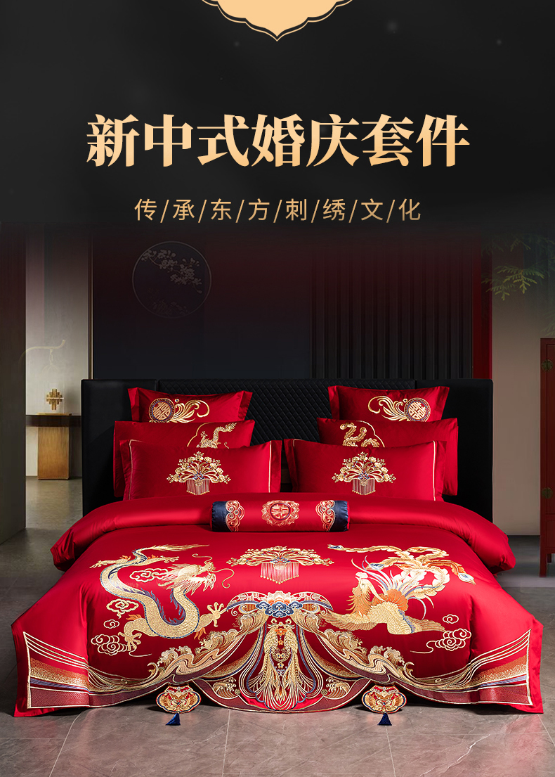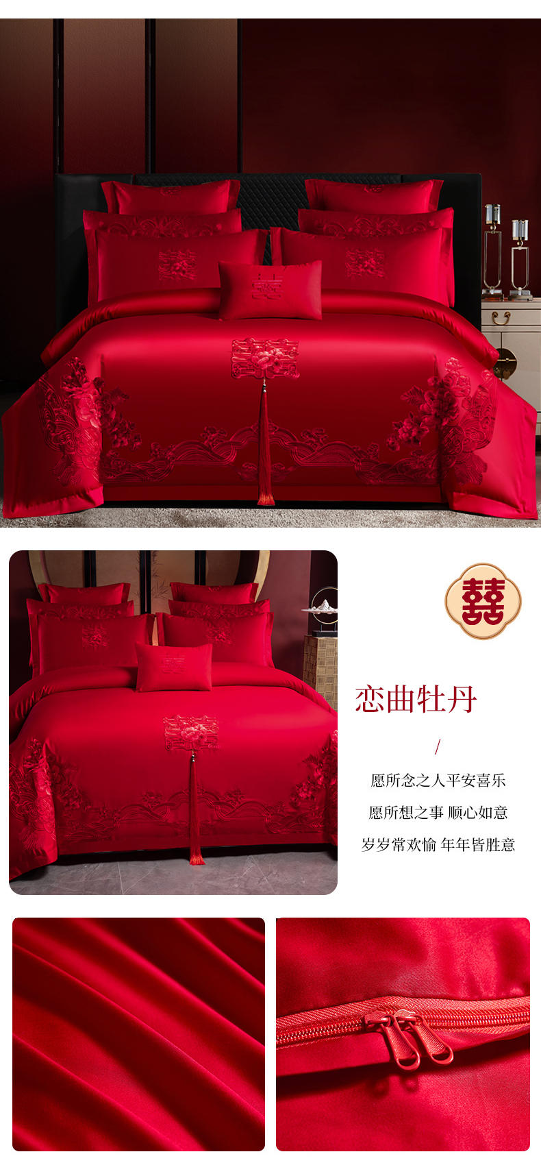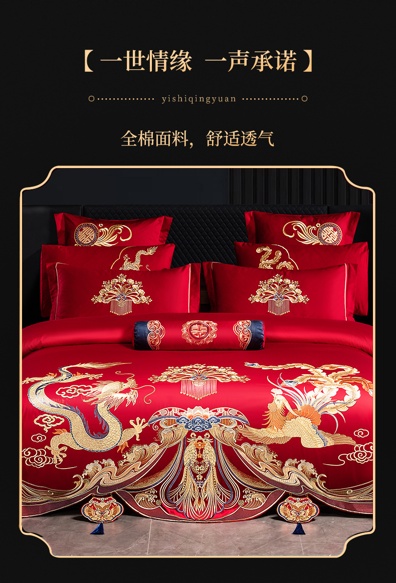 当前位置: 91家纺网 > 商品网购 > 床品套件 > 四件套 > 婚庆四件套 > 慕她家纺 2026慕她大花工艺款全棉纯棉婚庆四件套大红色刺绣结婚床上用品 至尊龙凤