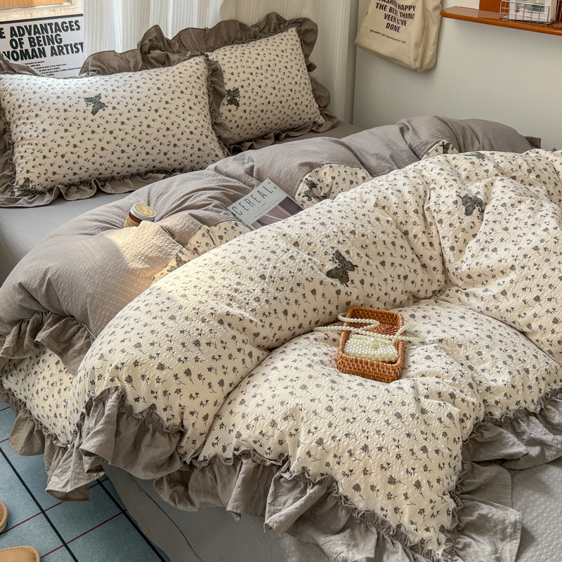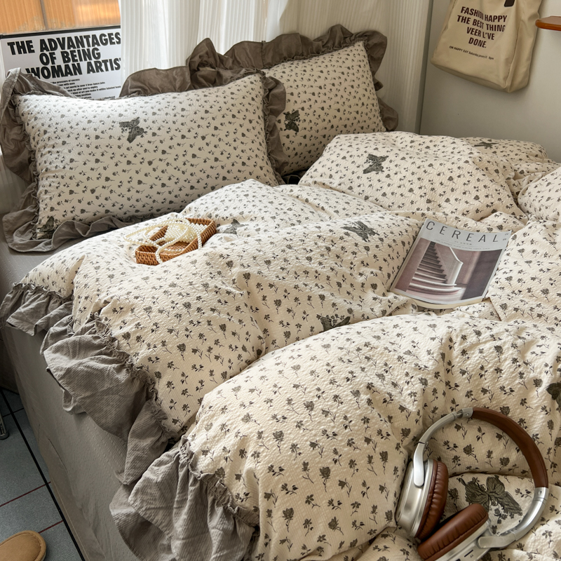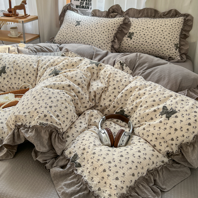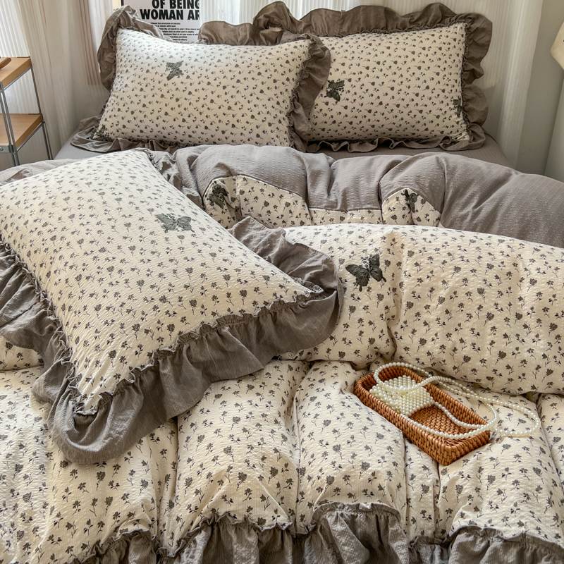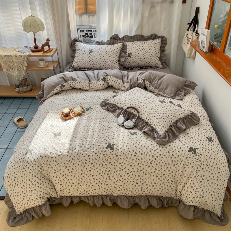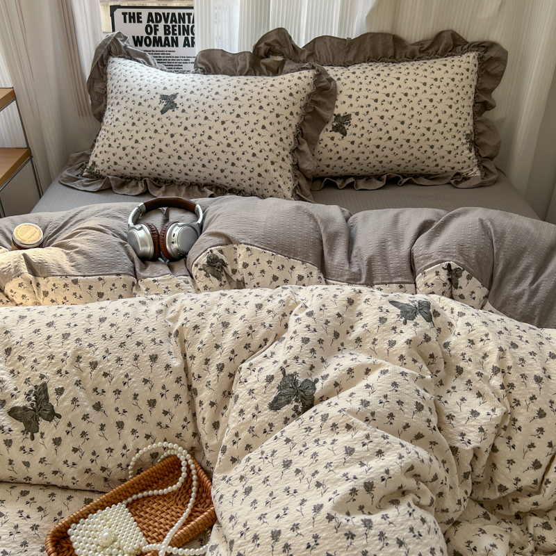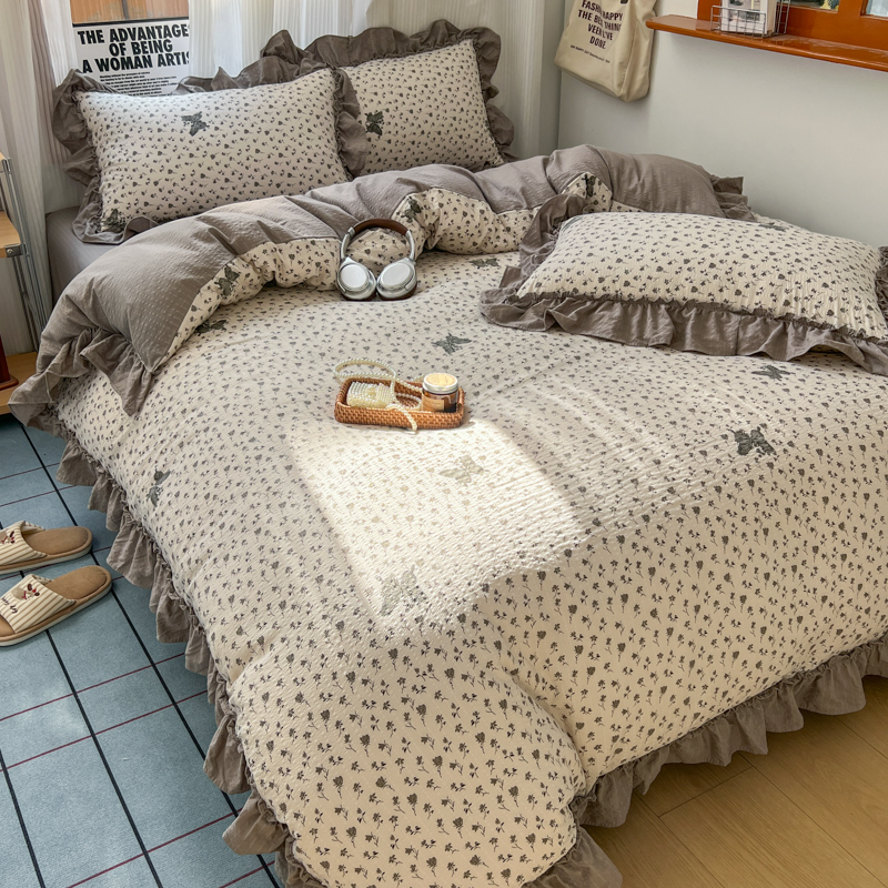 当前位置: 91家纺网 > 商品网购 > 床品套件 > 四件套 > 化纤活性四件套 > 2026新款泡芙纱花边四件套 碟舞