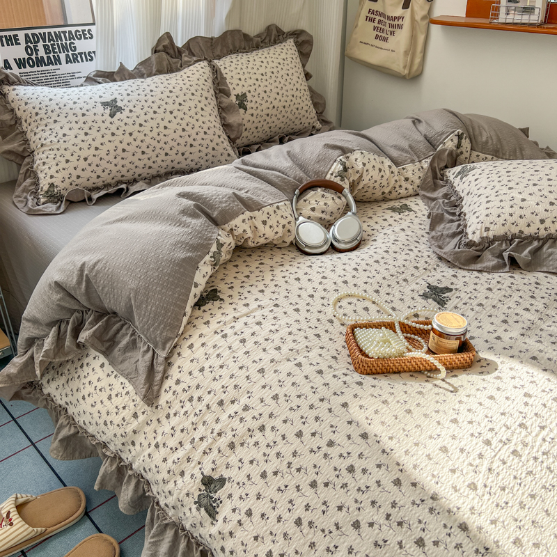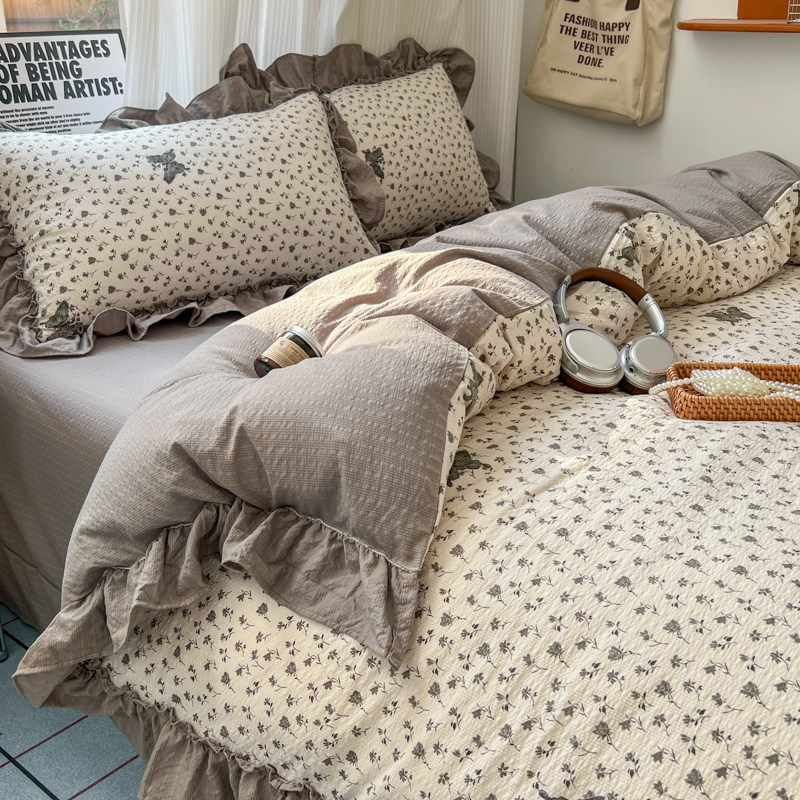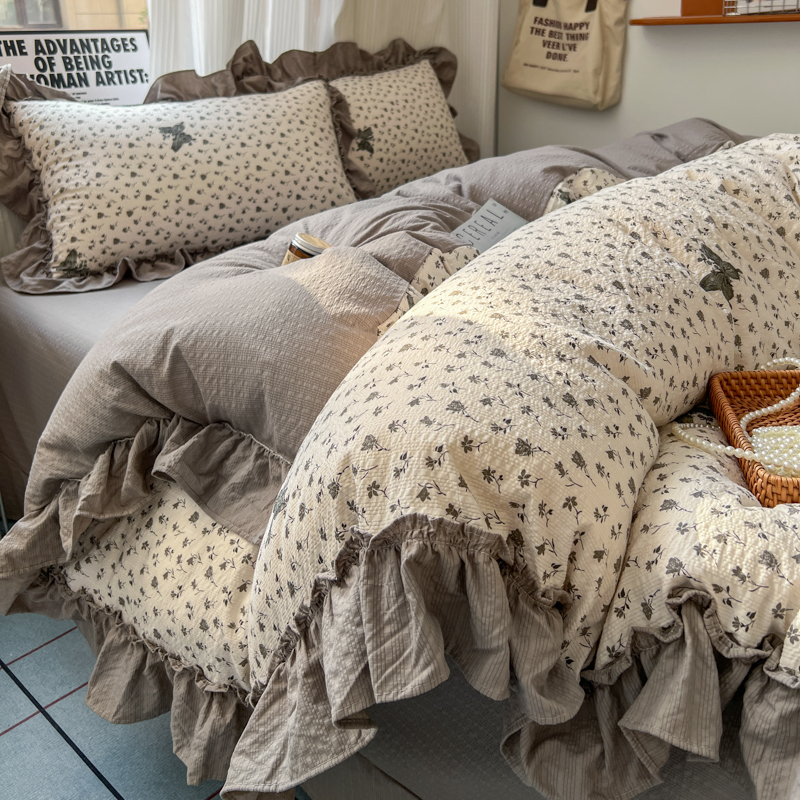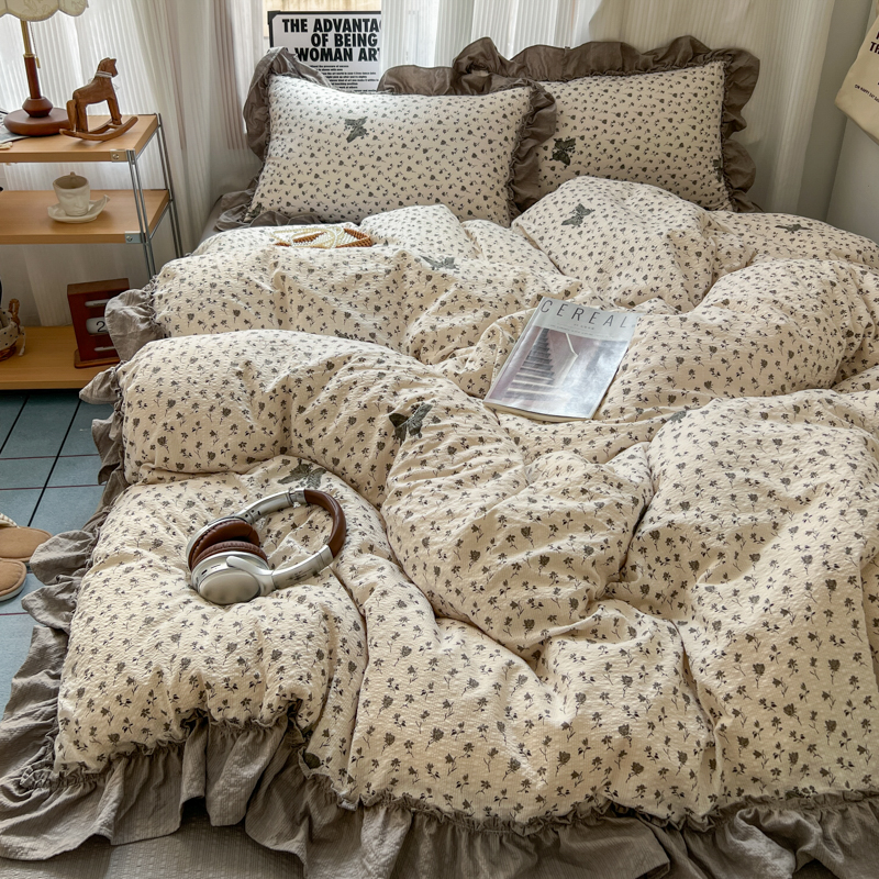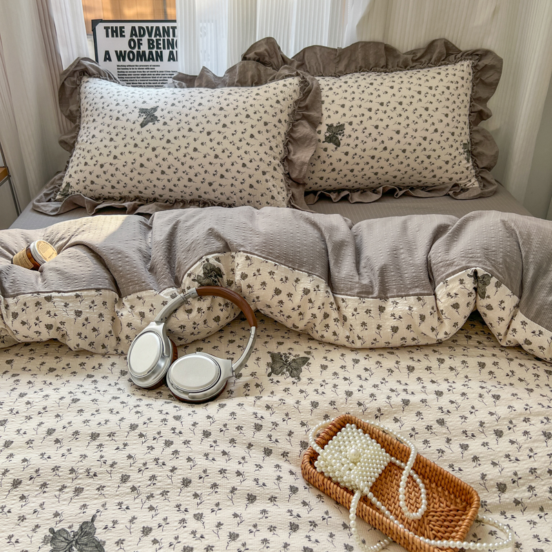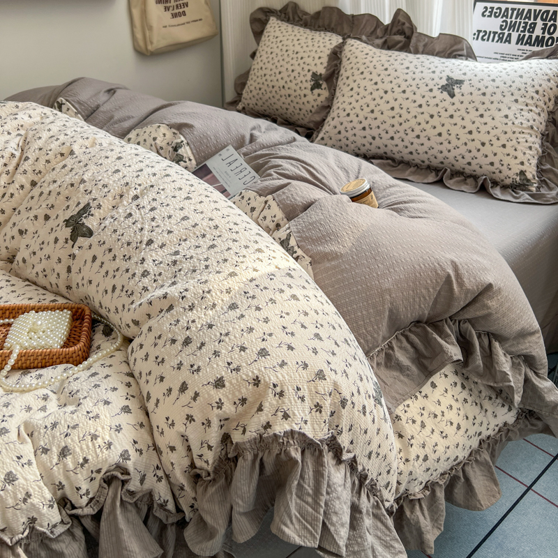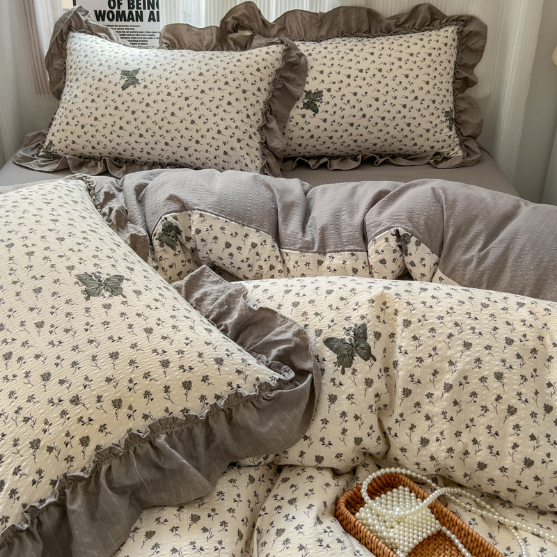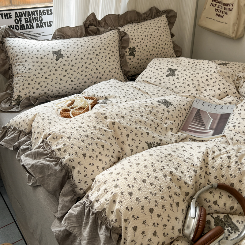 当前位置: 91家纺网 > 商品网购 > 床品套件 > 四件套 > 化纤活性四件套 > 2026新款泡芙纱花边四件套 碟舞
