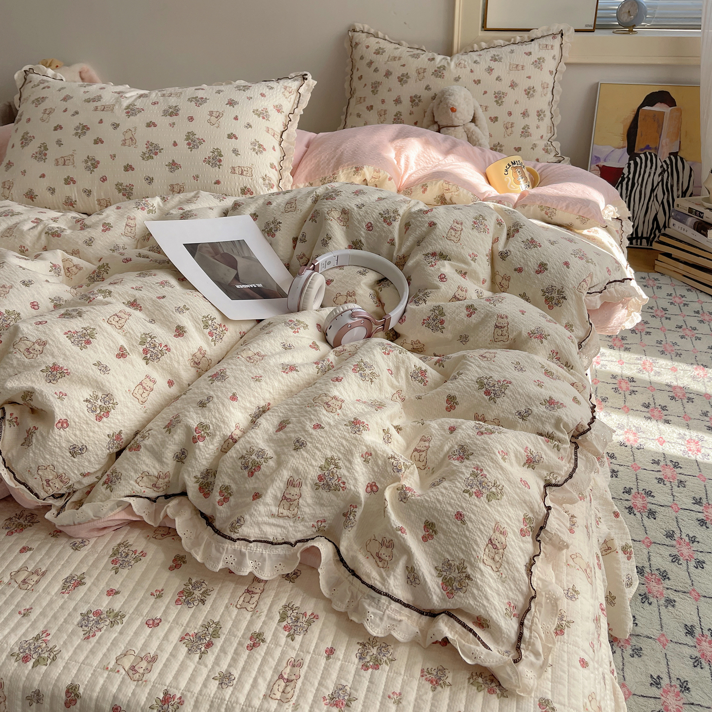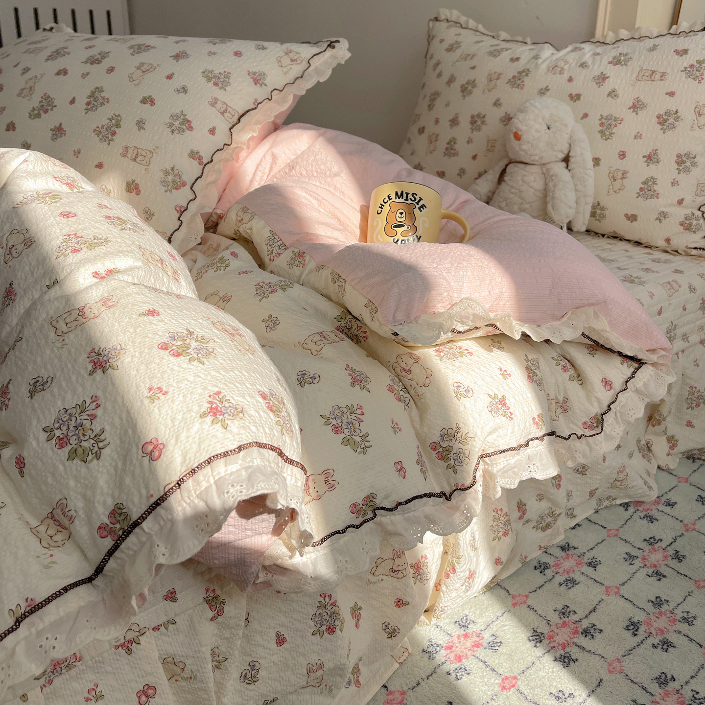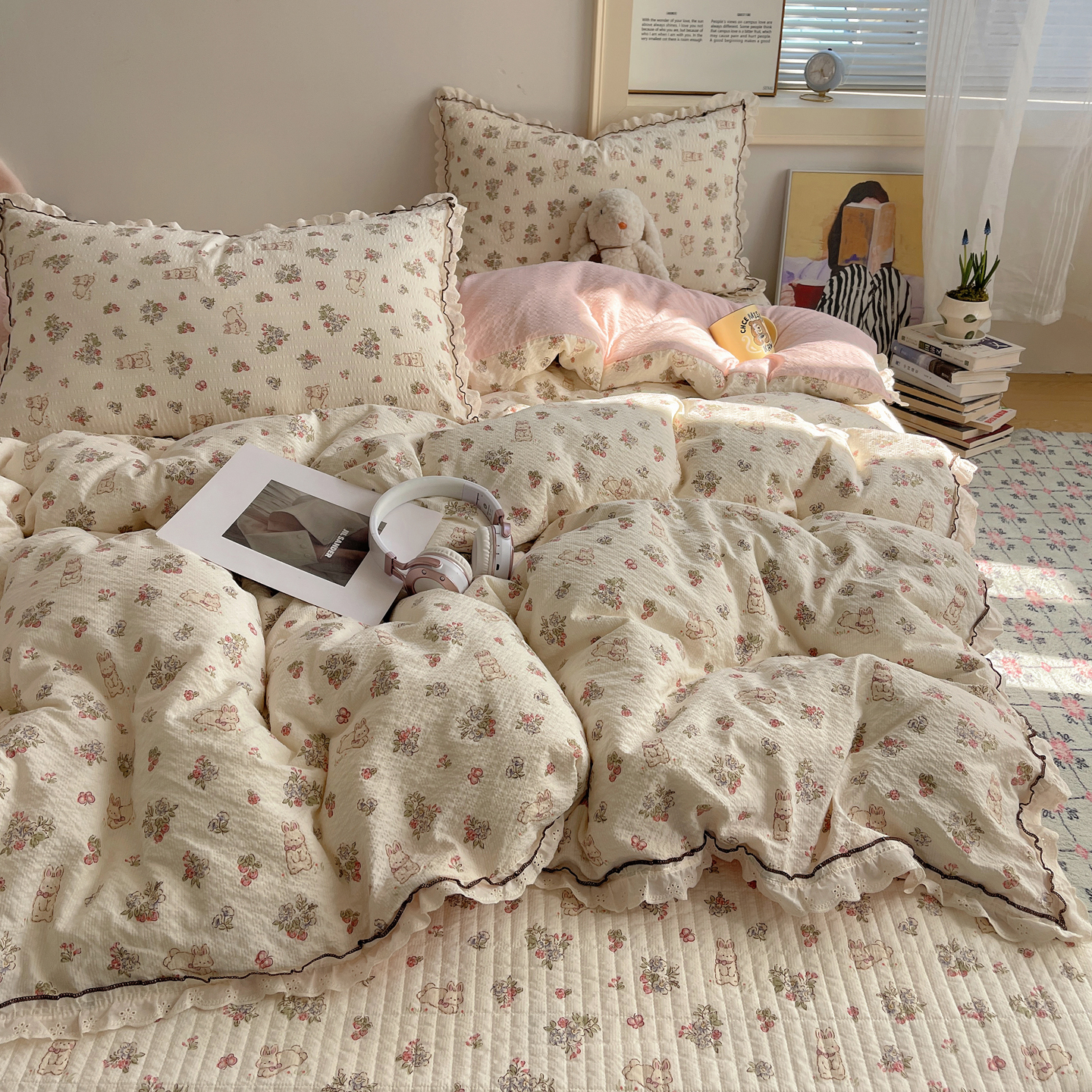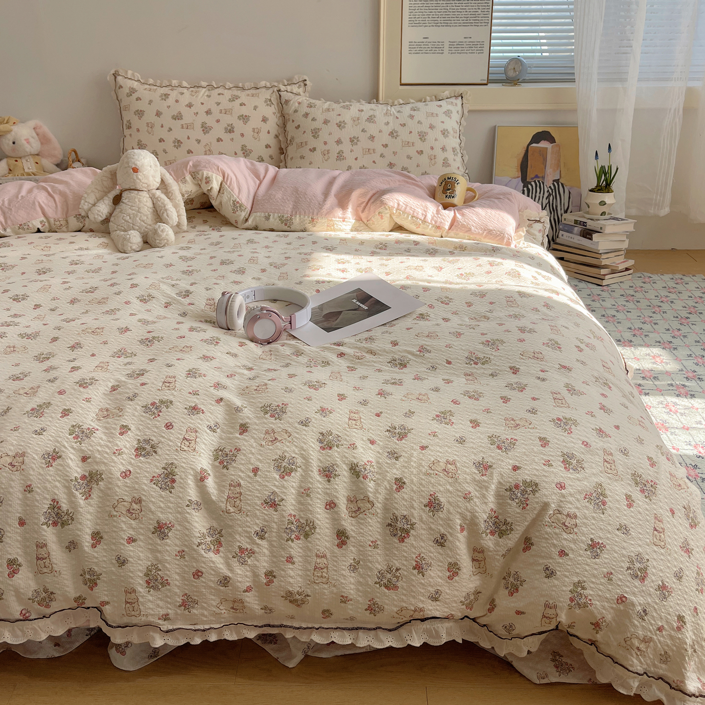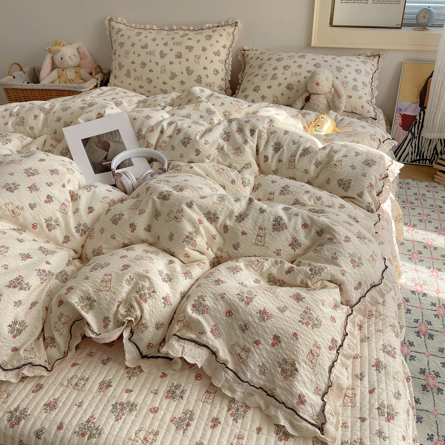当前位置: 91家纺网 > 商品网购 > 床上用品 > 床盖 > 2026新款泡芙纱床盖四件套 甜甜兔