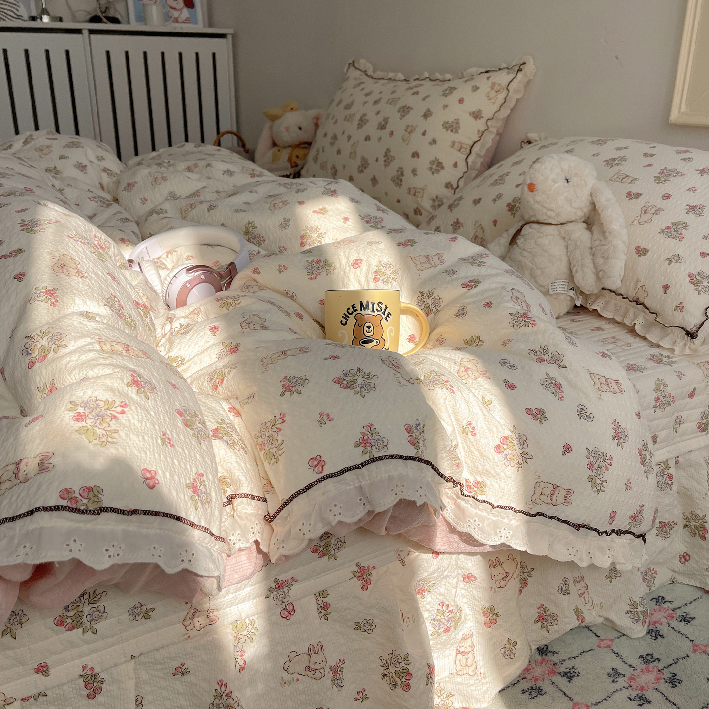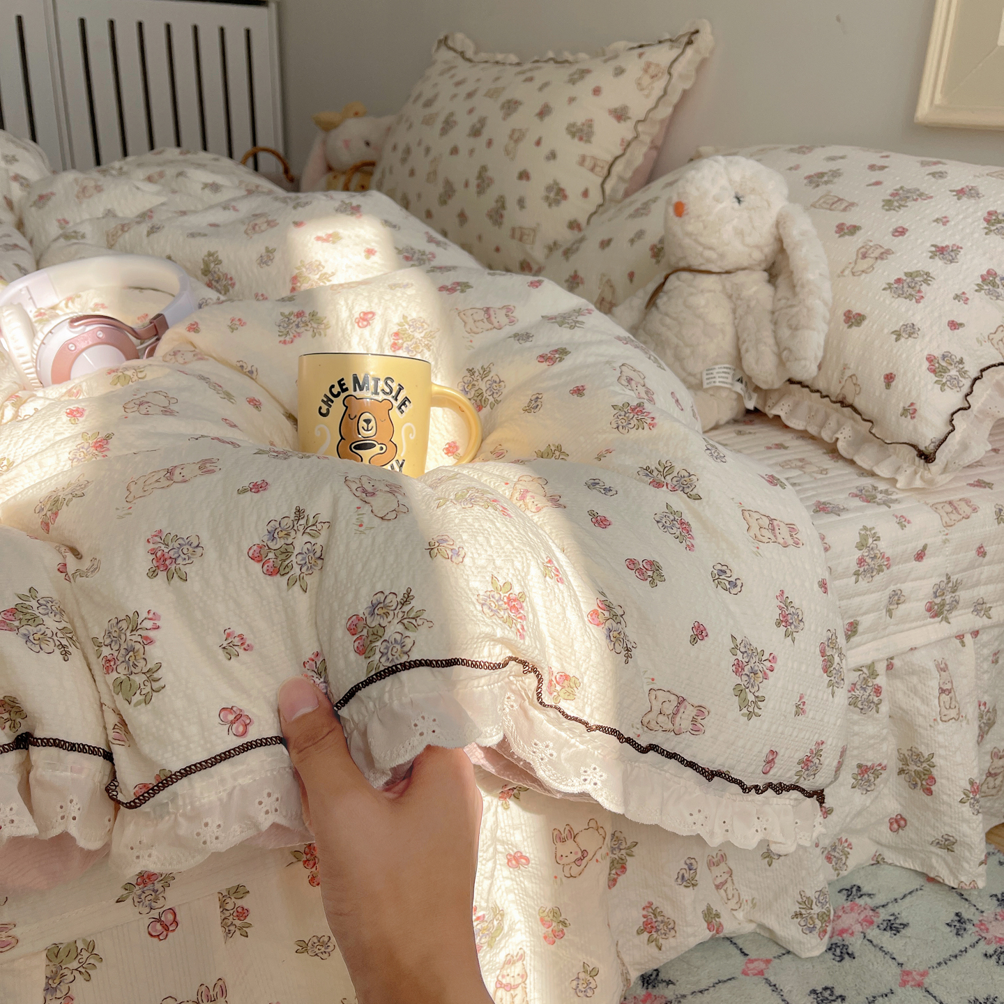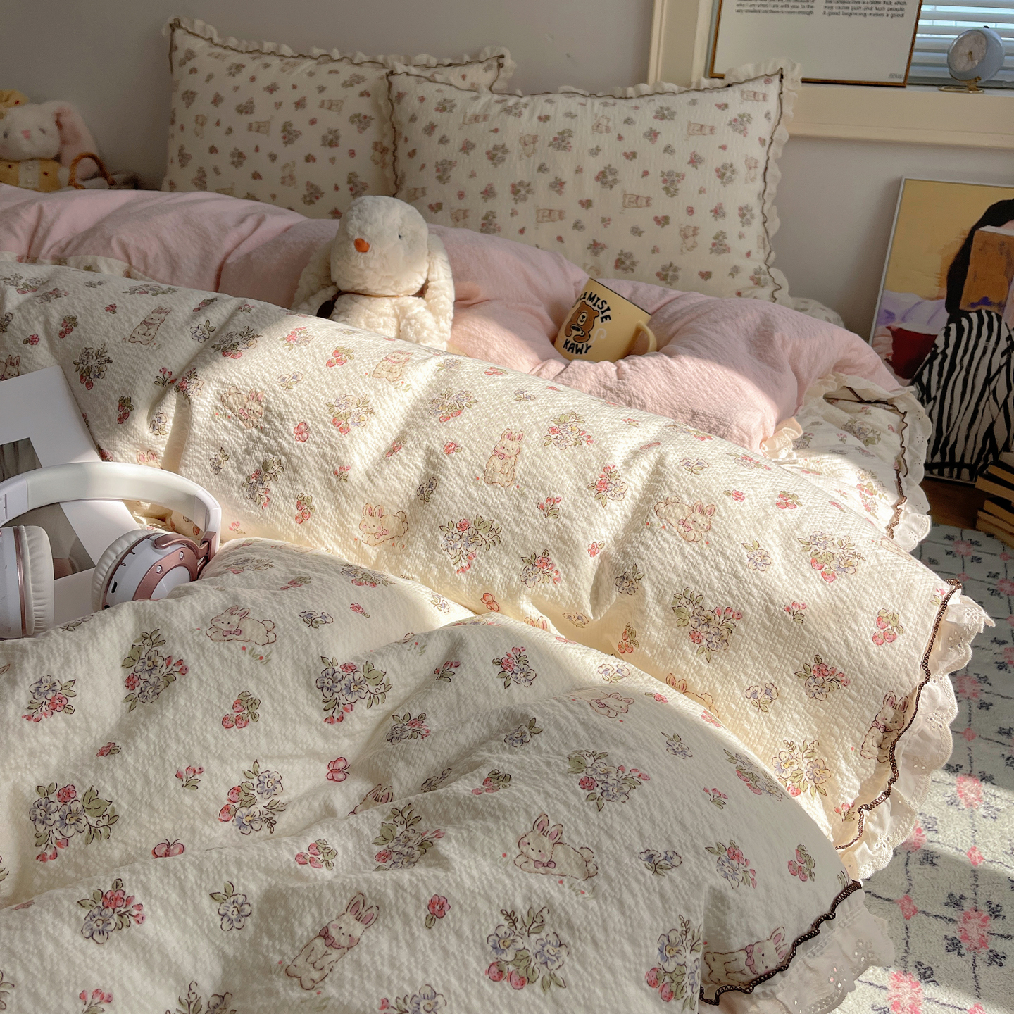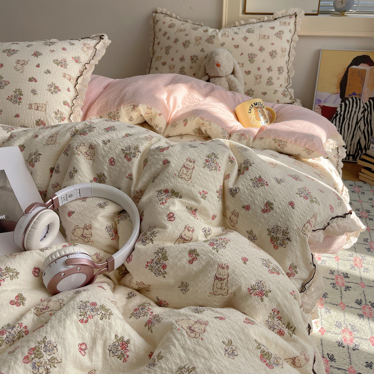 当前位置: 91家纺网 > 商品网购 > 床上用品 > 床盖 > 2026新款泡芙纱床盖四件套 甜甜兔