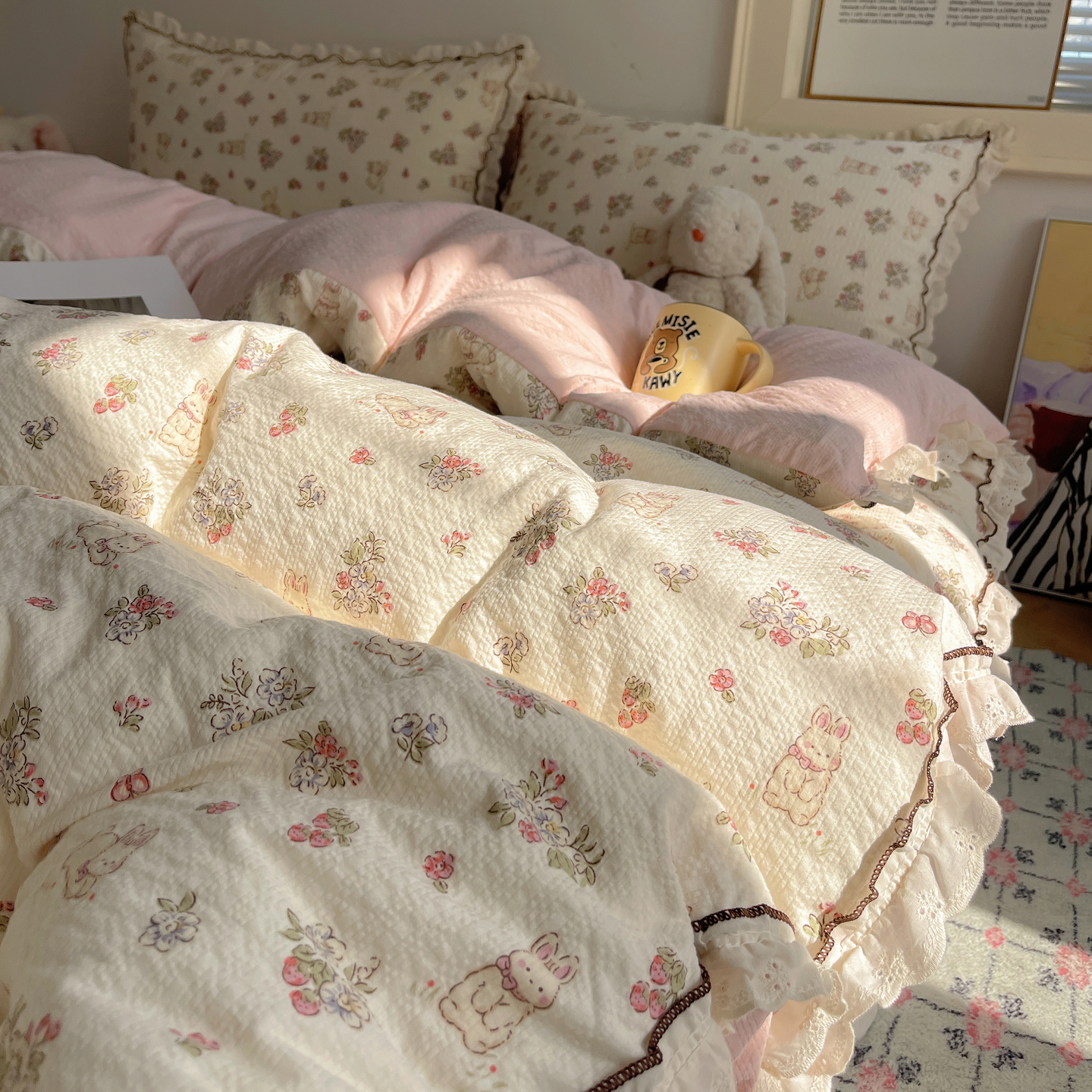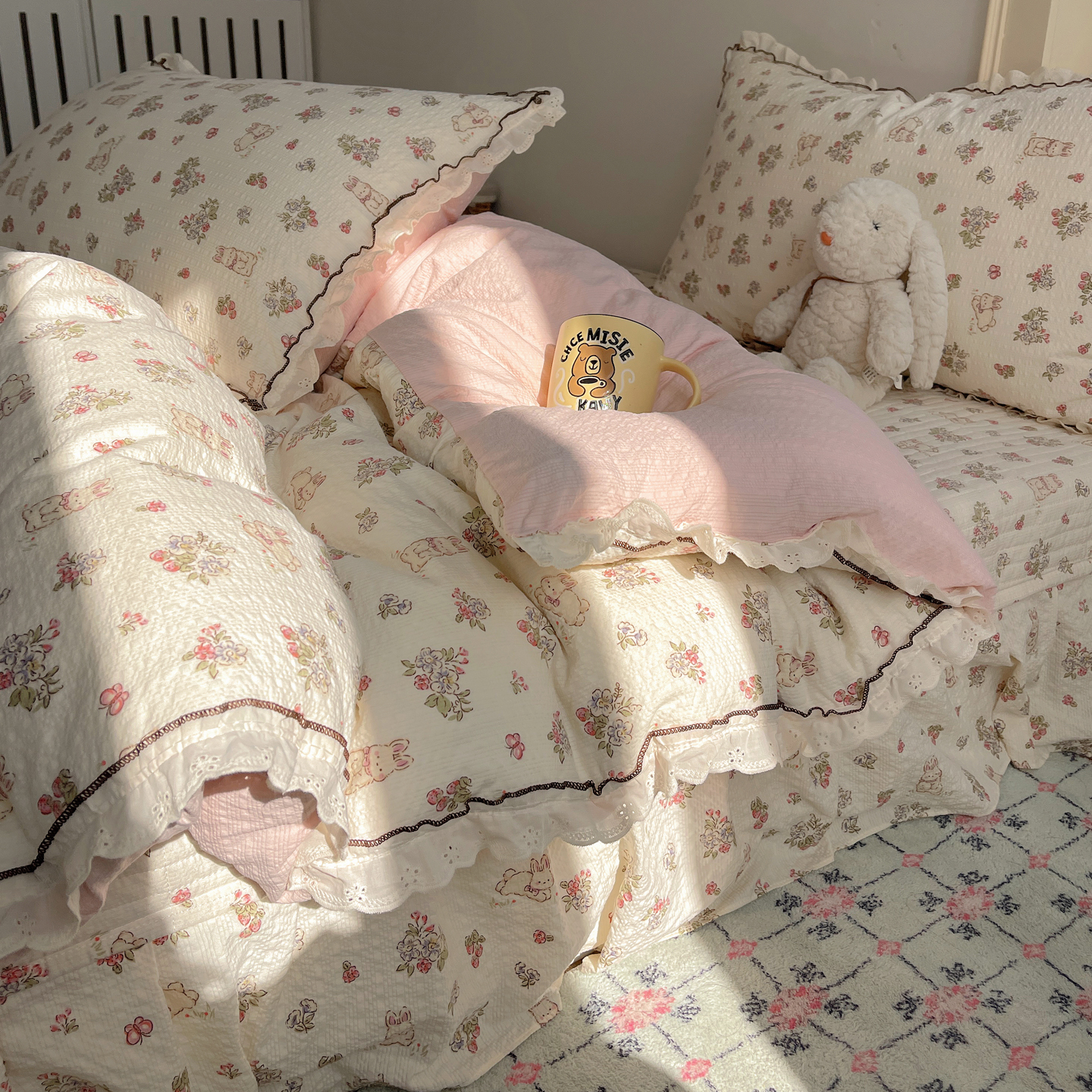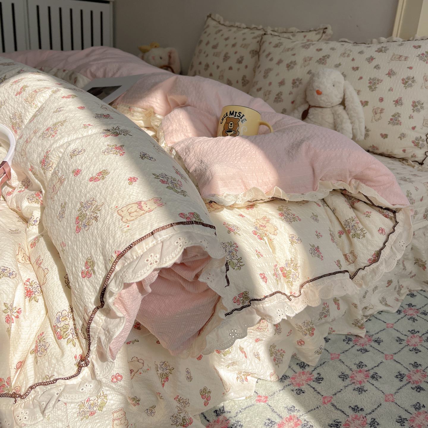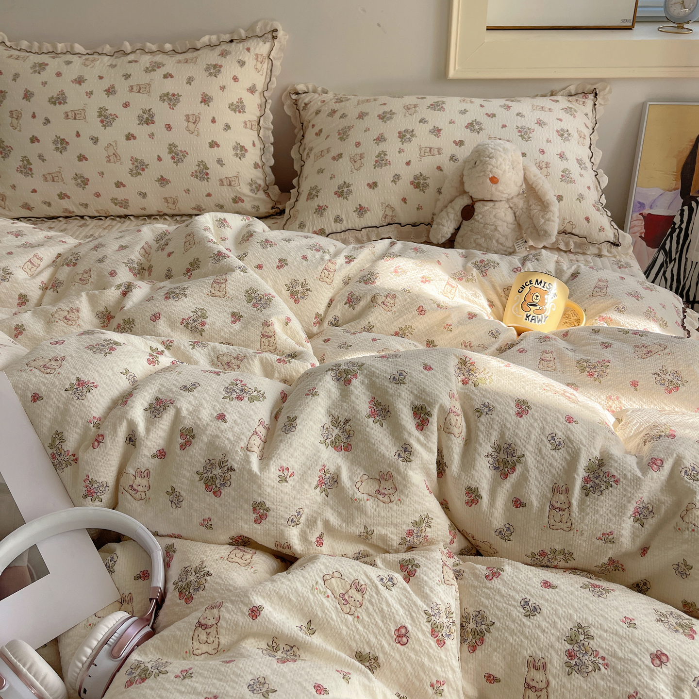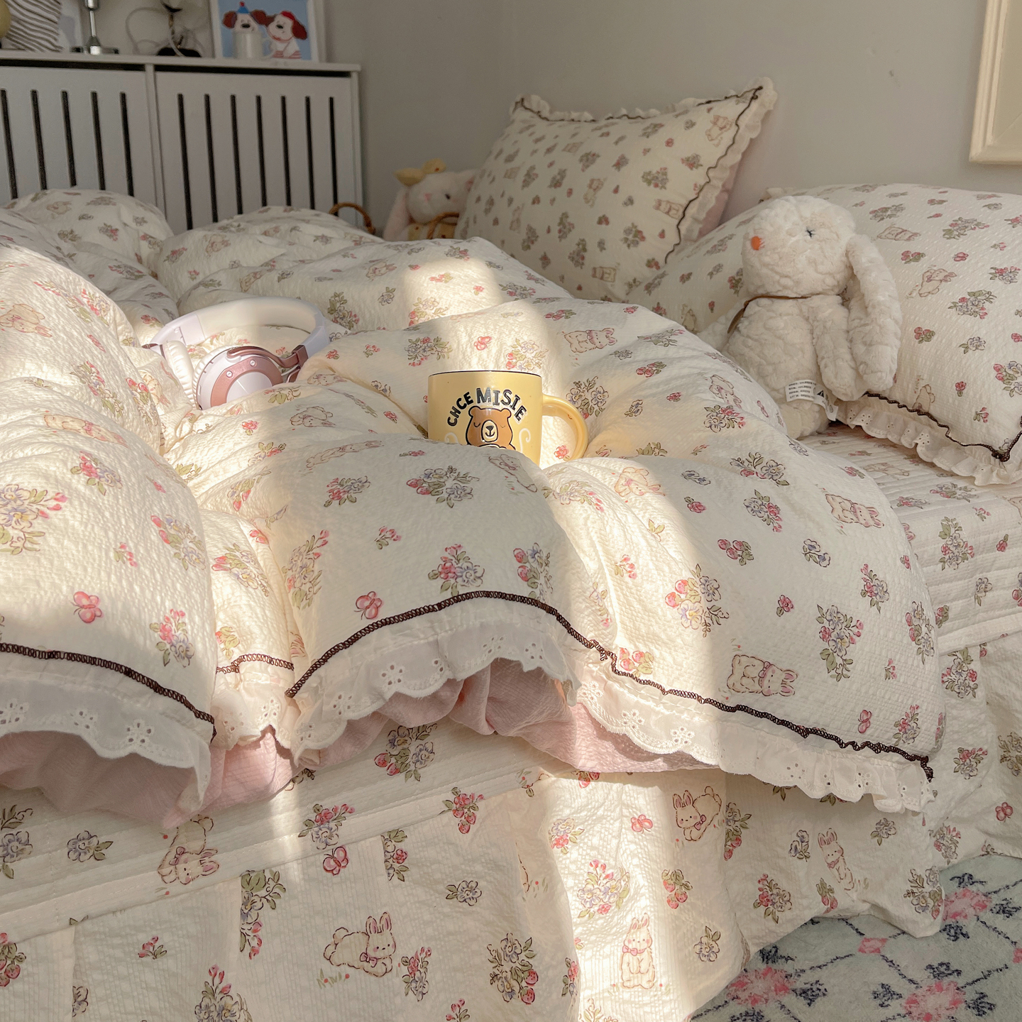 当前位置: 91家纺网 > 商品网购 > 床上用品 > 床盖 > 2026新款泡芙纱床盖四件套 甜甜兔