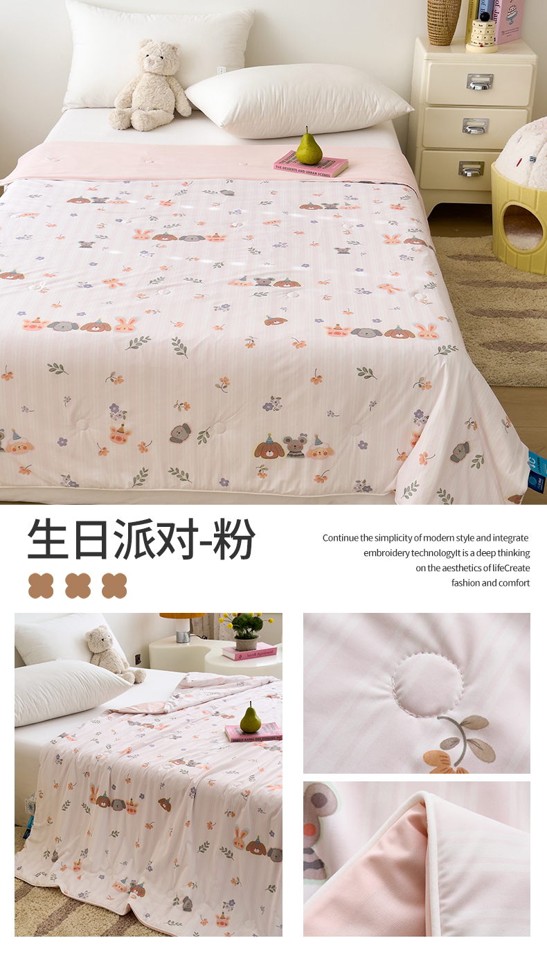 • 91家纺网 家纺一手货源 找家纺 岚司羽 2026新款卡通锦氨凉感夏被系列 萌宠派对 -粉
