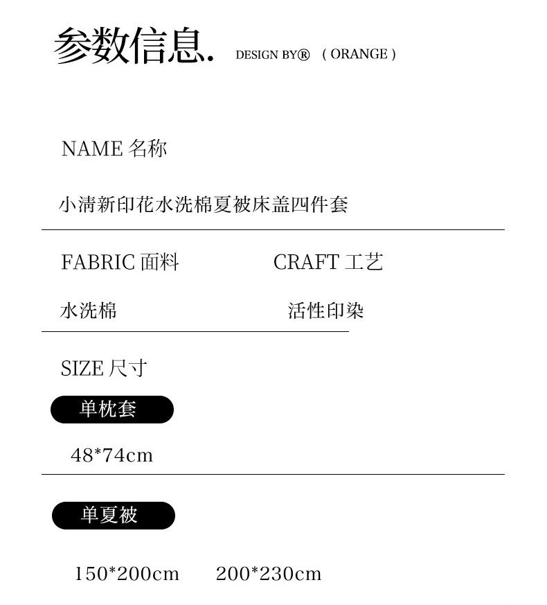 商品名称:(总)慕澄家纺 2026新款小清新印花水洗棉床盖夏被四件套