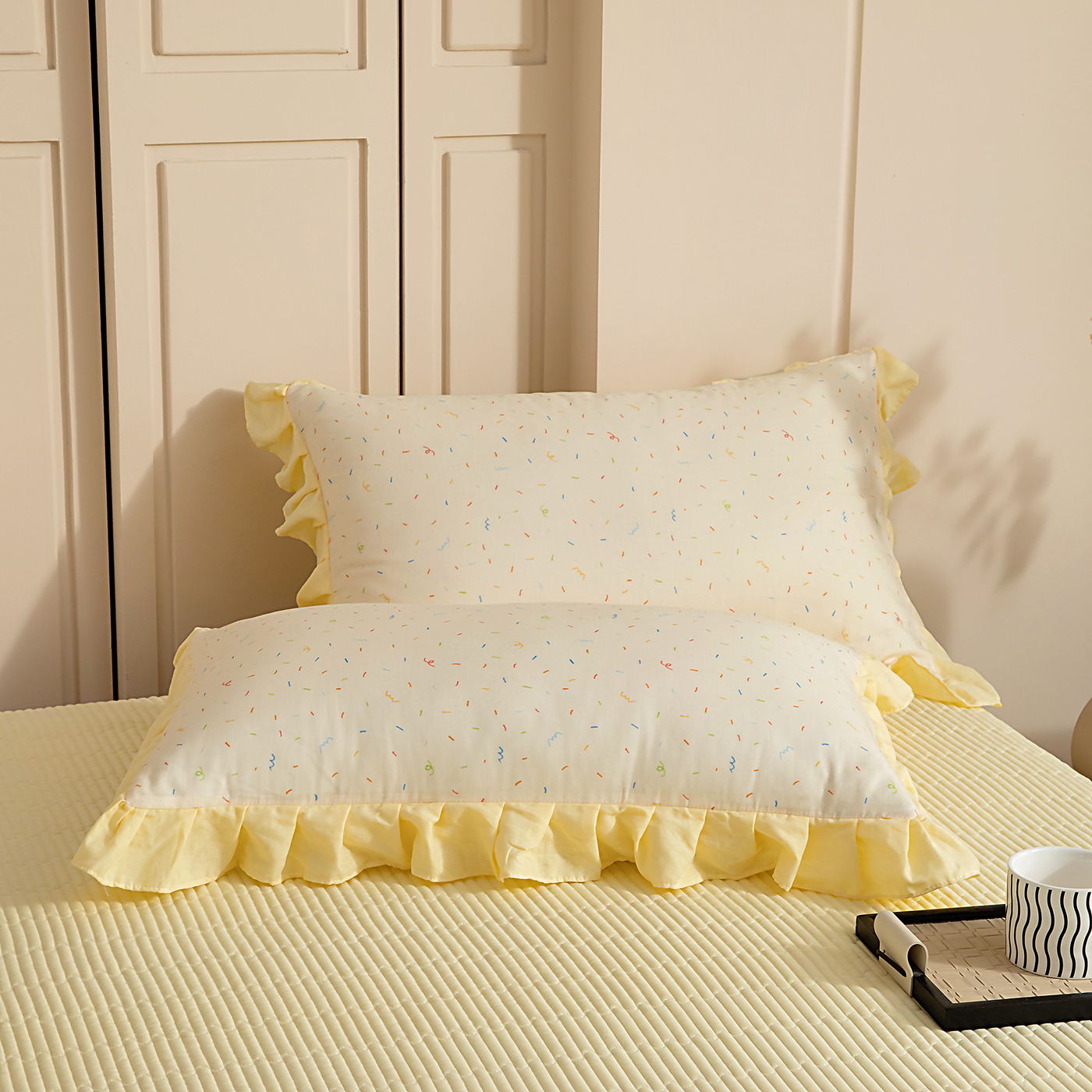 情煊家纺 2026新款全棉双层纱单品枕套 花边款-冰淇淋