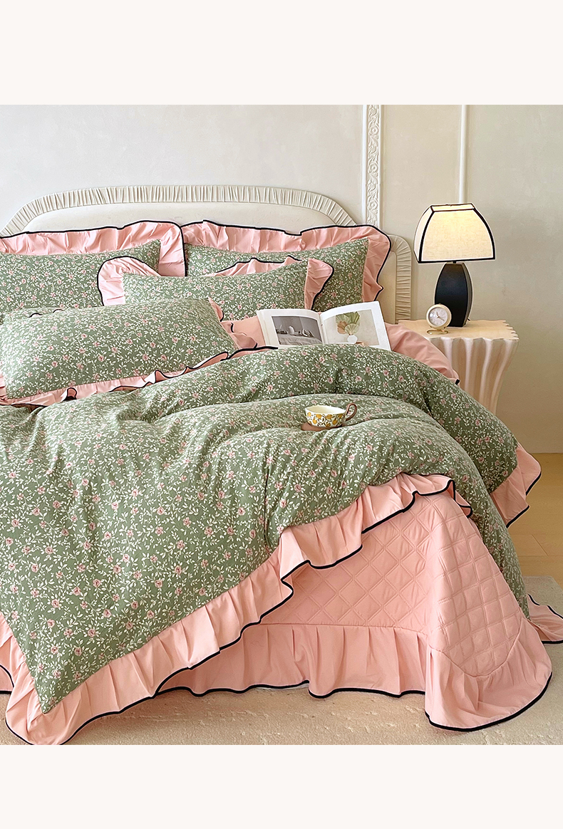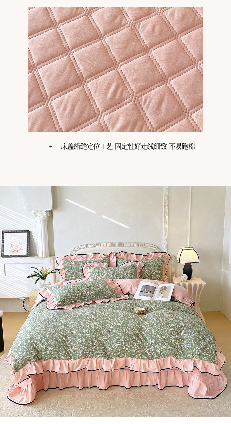 锦彩家居 2026新款花边小碎花床盖四件套 秘密花园