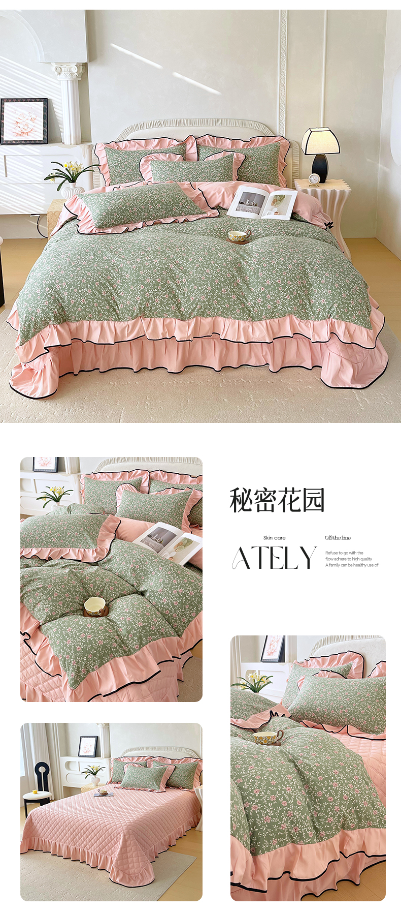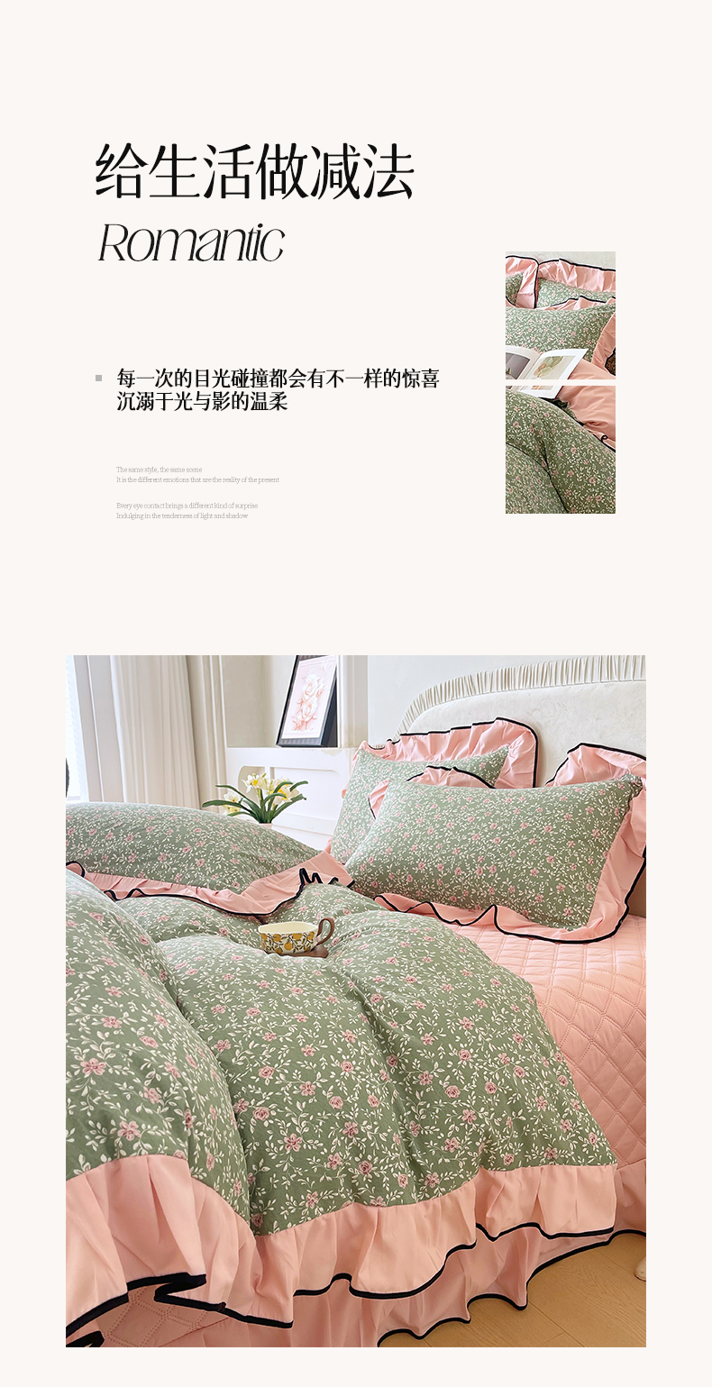 商品名称:锦彩家居 2026新款花边小碎花床盖四件套 秘密花园