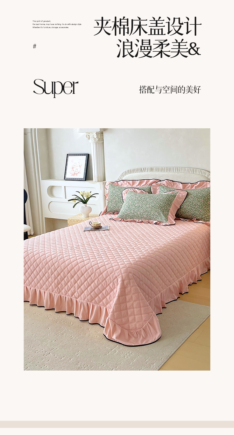 (总)锦彩家居 2026新款花边小碎花床盖四件套,朝花夕拾,椿庭怀蓝,丹枫白露,花漾甜心,秘密花园