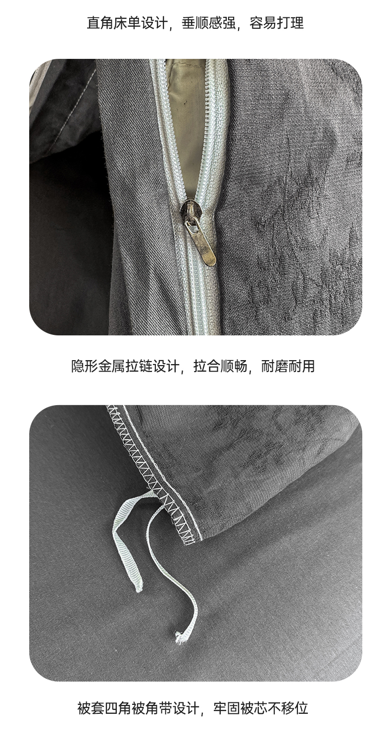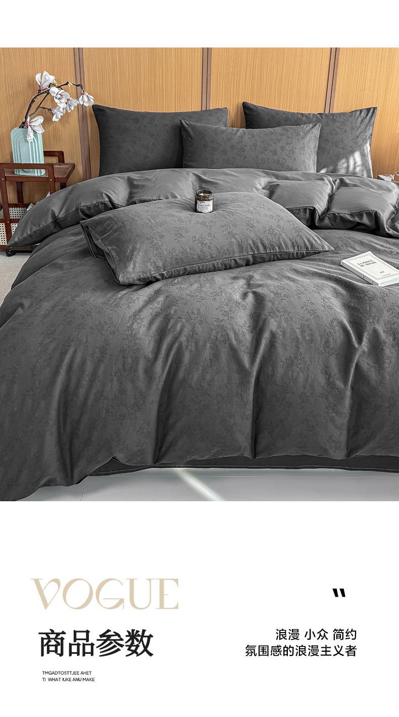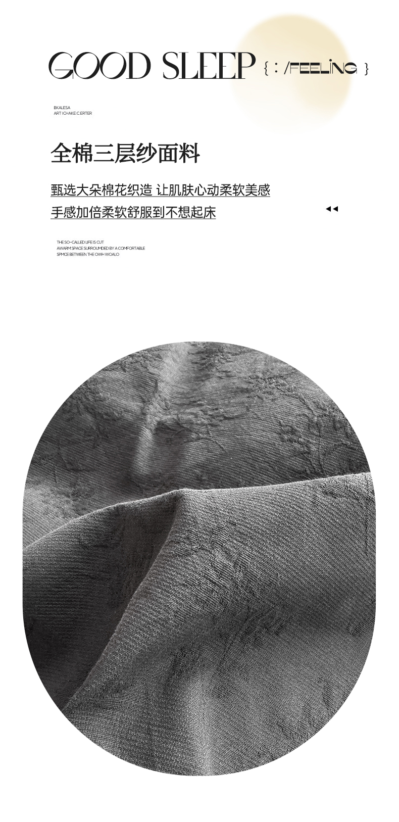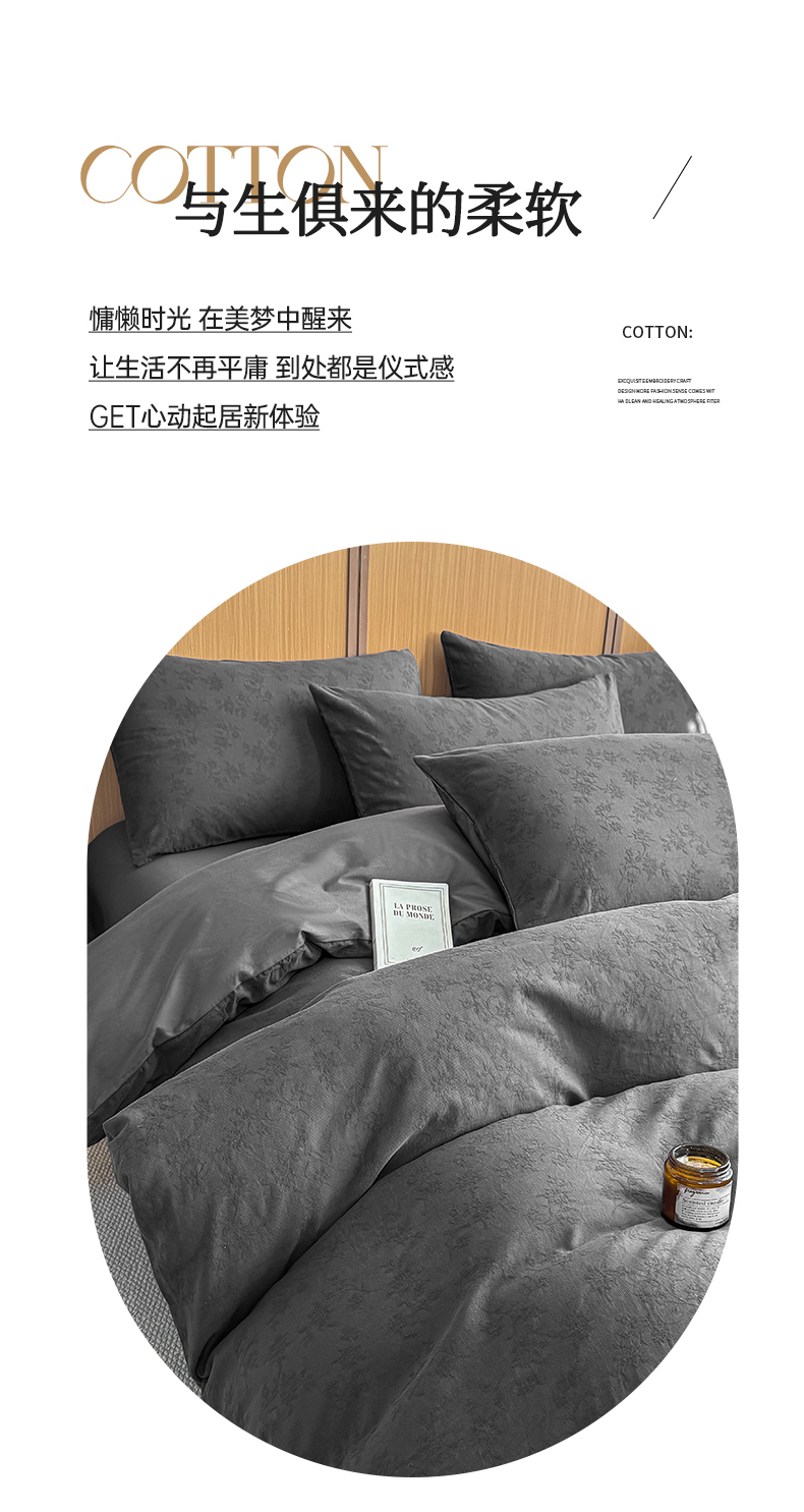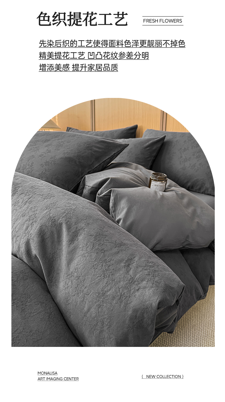 当前位置: 91家纺网 > 商品网购 > 床品套件 > 四件套 > 全棉普通四件套 > 灰鲸 2026新款全棉纯棉三层纱色织提花四件套 花影-素墨